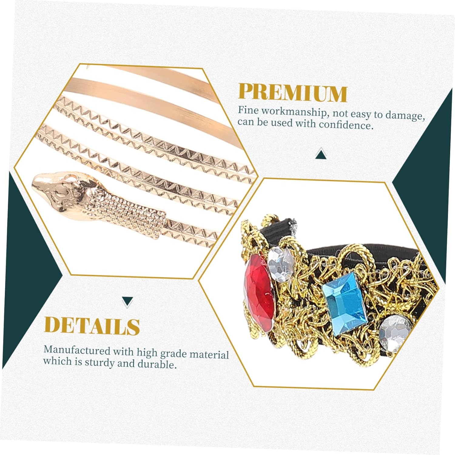 dei pacchetti 2 braccialetti 1 fascia per 1 paio di orecchini caratteristiche - : come mostrato forniture cosplay -dimensioni: 7,00x7,50x5,00 cm/2,75x2,95x1,97 pollici braccialetti egiziani - materiale: poliestere, design serpente in metallo halloween fascia per - per feste, carnevale, feste in maschera o altre attività celebrative, ecc. Accessori per copricapi in costume. - il kit della fascia è realizzato in , che è pieno di per i costumi di Halloween. - è adatto a tutte le persone, indipendentemente dal e 'età, con stili versatili di arredamento per feste. - realizzato in buon poliestere, materiale metallico, che rende comodo indossare la fascia per con design a serpente. - la meravigliosa lavorazione garantisce dettagli delicati e un aspetto unico della fascia di Halloween. descrizione della merce accessorio cosplay stai cercando qualcosa di e innovativo per il prossimo Halloween? quindi, questo articolo sarà un'ottima scelta per te. per fascia da braccio superiore, questo è un arredamento per feste. Accessorio per feste con decorazioni a tema egiziano, il tuo costume sarà chic e alla moda