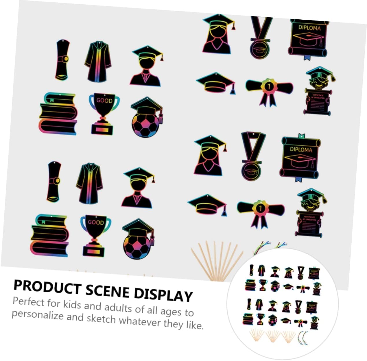 Gratta e vinci per : anche raschiare i fogli di carta da grattare è interessante per i , possono scarabocchiare e creare autonomamente i loro biglietti da grattare Carta da grattare: per e adulti di tutte le età per personalizzare e disegnare ciò che desiderano, carte da grattare Gratta e vinci per la laurea: puoi scegliere biglietti interessanti per i tuoi , come biglietti di compleanno, gratta e vinci Graffiato di laurea: usa il bastoncino di legno per grattare delicatamente i motivi e usa il nastro per posizionarli dove vuoi, carta da grattare Carta da grattare per la laurea: questa carta da grattare è fatta di carte, carta e materiale, carta da grattare