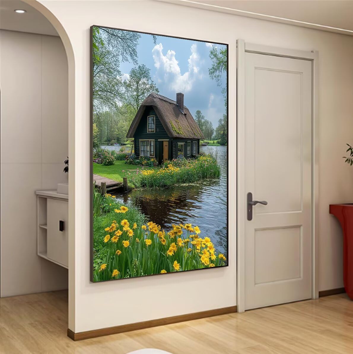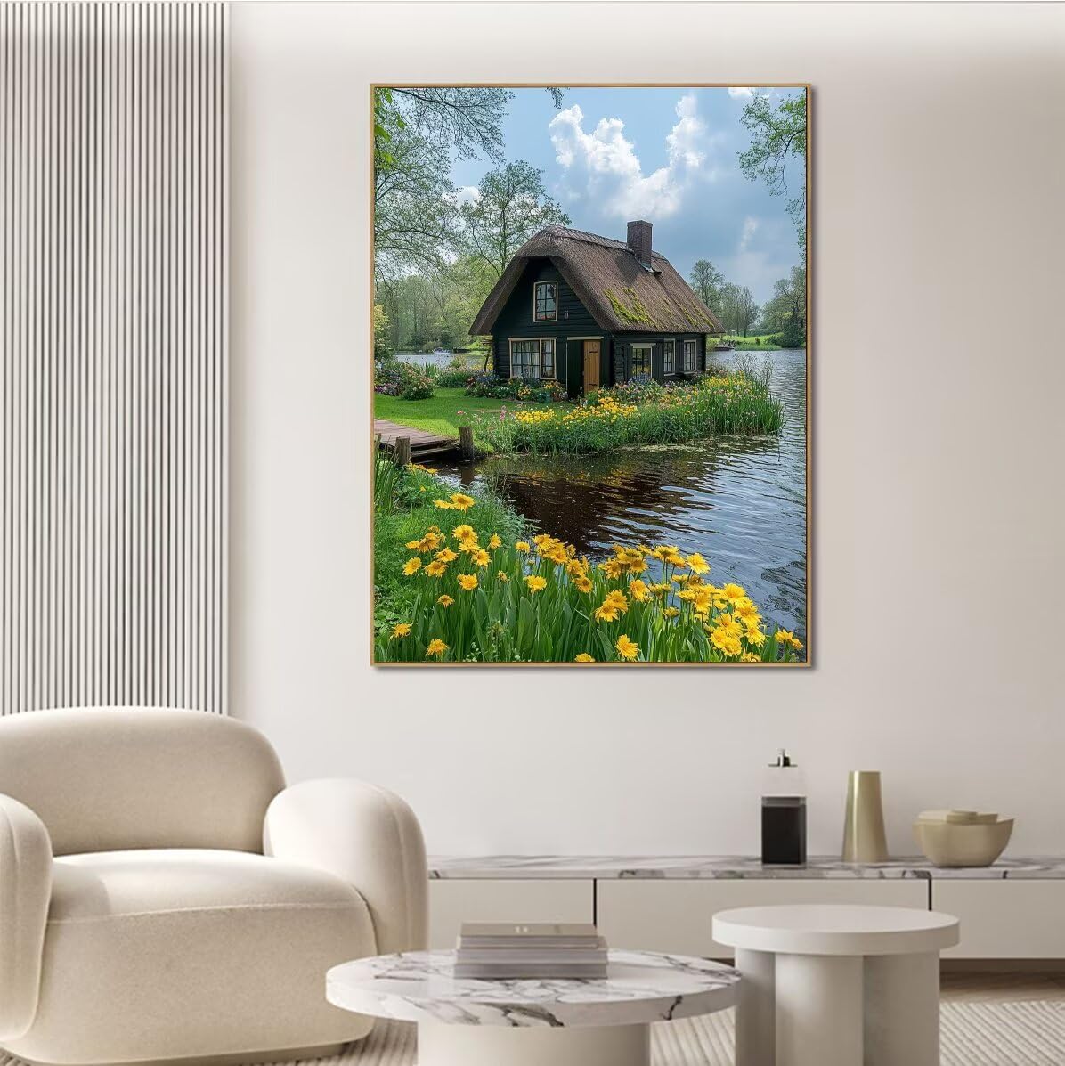 Cabina Dipingere con i Numeri Barca Paint by Numbers Dipingere con i Numeri Bambini con Cornice 90x120cm Tela, Kit Pittura Adulti Fai da Te Creativo con Vernici e 3 Pennelli, Home Room Decor F-798