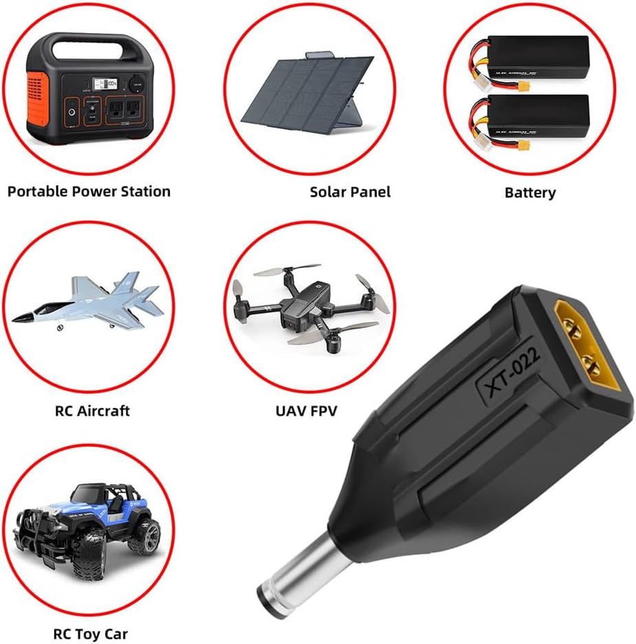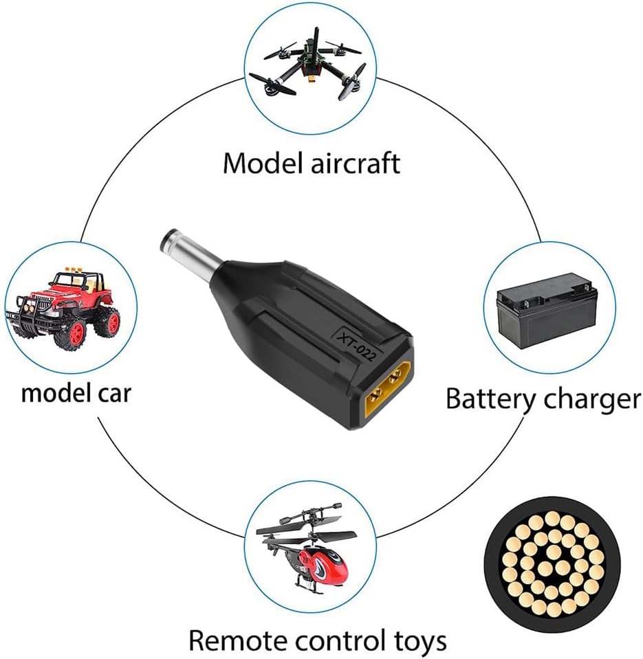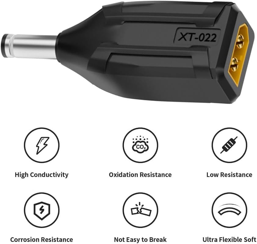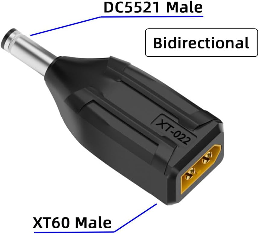 Connettore 1: connettore XT60; Collegamento 2: collegamento CC. Adattatore di alimentazione da XT60 a CC progettato per collegare il saldatore TS100 a una porta di uscita XT60 per alimentare la batteria. Adattatore XT60. Adatto per video FPV, droni, pannelli solari, veicoli e giocattoli telecomandati, ecc. È molto conveniente per chi vola con multirotori FPV e indispensabile per le riparazioni sul campo. Materiale di alta qualità, resistenza alle alte temperature e buon isolamento, plug and play, facile da usare.
