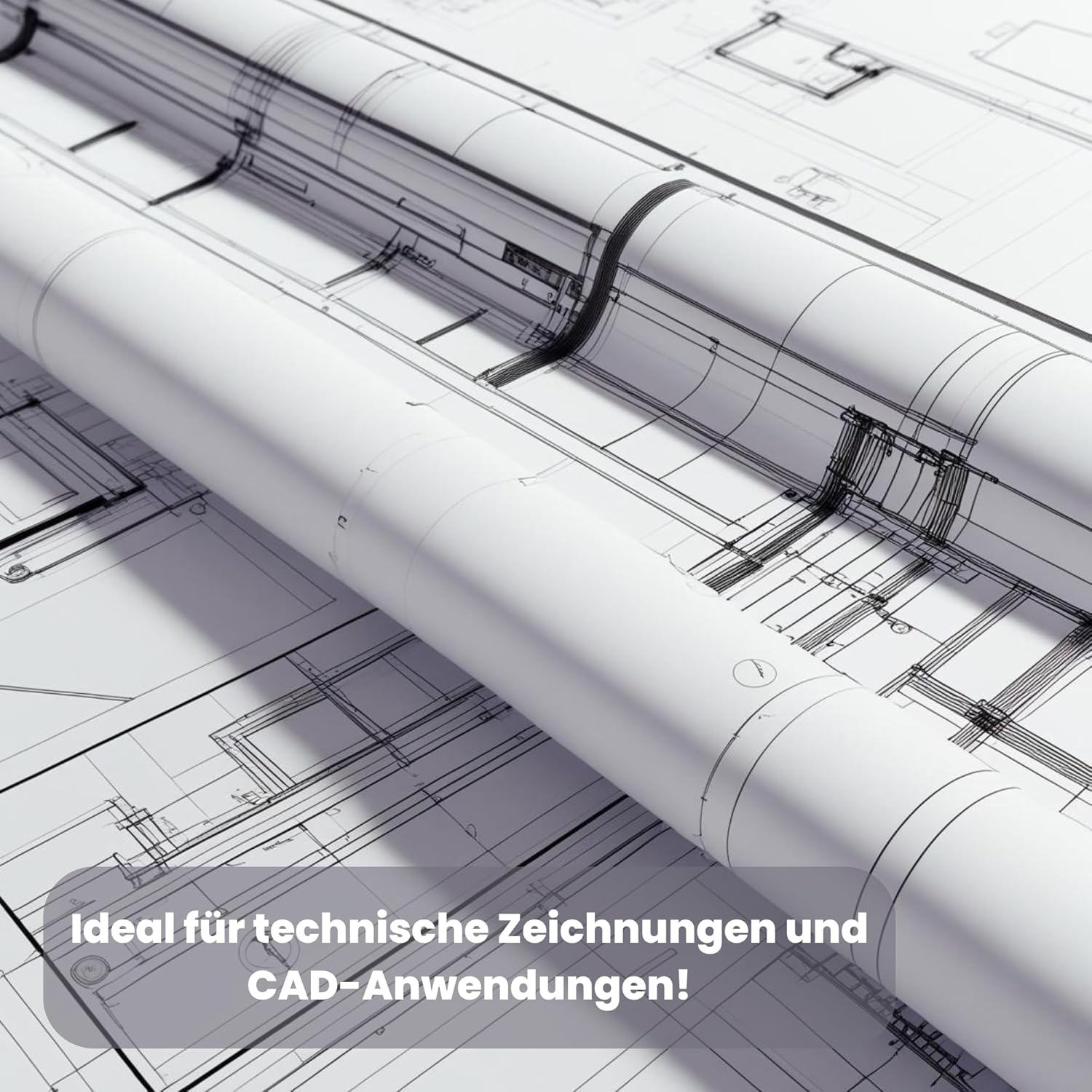 Qualità Made in Germany – 90 g/m², carta bianca non rivestita per stampe a getto d'inchiostro e CAD di precisione Rullo standard: larghezza 610 mm × 46 m di lunghezza, con custodia da 50 mm per tutti i plotter ️ LINEE SEMPLICE & SUPERFICI CHIARI - SUPERFICIE OMOGENICA PER LAYOUTS TECNICI E GRAFICHE AD ALTA RISOLUZIONE Aumento della potenza dell'inchiostro: ideale per presentazioni di colori e foto dettagliate, senza formazione di onde Caratteristiche di scorrimento perfette: senza pieghe e senza pieghe, eccellente lavorazione su plotter standard e cad Utilizzo versatile: perfetto per architettura, piani tecnici, presentazioni di design e grafica a colori