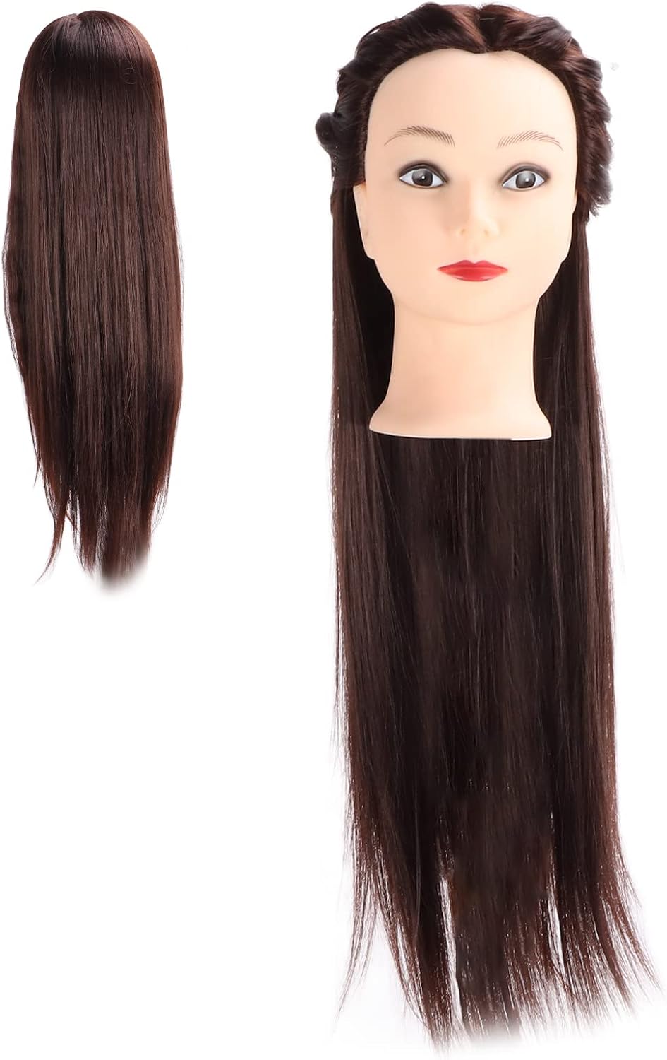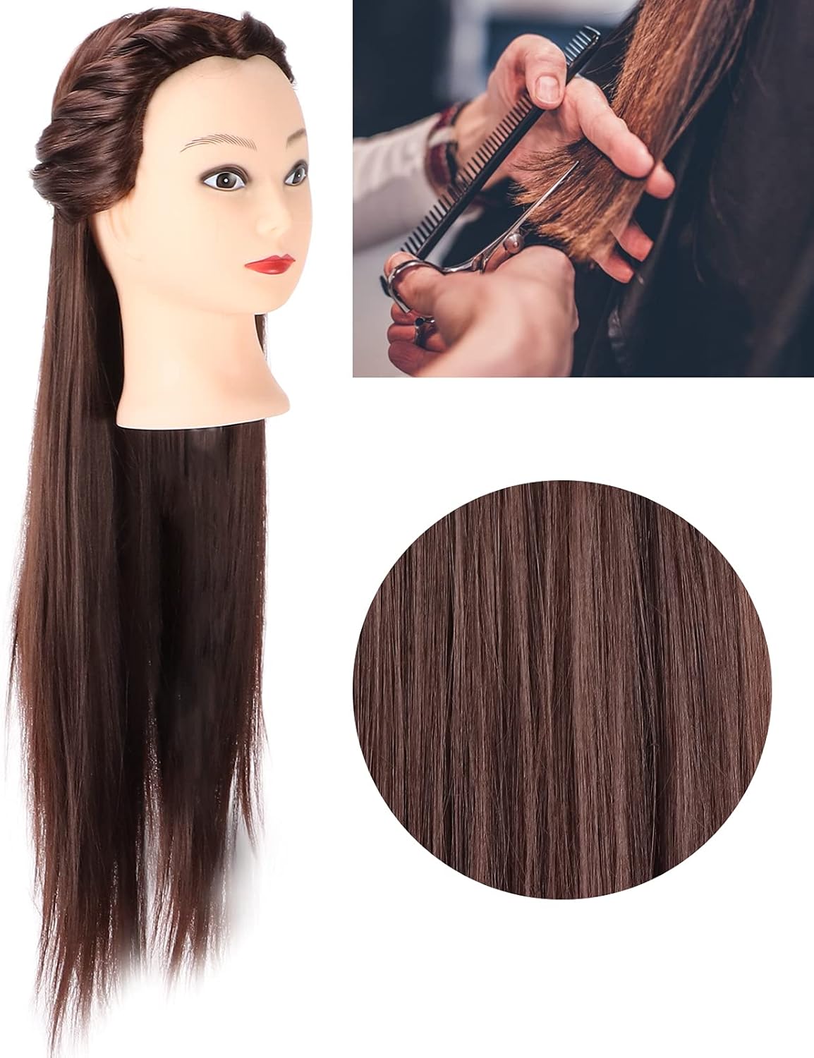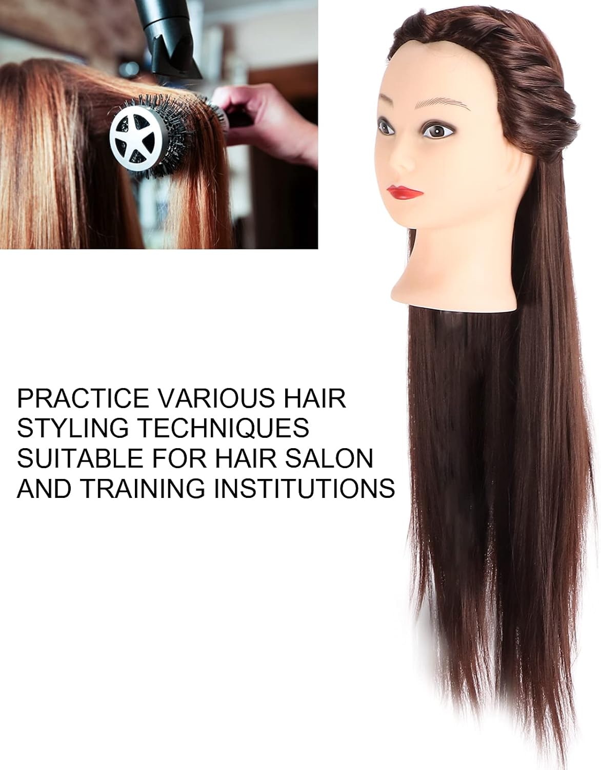 [Capelli sintetici ad alta temperatura] realizzati con capelli sintetici e lisci ad alta temperatura che sono puliti e igienici, puoi rilassarti. [Design del cuoio capelluto] simula il mal di testa e rende più facile praticare diverse acconciature. [Accessori pratici di allenamento] Un allenamento pratico di parrucchiere -Accessorio adatto per il salone di parrucchiere e le strutture di allenamento. [Uso versatile] Ti consentono di praticare diverse tecniche di acconciatura come taglio, treccia, set, updo, colore, colore, colorante e candeggina. [Per gli esperti] Adatto agli insegnanti delle scuole di bellezza, agli studenti o a tutti coloro che si occupano di capelli, maglieria, modellatura, colorazione, ecc.