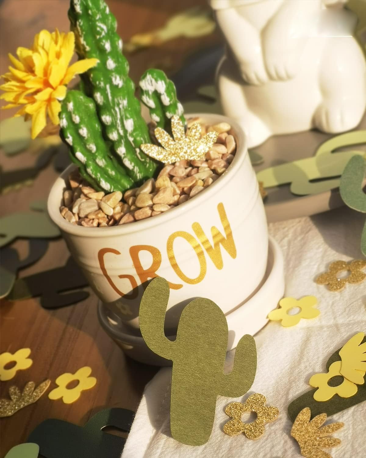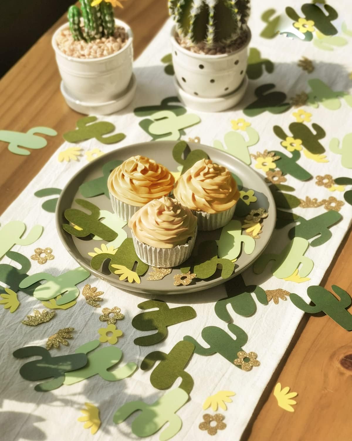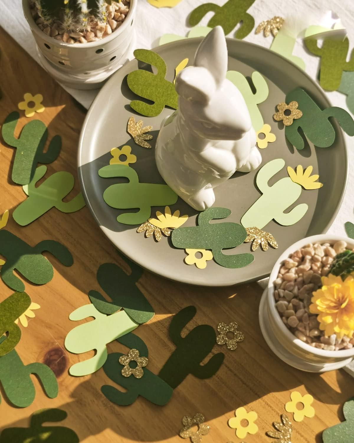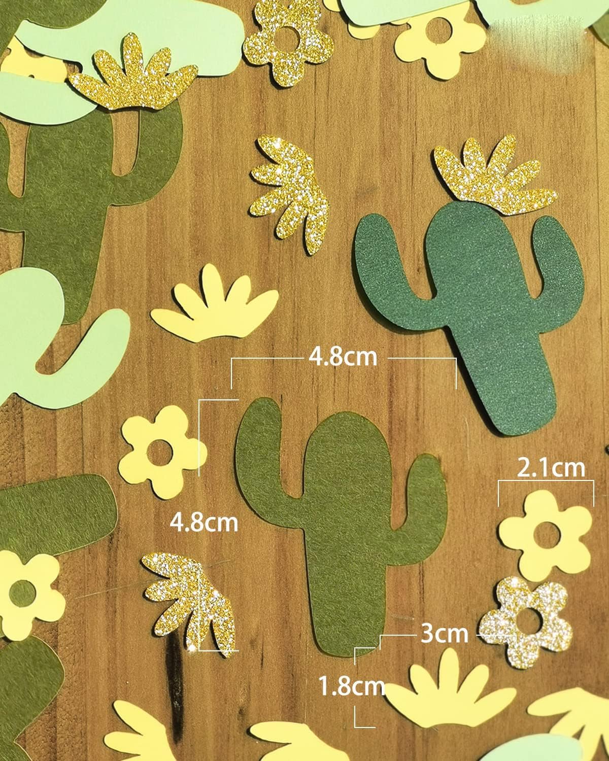 I coriandoli sono realizzati con cura e attenzione a mano. Materiale: realizzato con carta design di alta qualità. Taglia: Cactus 4.8, quantità 45 pezzi. Fiore 2.1, quantità 60 pezzi. Porta la tua tavola da festa al livello successivo! Spargi i nostri coriandoli in oro verde di alta qualità al tuo prossimo evento e dai ai tuoi ospiti i dettagli che meritano. Disposizione perfetta del tavolo per il tuo baby shower. Può anche essere utilizzato come abbellimento per i tuoi progetti di artigianato nel verde, creazione di biglietti, inclusa la prenotazione di rottami. Ci saranno tantissime decorazioni, inviti e persino album! Abbiamo varie decorazioni per ghirlande di coriandoli disponibili per il baby shower