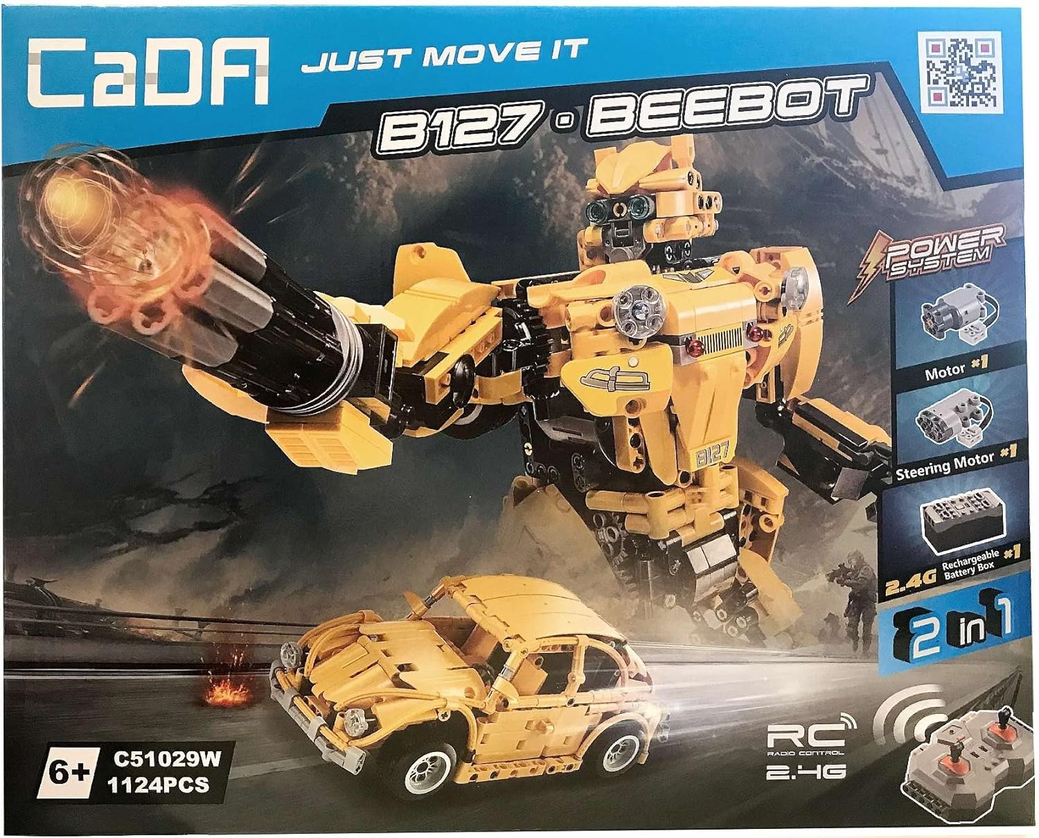 Robot Beebot B127 2 in 1 Il set è composto da 1124 pezzi e permette di montare da soli il robot telecomandato o il veicolo Beebot B127, simile a un Maggiolino Volkswagen giallo. Il robot è tenuto in uno schema di colori giallo e può muovere le braccia e muoversi avanti e indietro. Il robot è dotato di un lanciarazzi e di un braccio staccabile che può essere sostituito con un'arma. L'auto è dotata di 4 ruote in gomma che permettono di guidare su diverse superfici. Controllo RC Il veicolo è molto facile da usare e può essere controllato con il telecomando a 2,4 GHz da una distanza fino a 20 metri senza perdere la connessione. Con il telecomando in dotazione, il giocattolo può andare avanti e indietro e girare a destra e a sinistra. I blocchi sono compatibili. Le parti sono compatibili con altri set di cad e pietre Lego, in modo che il giocattolo possa essere modificato a piacere. I mattoncini sono robusti e realizzati in plastica ABS ecologica di alta qualità con elevata durezza e colori pieni e molte delle parti del set sono mobili. Il set include 1124 elementi, tra cui: ✅ Blocchi, ✅ Ruote in gomma, ✅ Elementi decorativi, ✅ Telecomando da 2,4 GHz con batterie AA (2 batterie da 1,5 V non incluse), ✅ Cavo USB per la ricarica, ✅ Batteria da 400 mAh da 1,5 V, ✅ Motori, istruzioni (lingua italiana non garantita). Specifiche: portata fino a 25 m. Velocità: circa 6 km/h. Tempo di ricarica: circa 1,5 – 2 ore di autonomia: circa 10-15 minuti. Questo set è adatto a tutti coloro che si divertono a progetti artigianali e vogliono sviluppare la loro immaginazione. Informazioni aggiuntive: numero di elementi: 1124 azionamento: batterie RC necessarie: 2 x AA (controllo) Dimensioni dell'imballaggio: 42,2 x 33,8 x 9,1 cm Dimensioni del veicolo piegato: 28 x 10,5 cm Gli elementi sono realizzati in plastica ABS ecologica adatto per bambini dai 6 anni in su; a causa del rischio di danni in alcuni punti, il produttore ha il doppio imballaggio. Nastro adesivo assicurato codice del nastro Produttore: C51029W. Attenzione: la descrizione sopra è da copyright secondo la legge polacca