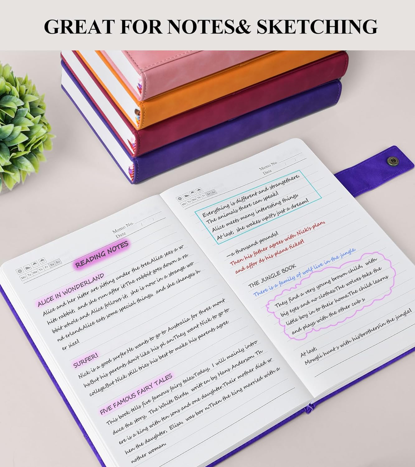【Notebook spesso e grande】 Il taccuino a righe spesse PAIBAS da 365 pagine: la scelta perfetta per gli scrittori più esigenti Misurando in A4 (21,6 x 27,9 cm), questo grande taccuino soddisferà tutte le tue esigenze di scrittura. La carta spessa da 100 g/m² garantisce che l'inchiostro non fuoriesca alla pagina successiva, rendendolo perfetto per l'uso quotidiano come diario, diario di viaggio, taccuino aziendale o per prendere appunti a scuola o all'università. Copertina in pelle rigida e design elegante: questo grande taccuino ha una copertina in morbida pelle vegana progettata con la stampa "albero della vita", che non è solo bella, ma anche più comoda e delicata al tatto. La custodia in pelle è dotata anche di una tasca elastica per cellulari, penne, carte, ricevute o altri piccoli oggetti sparsi, facilitando l'organizzazione dei propri effetti personali. La chiusura a scatto in ottone assicura che il taccuino rimanga saldamente chiuso, mantenendo riservati appunti e pensieri. CARTA A RIGHE SPESSA PREMIUM: questo taccuino è appositamente progettato per offrirti tutto lo spazio di scrittura di cui hai bisogno. Include 365 pagine di carta avorio priva di acidi da 100 g/m², liscia al tatto e più spessa di un normale taccuino. Questa carta spessa e di alta qualità garantisce che non vi siano immagini fantasma o sbavature sulle tue pagine. Ciò lo rende perfetto per scrivere, disegnare e persino utilizzarlo come album da disegno di un artista. Design piatto a 180°: il nostro notebook presenta un design piatto a 180° che rende la scrittura, la lettura e la presa di appunti estremamente comoda. Questo taccuino è inoltre dotato di tre segnalibri a nastro colorato, che ti consentono di tenere facilmente traccia di pagine o appunti importanti, e il suo classico design in pelle garantisce che starà benissimo su qualsiasi scrivania o spazio di lavoro. Che tu abbia bisogno di un diario da uomo per scrivere o di un diario da portare in viaggio, questo taccuino è perfetto per te. VERSATILE E FUNZIONALE: Il taccuino spesso è perfetto per le persone sempre in movimento, permettendo loro di prendere appunti ogni volta che ne hanno bisogno. Questo taccuino è anche un'ottima idea regalo per chi ama scrivere o disegnare. Che si tratti del compleanno di un amico, dell'anniversario di matrimonio o della laurea, questo taccuino sarà un regalo fantastico. Il taccuino PAIBAS A4 ha le dimensioni perfette di 8,5 x 11 pollici, rendendolo un taccuino di grandi dimensioni perfetto per chi ha bisogno di molto spazio.
