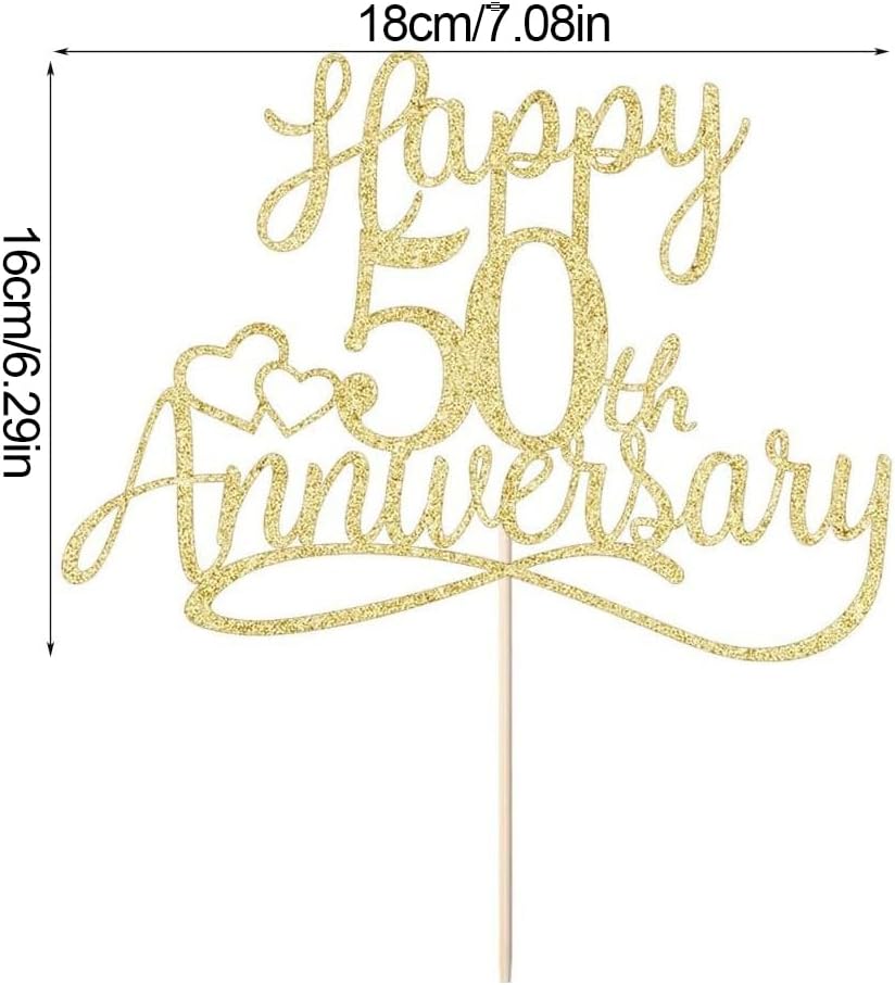 Design Raffinato: Elegante wedding topper, perfetto per festeggiare il cinquantesimo anniversario di matrimonio. Realizzato in cartoncino glitter oro di alta qualità, aggiunge un tocco di lusso alla tua festa. Dimensioni ideali: questo topper nuziale misura 6,5 pollici di larghezza x 7,6 pollici di altezza, ideale per torte di medie e grandi dimensioni. La finitura double-face garantisce brillantezza da ogni angolazione. Materiale aggiornato: l'inserto in legno è stato sostituito con un supporto in acrilico trasparente, offrendo maggiore robustezza e un aspetto moderno ed elegante, perfetto per le decorazioni nuziali. Facile da usare: arriva già assemblato, pronto per essere posizionato sulla torta. Adatto per anniversari, nozze d'oro o come decorazione per i ricordi del cinquantesimo anniversario di matrimonio. Versatile e Indimenticabile: Ideale come regalo per i 50 anni di matrimonio o per creare un'atmosfera unica con le decorazioni del 50° anniversario. Perfetto anche per album fotografici e ricordi personalizzati.