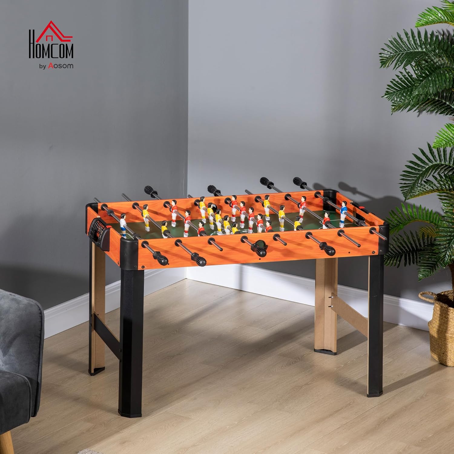 Massimo divertimento: vivi indimenticabili momenti di divertimento con la famiglia e gli amici con questo set da calcio balilla per 10 giocatori e 1 portiere per squadra. Migliora anche la concentrazione e le reazioni rapide della mano e del cervello. Contatore di punteggio integrato: con il contatore di punteggio integrato nel calciobalilla puoi facilmente tenere traccia dei tuoi successi e delle sconfitte dei tuoi avversari. Goditi il divertimento senza preoccuparti del punteggio e magari si presenteranno anche emozionanti opportunità di scommessa. Struttura stabile: questo tavolo da biliardino è realizzato in MDF, che non è facile da deformare e ha un'elevata resistenza e durata, garantendo una lunga durata. Le aste in metallo robuste e durevoli sono progettate per resistere al gioco intenso. Divertimento per tutte le età: con un'altezza di 69 cm questo biliardino è ideale per gli adolescenti. Il suo design compatto lo rende perfetto per piccoli spazi come appartamenti o sale giochi. Maniglie antiscivolo: le maniglie del biliardino offrono un migliore controllo durante il gioco grazie alla loro superficie antiscivolo, comoda e sicura