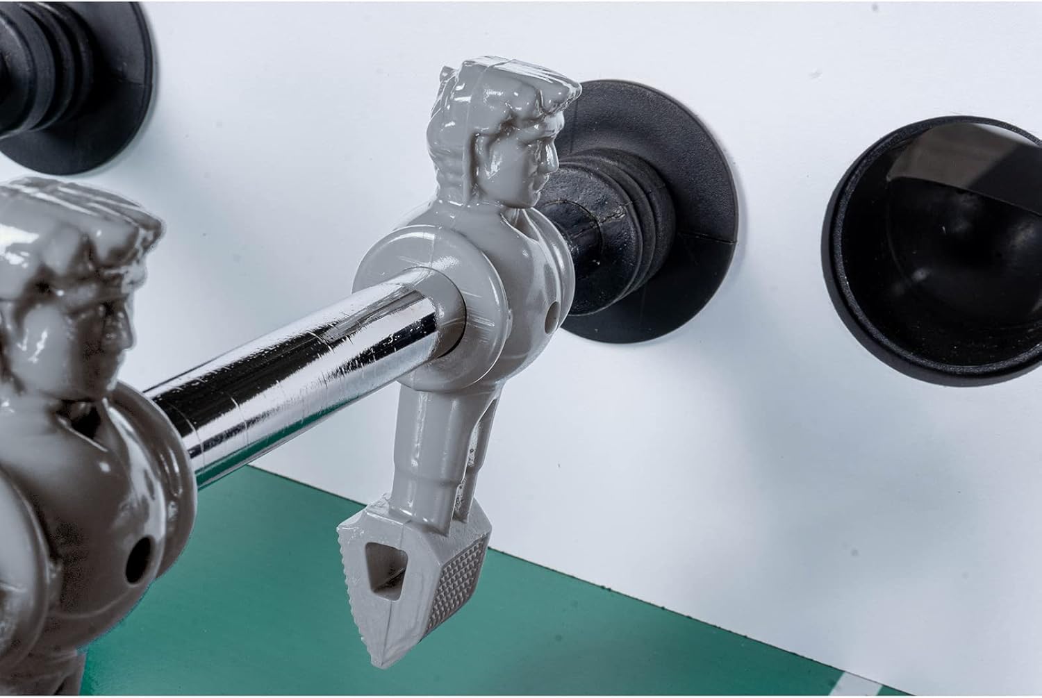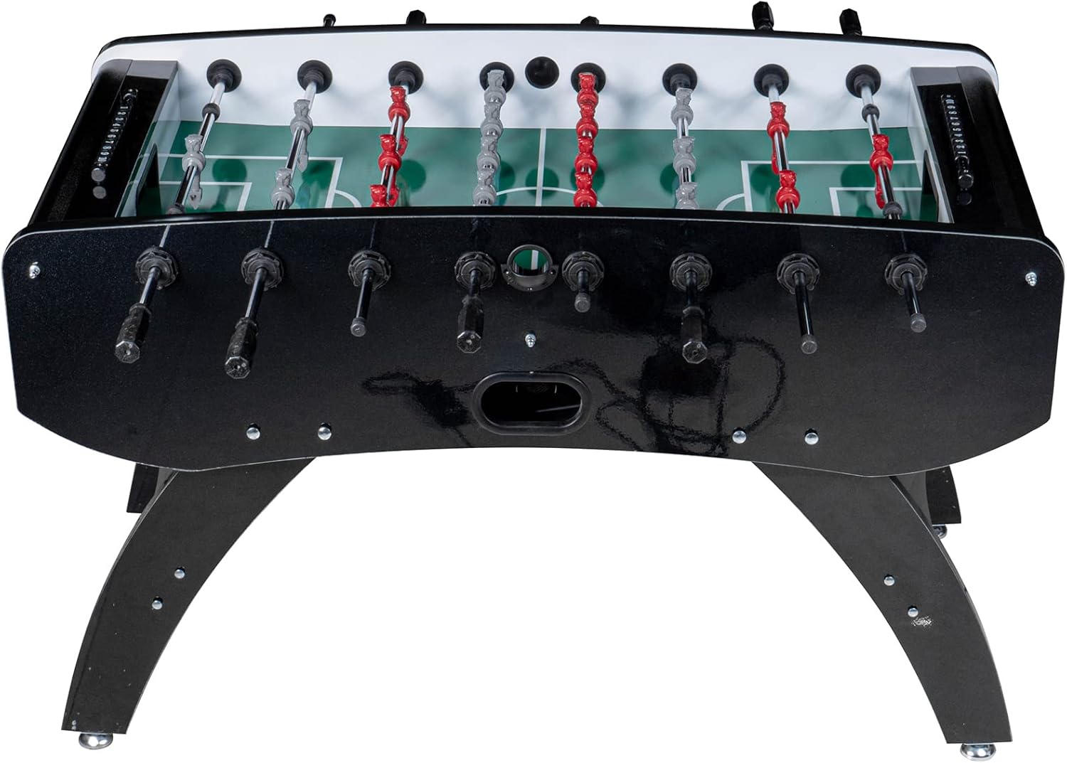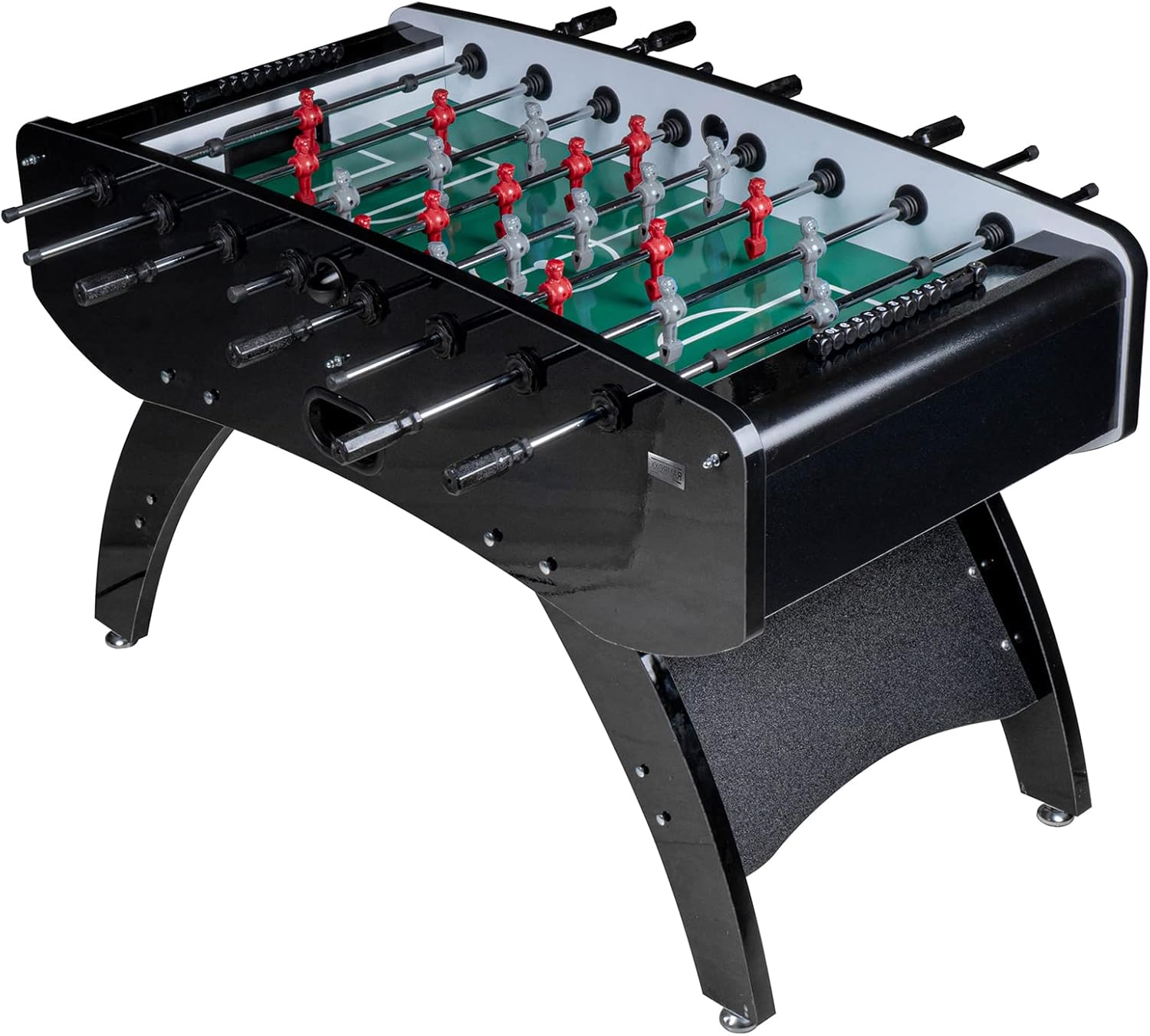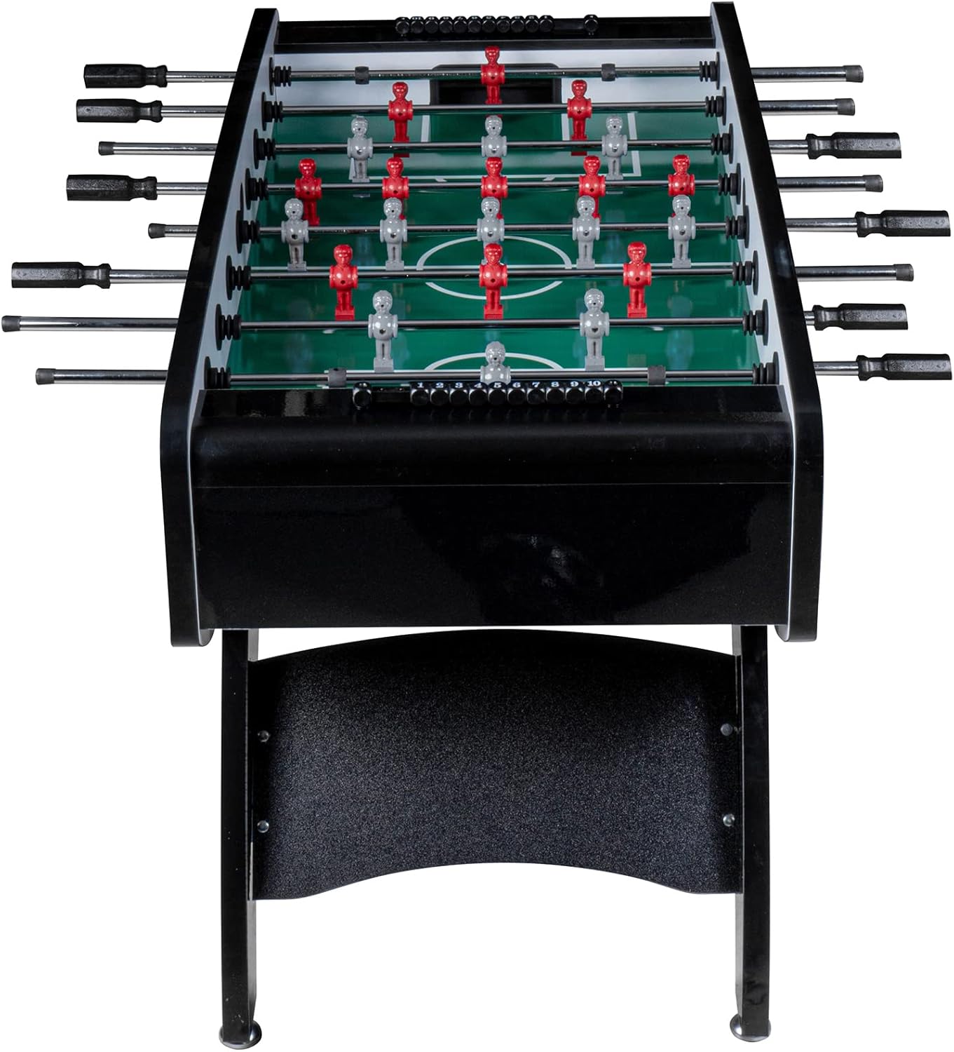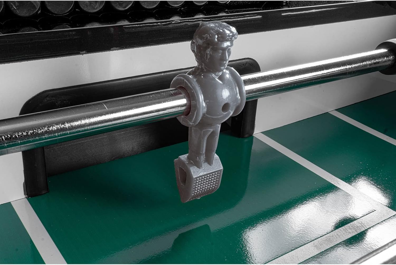 Biliardino professionale per interni Colore: Nero metallizzato con campo di gioco verde Inclusi pezzi di gioco: Grigio / Rosso Area di gioco: 116 x 66 cm Dimensioni: A: 90 cm x L: 140 cm x L: 70 cm Numero di palline: 5 Materiale del corpo: MDF 32 mm Peso: 80 kg Produttore: RAMROXX - qualità professionale con lavorazione robusta e di alta qualità con un peso di 80 kg!! - Utilizzo versatile, sia in una cantina per hobby che in una club house - Evidenziazione visiva grazie all'esclusivo design a colori del corpo - 22 miniature più 2 miniature di ricambio sono incluse nel set - La fornitura comprende anche un segnaporta e palline - Le miniature hanno una classica formazione 1-2-5-3 - Canne da gioco molto facili da usare per alte velocità di tiro - Le canne hanno impugnature ergonomiche e antiscivolo - Il corpo è realizzato in materiale MDF da 32 mm per una lunga durata. - Piedini regolabili in altezza per un allineamento ottimale della superficie di gioco - Grazie alle gambe solide, questo calcio balilla è molto sicuro e stabile. - L'icker è molto facile da montare. È necessario assemblare solo le gambe del tavolo, le aste e i giocatori, comprese le istruzioni di montaggio dettagliate in tedesco!!