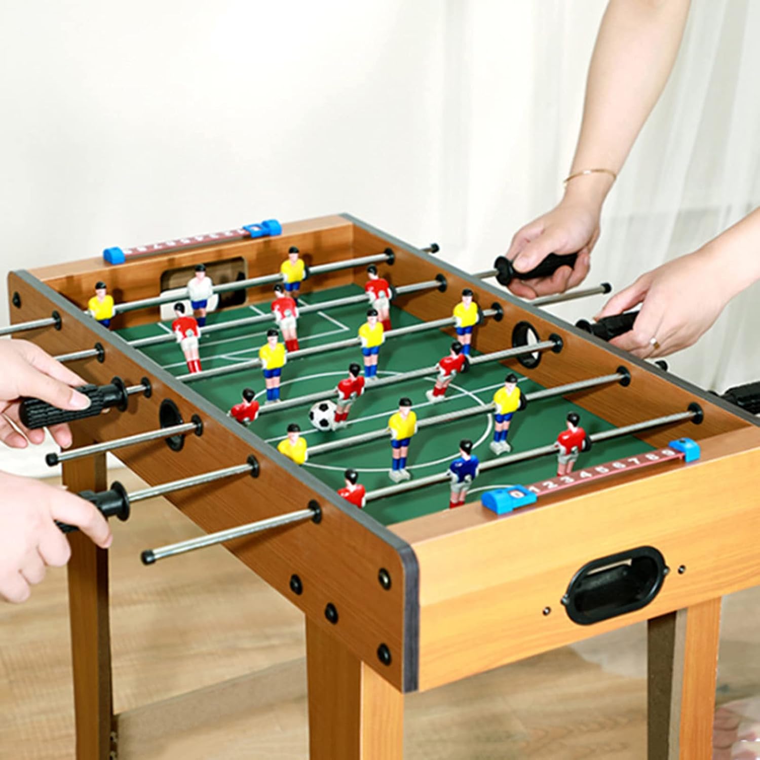 Intrattenimento senza fine: i giochi interattivi per famiglie sono popolari e facili da giocare, perfetti per tutta la famiglia. Ideali per noiose serate di giochi in famiglia o giochi alcolici per adulti. Versatilità ed eleganza: il calcio balilla con manico in legno è pensato per portare la classe in qualsiasi scantinato, sala giochi, tombino, bar, sala giochi, lounge o cortile. Goditi l'emozione: i segnapunti manuali su entrambi i lati ti permettono di registrare i punteggi, rendendo la partita ancora più emozionante. Il calcio balilla può migliorare la coordinazione e l'equilibrio. Superficie liscia: il campo sportivo ampio e liscio garantisce un utilizzo più confortevole e un'esperienza di gioco migliore. DIVERTIMENTO SENZA FINE: questo popolare e divertente gioco classico è facile da giocare ed è un fantastico gioco interattivo per famiglie, eccellente per tutta la famiglia, perfetto per una serata di giochi in famiglia innocente o per un gioco da adulti.