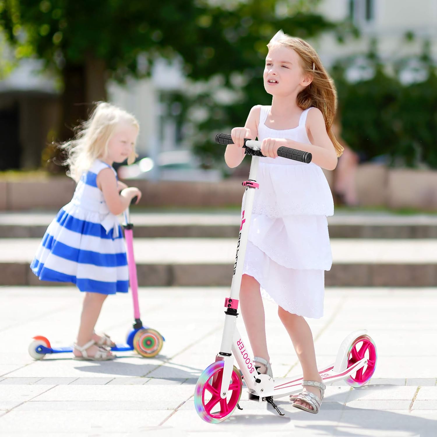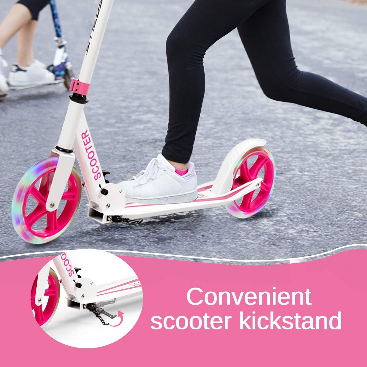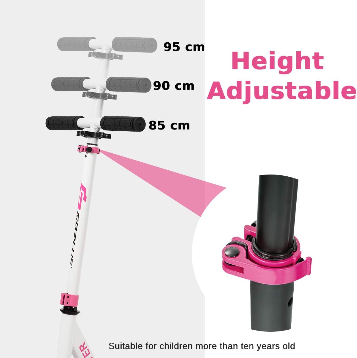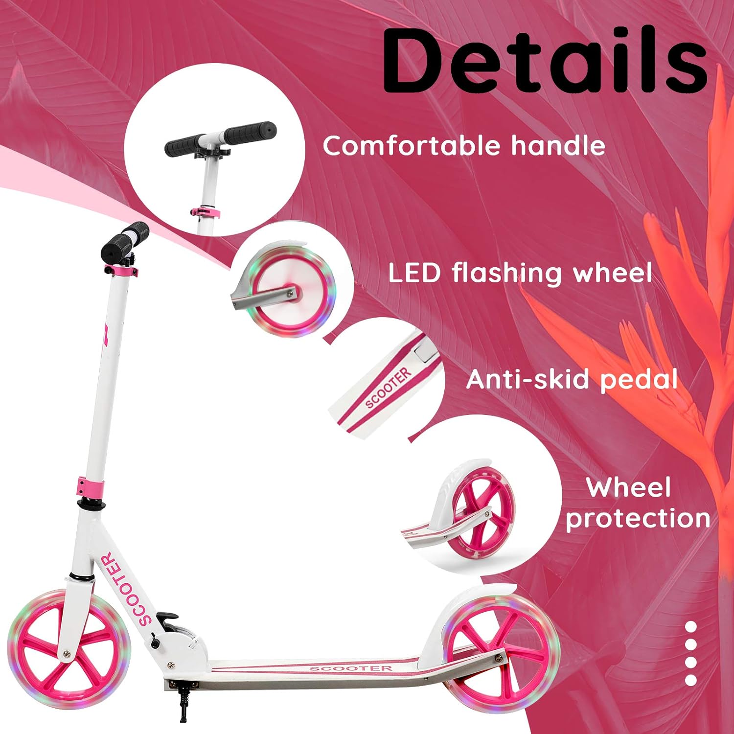 Manubrio regolabile a 3 livelli: for adattarsi alle diverse altezze dei bambini di età diverse, abbiamo appositamente progettato un manubrio regolabile in altezza. Inoltre, il manico è avvolto da una spugna morbida e confortevole, che può proteggere le mani delicate del bambino e assorbire un po' di umidità Attraenti ruote illuminate a LED: le nostre ruote sono dotate di luci a LED integrate, che possono far risaltare il tuo bambino o ragazza dalla massa! Il sensore di movimento è installato e quando viene rilevato un movimento si accenderà la luce Le ruote da 20 cm rendono lo scorrimento più fluido e permettono ai bambini di esercitare l'equilibrio mantenendoli al sicuro Pedale in lega di alluminio premium: il nostro monopattino pieghevole è realizzato in resistente lega di alluminio ed è abbastanza robusto da sostenere un peso di 100 kg. Pertanto, i bambini dai 10 anni in su possono utilizzare il nostro monopattino senza preoccuparsi di problemi di qualità Sistema pieghevole: il monopattino può essere facilmente piegato in pochi secondi, consentendo ai tuoi bambini di eseguire facilmente il processo di assemblaggio da soli. Il monopattino piegato è abbastanza compatto da poterlo riporre facilmente ovunque tu voglia Easy Maneuvering: progettata con manovre facili da magro a Steer, questo scooter è una scelta eccellente per lo sviluppo di abilità di equilibrio e coordinamento in bambini e adulti. Certificato completamente testato in laboratorio e certificato. Assicura un'esperienza di guida sicura per tuo figlio