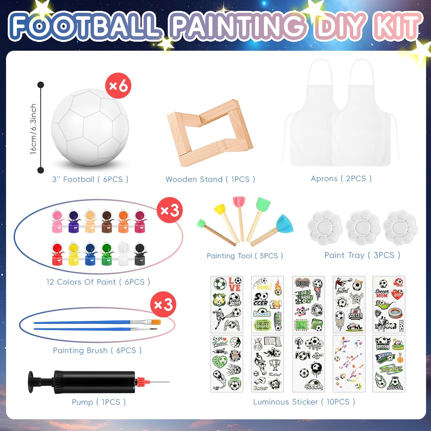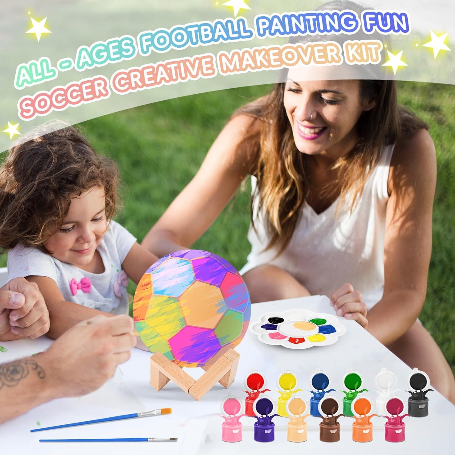 🎨 【Kit Creativo di Pittura e Calcio per Bambini】 Il nostro kit fai-da-te per il calcio include tutto per il divertimento creativo: 6 palloni di alta qualità (18 cm di diametro), 12 colori vivaci in 6 confezioni, 3 pratiche vaschette per i colori, 6 pennelli, 5 strumenti speciali per dipingere, una base in legno stabile, 2 grembiuli protettivi, 10 adesivi scintillanti e una pompa pratica. Con questo set, il tuo bambino potrà dare libero sfogo alla fantasia. ⚽ 【Dipingi il Tuo Pallone】 Questo kit stimola in modo giocoso le capacità creative del tuo bambino. Decorando i palloni, i bambini non solo sviluppano l’immaginazione, ma saranno anche orgogliosi della loro opera finita. Consiglio: Il colore può seccarsi lentamente dopo l’apertura! Se si ispessisce, aggiungi 2-3 gocce d’acqua e mescola delicatamente con un bastoncino. 🥳 【Attività Divertenti per Feste】 Il nostro kit trasforma ogni festa per bambini in un’esperienza indimenticabile. Con 6 palloni e tantissimi accessori, più bambini possono dipingere insieme, promuovendo lo spirito di squadra e lo scambio creativo. Un set perfetto per ore di divertimento con gli amici. 👭 【Sicuro e Atossico】 I colori inclusi sono appositamente pensati per i bambini: completamente atossici, delicati sulla pelle e facili da lavare. I piccoli possono esprimere la loro creatività in tutta sicurezza, senza preoccupazioni per i genitori. 🎁 【Regalo Perfetto】 Questo kit versatile non è solo un gioco creativo, ma i palloni dipinti possono anche diventare decorazioni uniche per la cameretta. È il regalo ideale per compleanni, feste, Natale, Pasqua o semplicemente come sorpresa per i piccoli artisti.