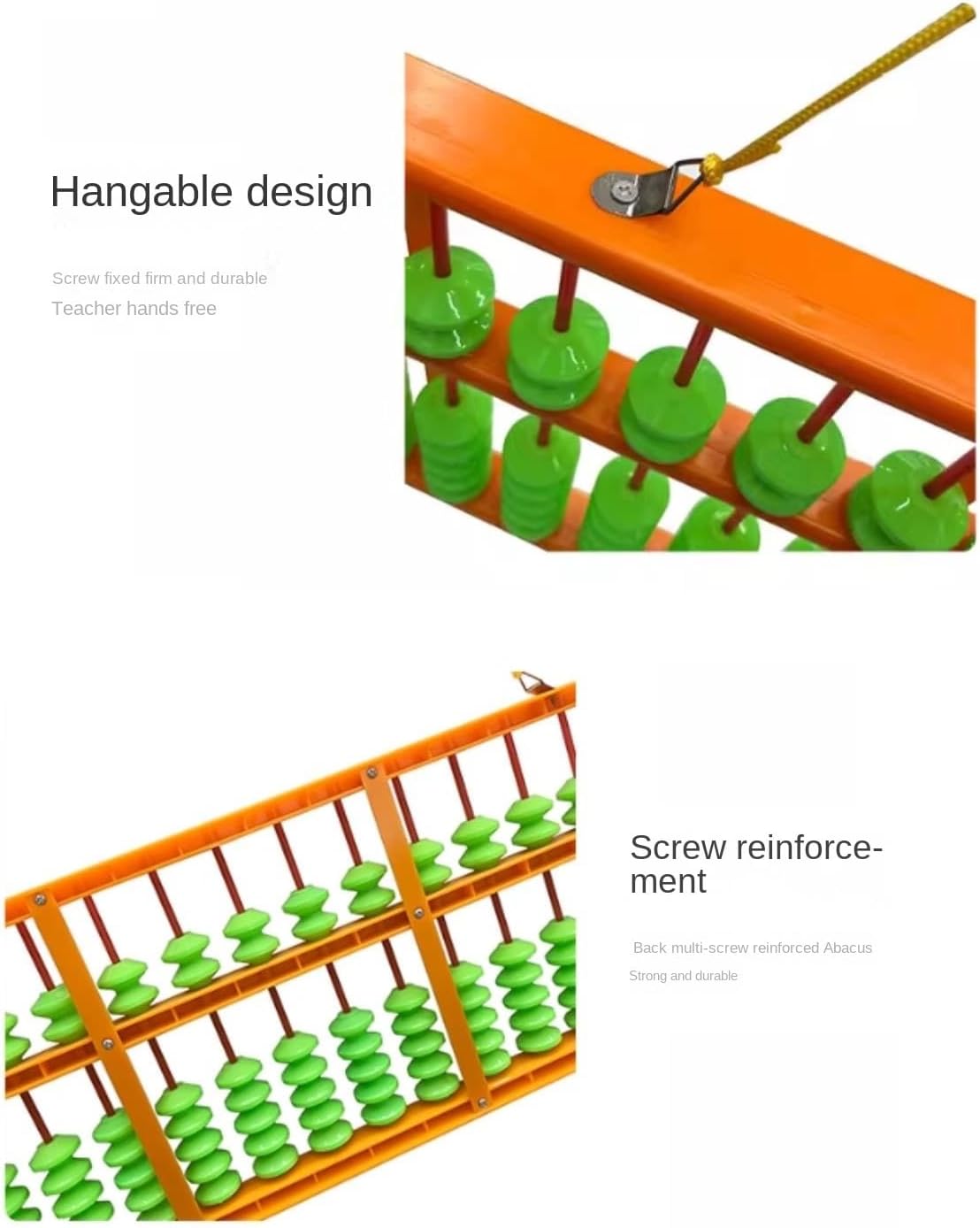 Realizzato in plastica: adatto a resistere alle sollecitazioni della manipolazione quotidiana. L'abaco è uno strumento di calcolo: è stato utilizzato for secoli prima dell'adozione del moderno sistema di numerazione scritto. Utilizzo a lungo termine: rende i numeri visibili e concreti, il che lo rende uno strumento matematico generale molto utile e pratico. Strumento didattico: oltre ad essere uno strumento professionale, l'abaco è anche uno strumento didattico. Impara a calcolare ed eseguire operazioni matematiche di base come aggiungere, sottrarre, moltiplicare e dividere. robusto e duraturo.