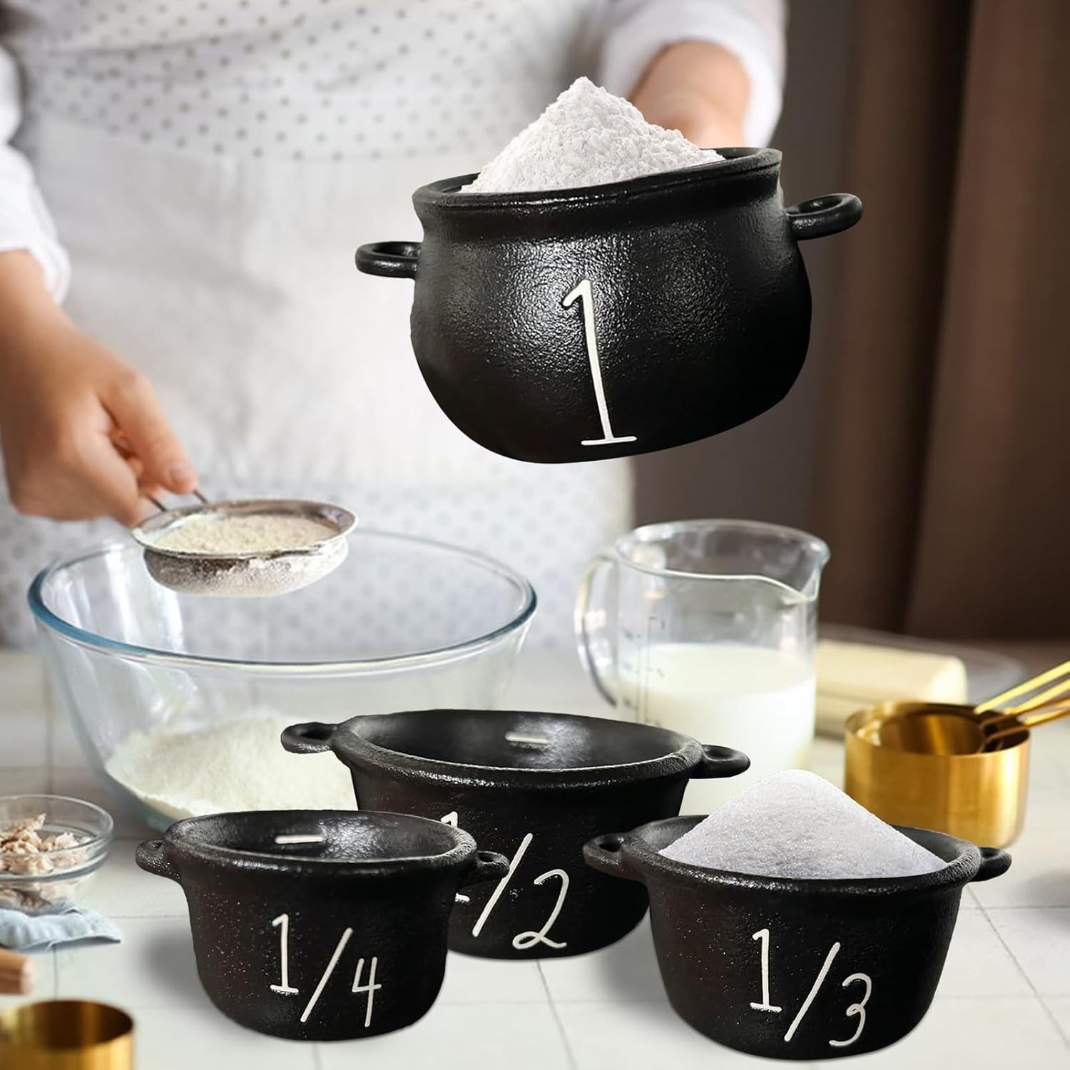 Magia culinaria: usa la funzione divertente e potenziante di questo s con energia protettiva per liberare il tuo potenziale artistico culinario con ogni applicazione ritualizzata Costruzione stabile: la solida struttura in resina offre un'eccellente resistenza alla deformazione e alla perdita di colore. Un elemento decorativo affidabile per un uso a lungo termine in diversi ambienti. Accessori per feste accattivanti: sviluppato appositamente per le feste horror, il set convince con la sua forma mistica e le dimensioni insolite per impressionare in modo duraturo gli ospiti. Ricordo originale: condividi calore e affetto con questo fantasioso regalo nero. Adatto per la famiglia, la persona amata o gli amici durante Halloween, compleanni, feste di inaugurazione della casa ed eventi annuali: crea ricordi preziosi. Applicazione versatile: questa strega arricchisce case spettrali e decorazioni scheletriche, ideali per decorazioni di Halloween, divertimento quotidiano e scene cimiteriali suggestive. Supporta facilmente le attività di dolcetto o scherzetto integrandolo facilmente in qualsiasi ambiente spettrale.