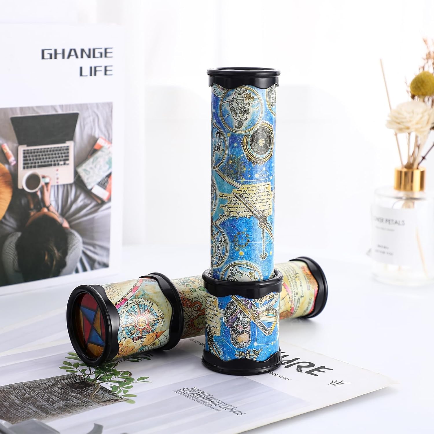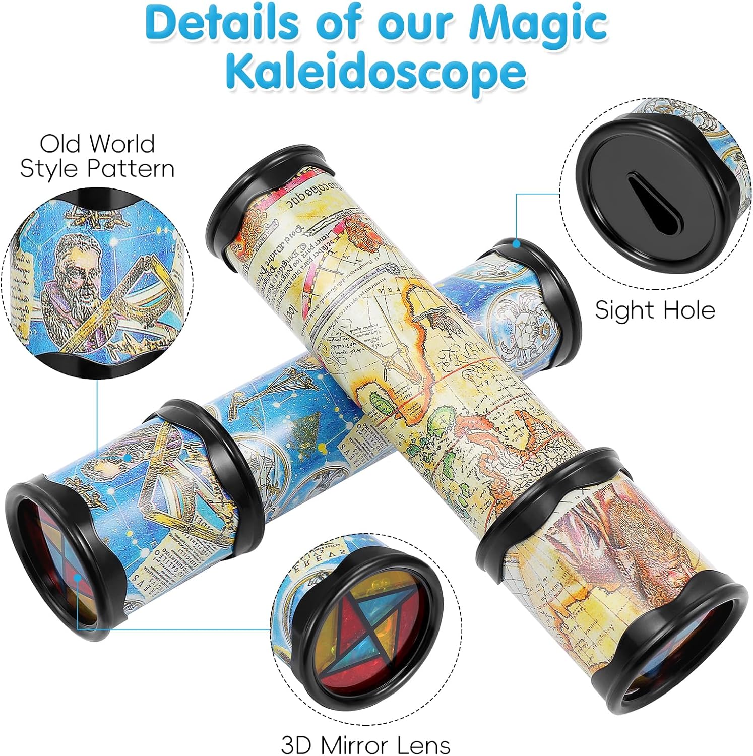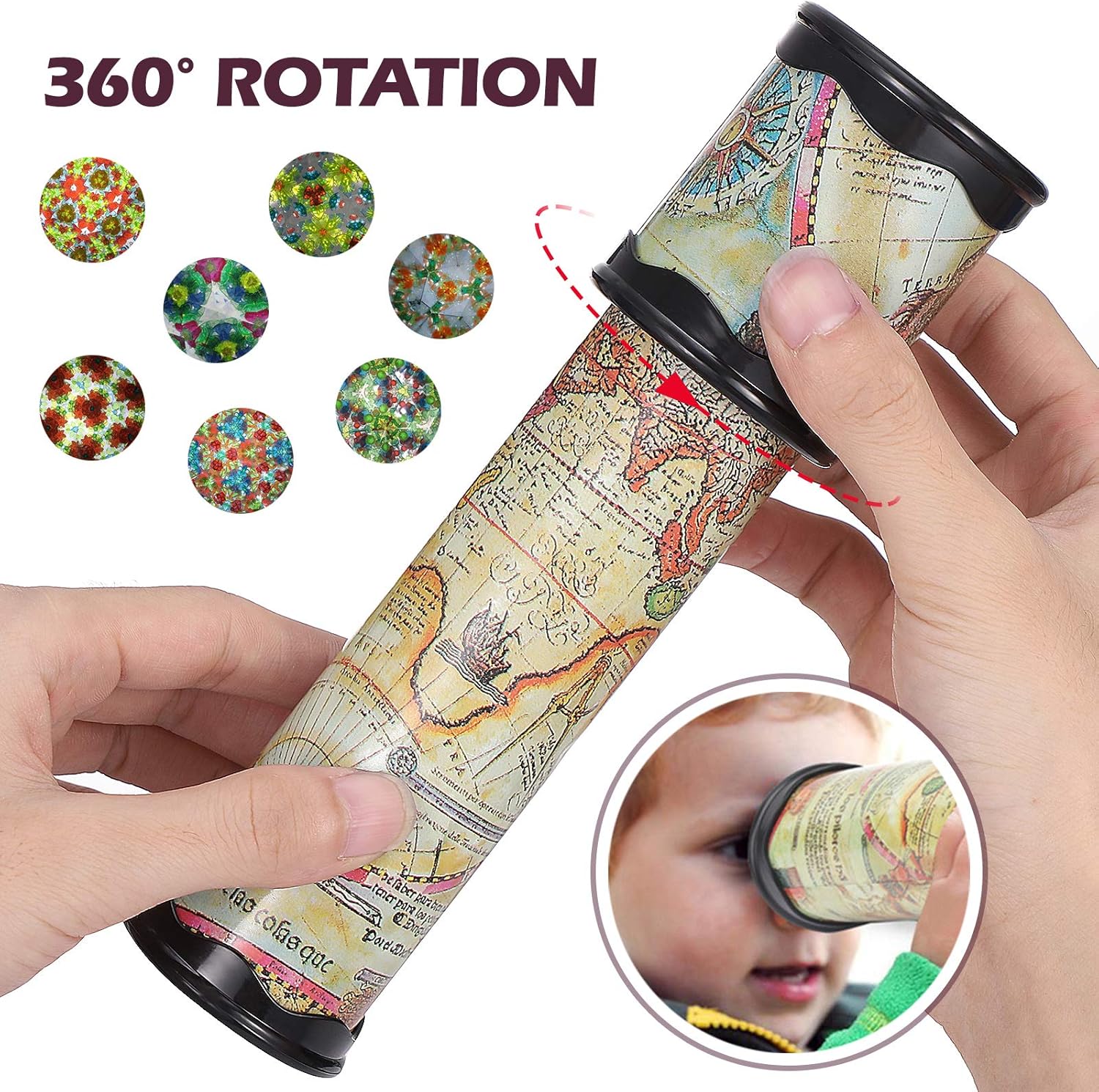 Ruotare il caleidoscopio, può vedere il paesaggio mutevole attraverso il foro, come glamour. Adozione di , tecnologia di stampaggio, squisita fattura, liscia senza sbavature. Stimola l'immaginazione e il pensiero logico dei bambini. Un regalo meraviglioso per i bambini. I giocattoli caleidoscopici fanno vedere il mondo ai bambini in un modo nuovo e più artistico. Il caleidoscopio magico colorato per bambini, basta torcere e uno spettacolo vibrante.