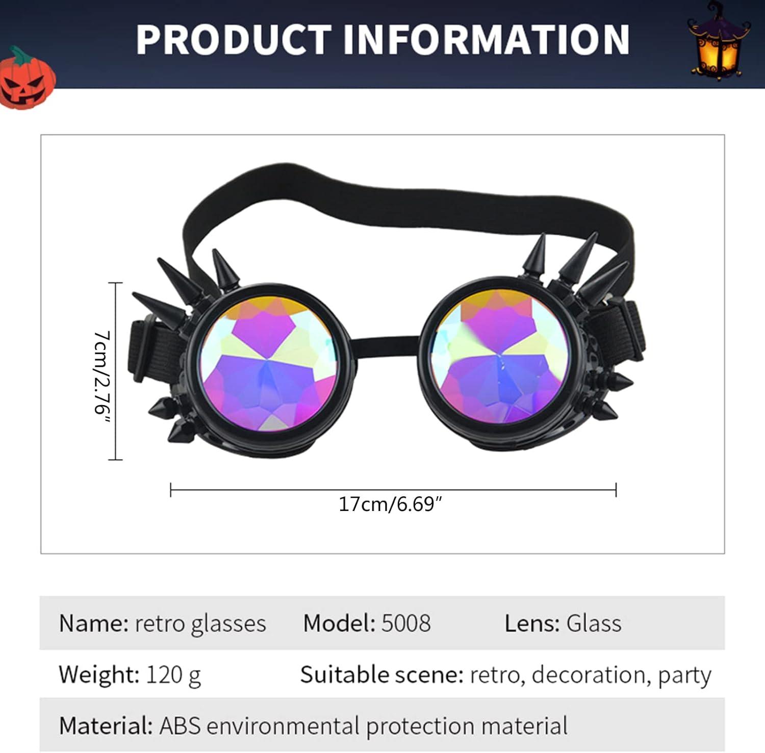 Applicazione: questi caleidoscopi possono essere indossati nella mostra speciale per festival musicali, Halloween, cosplay, oggetti di scena fotografici e altro ancora. Puoi scoprire la tua incredibile illusione psichedelica e creare un viaggio meraviglioso. Qualità: caleidoscopio arcobaleno occhiali da sole, intenso effetto caleidoscopico con centro chiaro, elegante ed elegante, per lenti resistenti che offrono resistenza agli urti. Comoda cinghia regolabile, si adatta a diverse dimensioni della testa con elastico regolabile. Le lenti in cristallo sfaccettato a specchio arcobaleno sono il modo per attirare l'attenzione di tutti a qualsiasi festa di danza, festival musicale o spettacolo di fuochi d'artificio Bellissimi oggetti di scena fotografici: il colore dell'obiettivo può essere cambiato in diverse angolazioni, carino ed elegante, ideale per uscire con gli amici per una bella risata, anche bellissimi oggetti di scena fotografici.