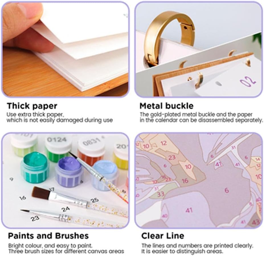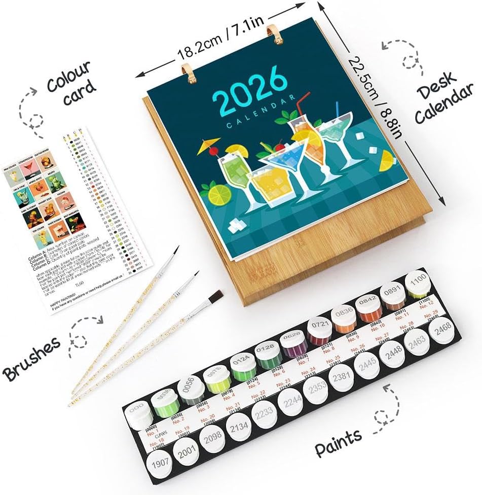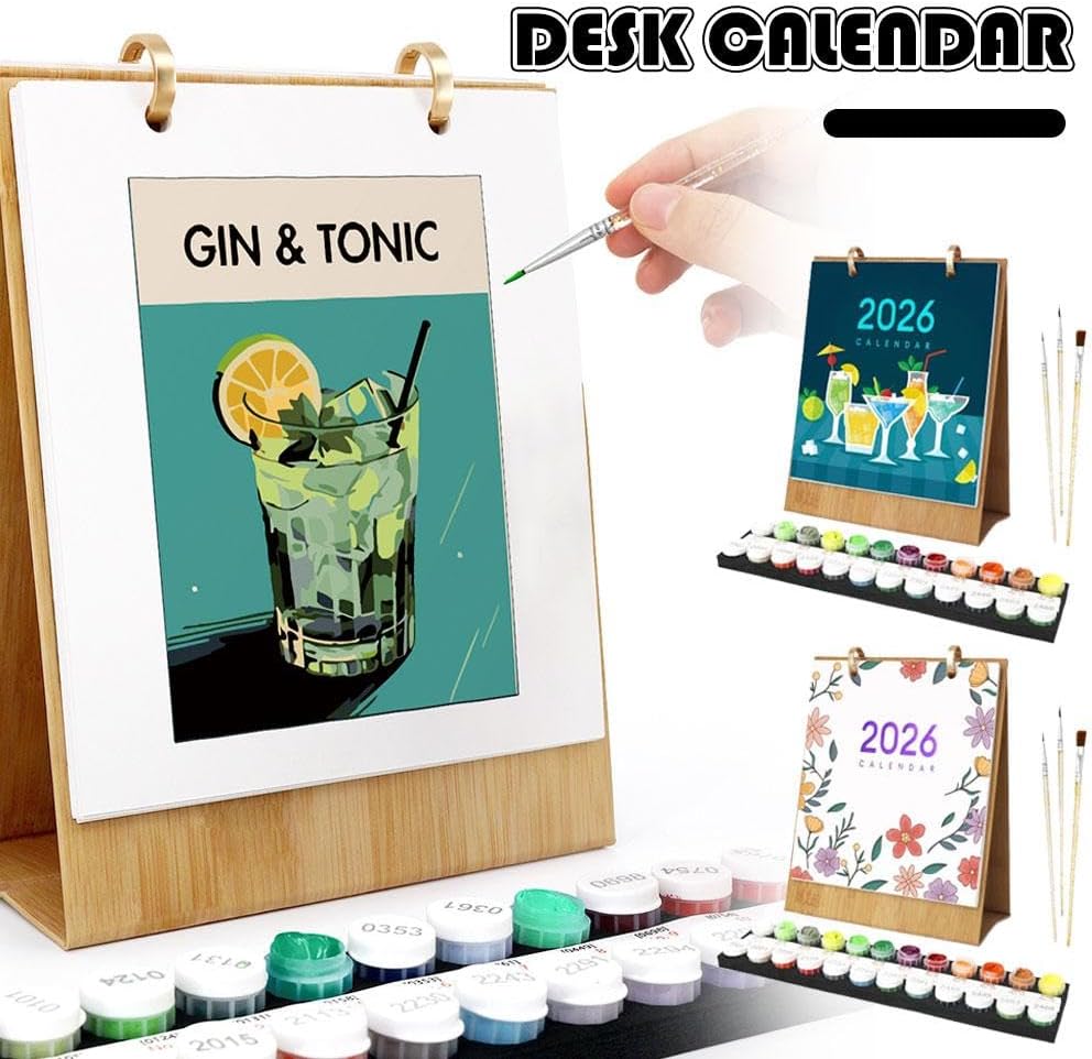 Calendario creativo da scrivania 2026: unisci arte e funzionalità con questo calendario da scrivania 2026: ogni mese si capovolge per rivelare un design unico dipinto per numeri sul retro. Ideale per gli appassionati di pittura digitale e gli amanti del fai da te, trasforma la pianificazione mensile in un divertente rituale artistico. Set completo di pittura: tutto ciò di cui hai bisogno è incluso: un calendario prestampato (22,3 x 18 cm, carta spessa 600 g per evitare sbavature), colori vivaci, 3 pennelli, una guida ai colori e un adesivo. Non sono necessarie forniture aggiuntive: inizia subito a creare arte. Regalo premuroso: perfetto per compleanni, Natale o Capodanno. Gli amanti dell'arte e del fai da te apprezzeranno tutto l'anno: mescolando l'uso pratico del calendario con gioia creativa, è un regalo che continua a dare. Ideale per tutti i livelli di abilità: che tu sia un artista esperto o un principiante, questo calendario da scrivania si adatta. Segui la semplice guida numerica per creare opere d'arte mozzafiato senza sforzo, rimanendo organizzato mese per mese. Ideale per serate artigianali in famiglia o momenti creativi da solista. Per casa, ufficio o studio: aggiungi arte personale a qualsiasi spazio. Posizionalo sulla scrivania di casa, sulla postazione di lavoro dell'ufficio o sullo studio d'arte, più di un calendario funzionale, è un'esposizione della tua unica ispirazione artistica e scintillante ogni giorno.