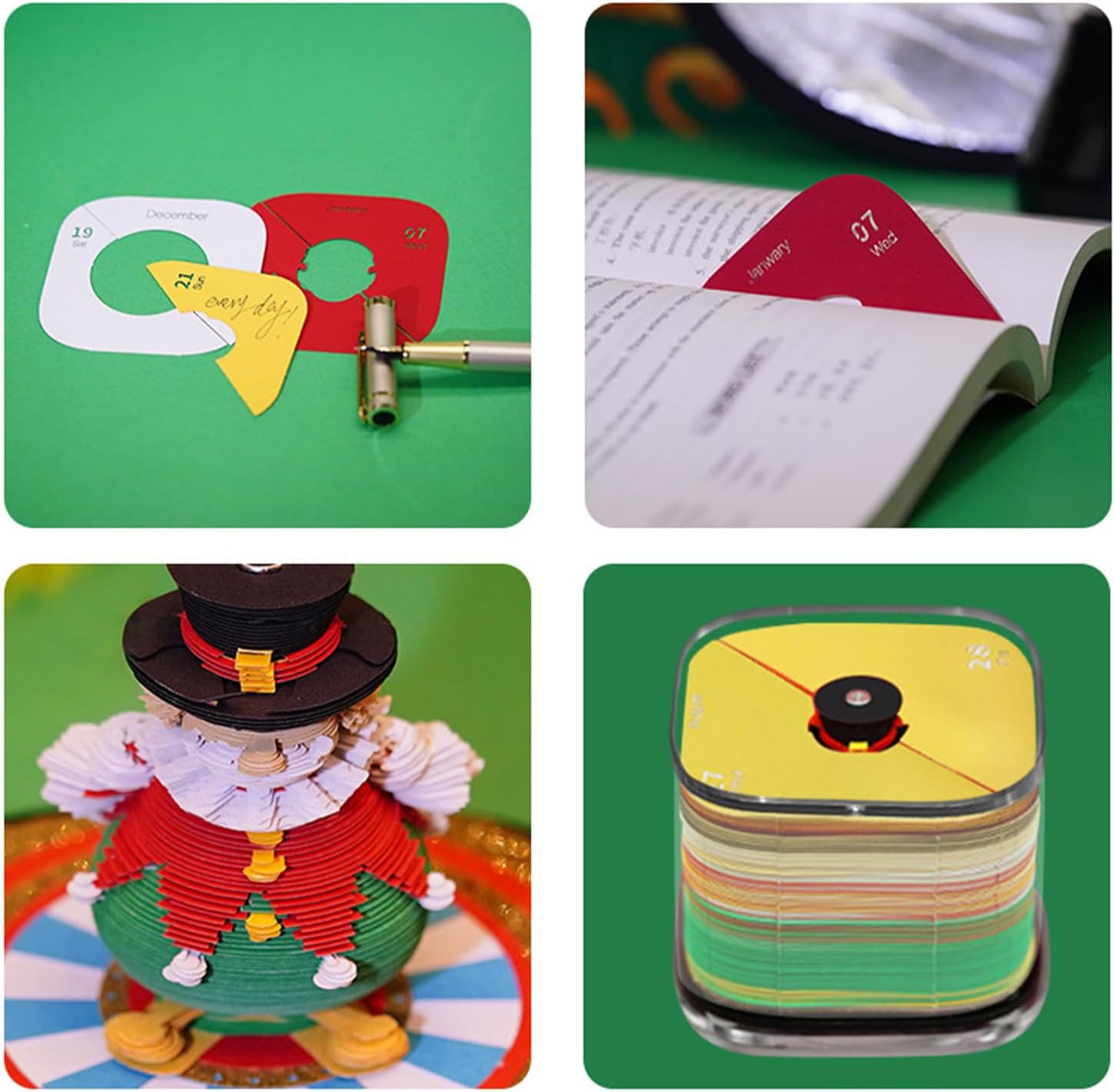 Durata prolungata: Progettato con carta artistica resistente, offre una struttura durevole e colori brillanti che persistono per tutto l'anno, garantendo affidabilità nella pianificazione giornaliera e ispirazione visiva Rituale Giornaliero Funzionale: Questo calendario 3D utilizza un meccanismo strappa e stacca, permettendo di vivere ogni giorno la soddisfazione di un design a strappo, combinando la funzionalità di calendario con quella di blocco appunti per una pianificazione efficiente e motivazione costante nella routine quotidiana Tema circo in miniatura: La combinazione di effetti di profondità multistrato e tecniche di scultura cartacea presenta performer circensi vividi in un'atmosfera affascinante, rendendolo un pezzo decorativo artistico per ambienti che cercano originalità e ispirazione creativa Strumento di Curiosità: Le caratteristiche progettuali accendono la curiosità naturale, supportando la crescita artistica e favorendo attività condivise tra genitori e figli in un ambiente immersivo, il gioco pratico diventa un ponte verso connessioni più profonde e creatività quotidiana : Il calendario tridimensionale unisce un'estetica natalizia coinvolgente alla capacità di ispirare fantasia in ogni generazione, perfezionando lo spirito delle celebrazioni con un regalo sorprendente per occasioni speciali