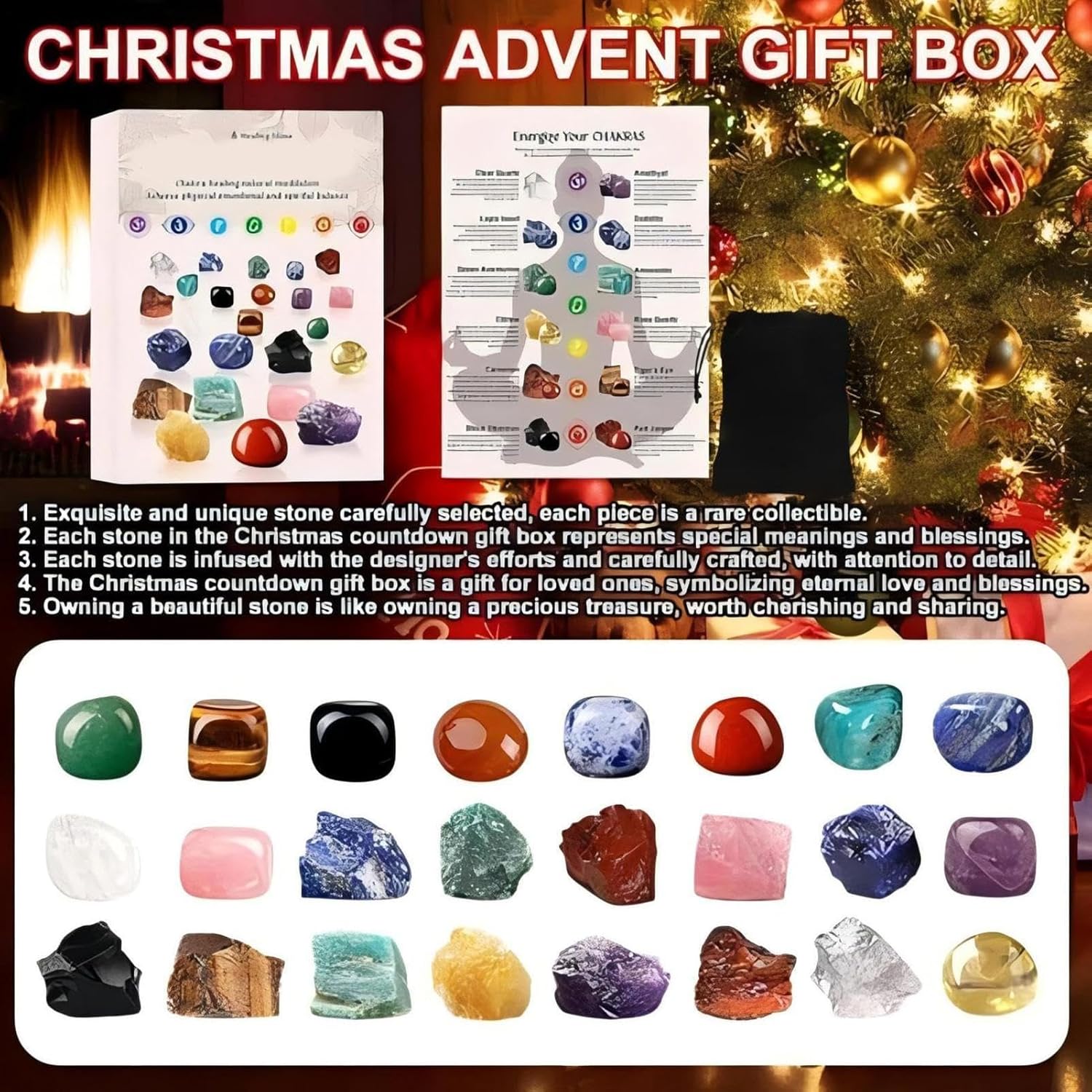 Cimelio Compatto e Incantevole: Con dimensioni convenienti e un appeal incantevole, misure raffinate di 2-3 cm, il Conto alla Rovescia Natalizio gli spazi condividendo energia edificante, integrandosi perfettamente in display da scrivania o servendo come un amato cimelio portatile per le vacanze. Questo oggetto unico aggiunge un tocco magico alle decorazioni natalizie, favorendo sentimenti di gioia e speranza in ogni setting, grazie alla sua versatilità e al design facile da utilizzare Natale Coinvolgente: Il calendario 'Avvento stimola la curiosità per tutte le età attraverso la sua apertura interattiva, creando momenti di familiare gioiosi e scoperta condivisa mentre i familiari si riuniscono per rivelare il fascino quotidiano, rendendolo un modo ideale per valorizzare le tradizioni natalizie con un coinvolgimento significativo. Divertimento per Menti Curiose: Progettato per includere nozioni base di geologia e esplorazione dei cristalli, questo calendario 'Avvento natalizio incoraggia il divertimento scientifico pratico, accendendo l'interesse per l'apprendimento a natura mentre unisce educazione e intrattenimento, ideale per attività di familiare durante le vacanze. L'esperienza hands-on stimola la curiosità verso la geologia e i cristalli, offrendo un modo coinvolgente di esplorare la scienza pratica e Promemoria a Gratitudine: Il Calendario 'Avvento con Ornamenti Natalizi funge da promemoria per la gratitudine, incoraggiando la riflessione consapevole durante la stagione . Supporta i rituali di benessere personale e favorisce un'atmosfera in ambienti familiari o personali, integrando momenti di mindfulness nella routine quotidiana per enhanced benessere e gioia durante le celebrazioni natalizie. Questo calendario promuove la gratitudine come pratica quotidiana, aiutand Anticipazione di 24 Giorni: Il calendario 'Avvento per il conto alla rovescia natalizio fornisce una funzionalità di rivelazione quotidiana immersiva, permettendo agli utenti di coinvolgersi in un rituale di conto alla rovescia festivo, che promuove eccitazione giocosa e crea ricordi indelebili durante la stagione e feste, rendendolo un essenziale per gli amanti del Natale che desiderano vivere l'attesa con momenti di gioia quotidiana e tradizioni familiari indimenticabili.