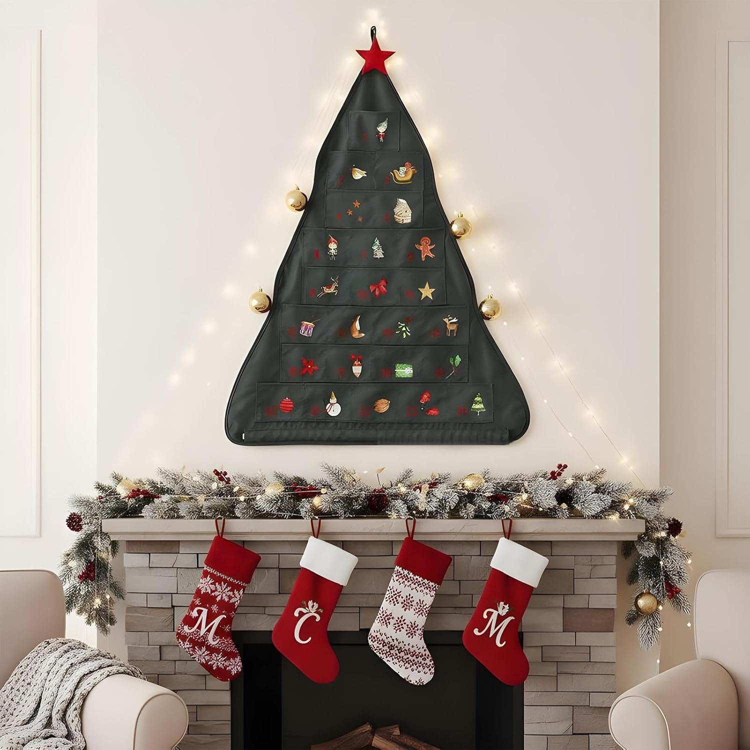 Conto alla Rovescia Natalizio: Le borse in tessuto per il conto alla rovescia portano allegria attraverso le 24 stampe speciali, creando un modo coinvolgente per contare alla rovescia verso il Natale mentre instillano pazienza e offrono un incanto quotidiano, ideale per migliorare le tradizioni festive a casa e trasformare l'attesa in un'esperienza e educativa per tutta la famiglia con un tocco di magia natalizia. Riutilizzabile e Resistente: Il calendario 'avvento in tessuto offre una costruzione riutilizzabile e realizzata in poliestere durevole, garantendo zero sprechi durante l'uso e integrando tinture ecologiche o ricami per una scelta sostenibile; è ideale per celebrazioni annuali come Natale o compleanni, arricchendo le tradizioni familiari con affidabilità e stile in qualsiasi ambiente domestico grazie alla sua durabilità e design pratico. Decorazione Adattabile e Funzionale: Questo calendario 'Avvento in tessuto è progettato per un uso versatile, permettendo il montaggio su pareti o porte e l'inserimento di , bigliettini o charme, creando una tradizione natalizia coinvolgente se abbinato a luci scintillanti e decorazioni, aggiungendo calore e allegria a qualsiasi spazio abitativo durante la stagione , per arricchire l'ambiente domestico con un tocco festoso e familiare. Esposizione Simboli Stagionali: Il calendario 'Avvento in tessuto con tasche presenta simboli stagionali iconici che un'atmosfera allegra e festosa, condividendo il calore del Natale e valorizzando lo spirito e feste in qualsiasi stanza o setting di celebrazione. Grazie al suo design accattivante e natalizio, trasforma ogni ambiente in un luogo pieno di gioia e tradizione, ideale per vivere la magia del periodo festivo in famiglia o con amici. Funzionalità Rami a Strati: Combinando una silhouette triangolare classica con una disposizione ad albero festivo, questo calendario 'Avvento con tasche presenta un'illusione di mini albero se visto da lontano, arricchito da 24 rami di tessuto a strati per delizie quotidiane e ricordini, aggiungendo calore e festosità a qualsiasi celebrazione stagionale in modo semplice e divertente.