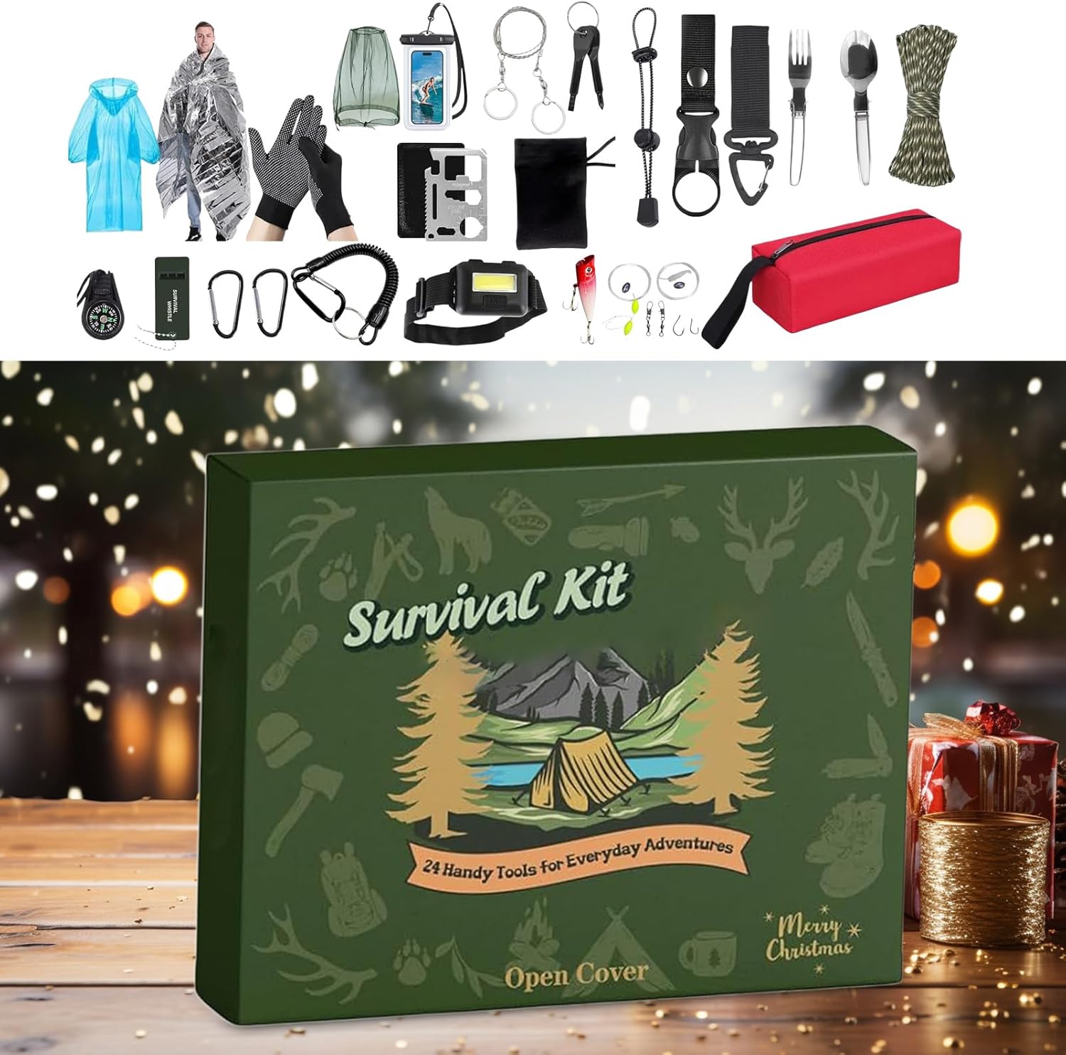 Applicazioni Estese: Progettato per escursionismo, , caccia e campeggio, offre soluzioni affidabili per la sopravvivenza in natura e soddisfa le esigenze di ampie esperienze outdoor. Pronto per l'uso immediato. Conto Alla Rovescia Festivo: Goditi l'atmosfera natalizia con questo calendario 'avvento a tema survival kit, un modo creativo per aumentare l'eccitazione e l'attesa per le festività, rendendo ogni giorno un momento memorabile da celebrare Pratico da Portare: Progettato con portabilità in mente, questo kit di sopravvivenza compatto e leggero è semplice da impacchettare in zaino, offrendo utilità per viaggiatori e appassionati di attività outdoor con massima versatilità Regalo Ideale: Realizzato come per festività, adatto a padri, mariti, fidanzati, figli e amanti e attività outdoor in cerca di strumenti di sopravvivenza funzionali per l'esplorazione. Un calendario 'avvento che unisce utilità e aspettativa. Strumenti Versatili: Include una varietà di strumenti di sopravvivenza pratici per garantire preparazione in avventure outdoor e gestire varie emergenze, rendendolo indispensabile per avventurieri che cercano affidabilità e funzionalità