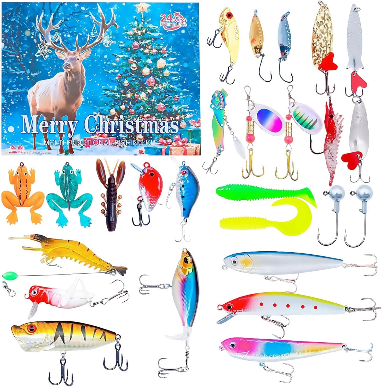 - E navigabilità: ottimizzato per vari corpi d'acqua come corsi d'acqua e laghi, offrendo prestazioni costanti con durata per tutte le stagioni e versatilità stagionale. Prestazioni versatili dell'esca: queste esche da pesca garantiscono prestazioni impeccabili in una varietà di ambienti di pesca, ottimizzando i tassi di cattura e arricchendo l'esperienza di pesca senza limitazioni attraverso caratteristiche di progettazione adattiva Intensifica la gioia dell'Avvento: sperimenta un'anticipazione unica attraverso scoperte quotidiane che arricchiscono senza sforzo le usanze natalizie e migliorano lo spirito festivo Regalo significativo: progettato per occasioni speciali, questo calendario da pesca combina praticità con significato emotivo. Serve come un modo memorabile per segnare traguardi e stabilire tradizioni durature tra gli appassionati di pesca. Dettagli realistici: la ricreazione dinamica delle creature sottomarine attraverso una modellazione precisa e una rappresentazione realistica dei colori offre agli appassionati di pesca il perfetto equilibrio tra design accattivante e prestazioni funzionali dell'esca da pesca.