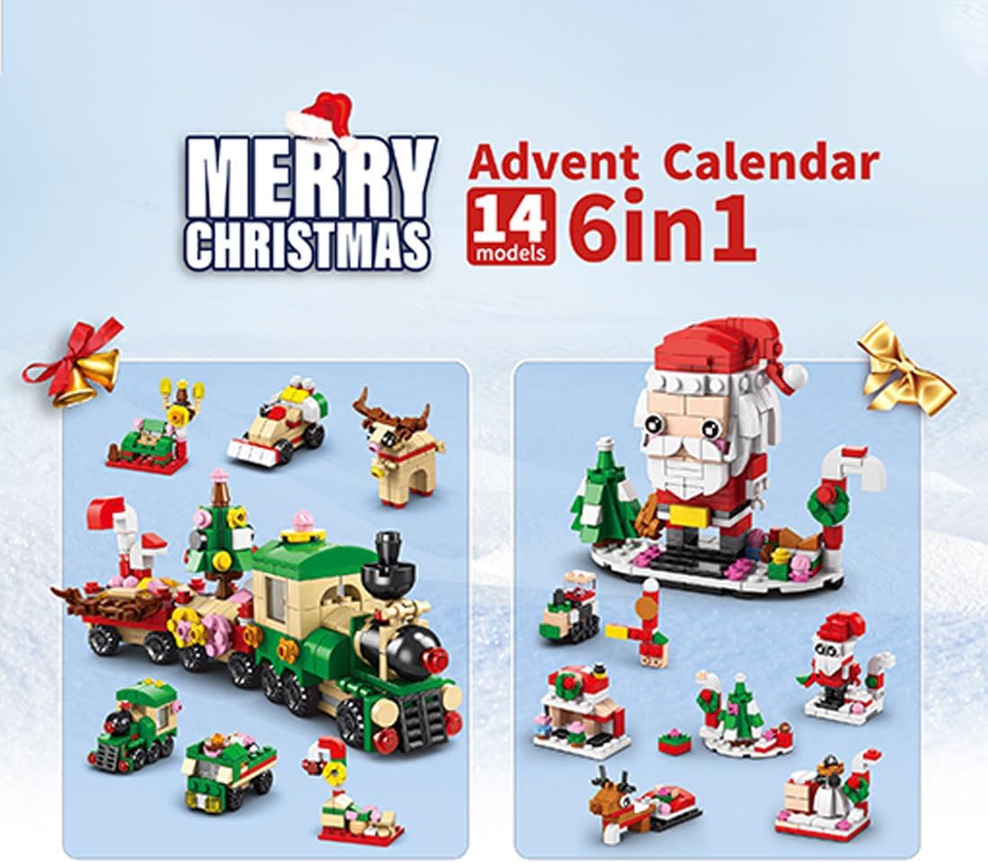 Calendario dell'Avvento 2025 mattoncini da costruzione con bloccaggio, giocattoli di Natale incl. 14 diversi mini giocattoli da costruzione, incluso Tirane fuori uno ogni giorno per giorni e sperimenta una sorpresa diversa. Materiale: ABS, dai 6 anni in su