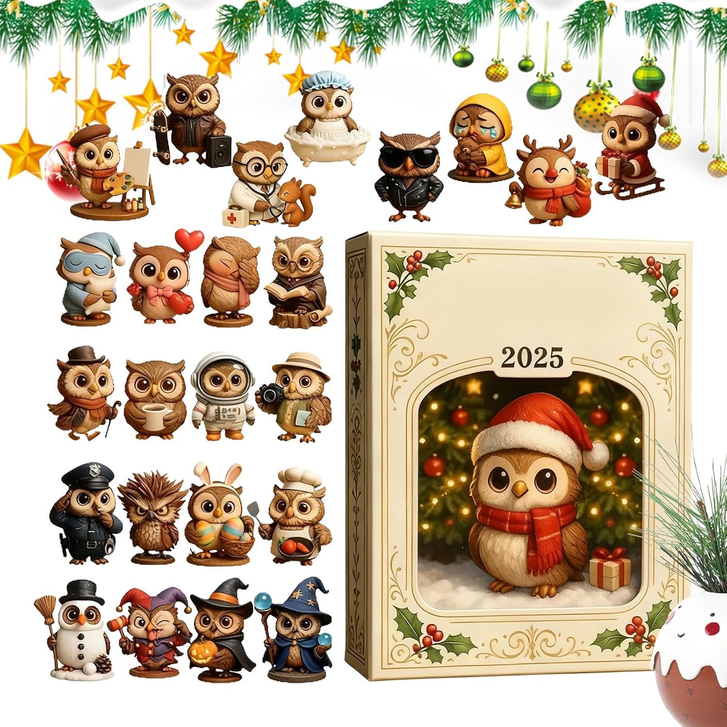 Opzioni di sospensione versatili: il calendario per il conto alla rovescia di Natale offre opzioni di sospensione estremamente versatili, che consentono di appenderlo in modo flessibile ai rami degli alberi, posizionarlo comodamente sui davanzali delle finestre o installarlo in modo decorativo come decorazione murale. Si integra perfettamente in diversi ambienti come soggiorni, cucine o ingressi e crea un'atmosfera armoniosa e festosa in ogni casa grazie alla sua versatilità adattabile a diversi scenari e al n Ornamento festivo interattivo: il calendario dell'Avvento di Natale convince come regalo indimenticabile e migliora l'interazione con i suoi ornamenti creativi con animali. Questi ispirano una profonda risonanza emotiva e trasmettono un’autentica cura festosa. Impressioni durature vengono lasciate in occasioni speciali come la mattina di Natale o riunioni di famiglia intime. Il calendario dell'Avvento diventa un highlight festivo che arricchisce l'atmosfera in modo incomparabile. Perfetto per le celebrazioni: il calendario dell'Avvento 2025 delizia con le vivaci forme di gufi e arricchisce rituali interattivi che riuniscono le famiglie con gioia e risate durante celebrazioni ed eventi festivi. Crea un'atmosfera festosa per le feste di Natale e rafforza la connessione attraverso attività quotidiane di conto alla rovescia, ideali per incontri sociali durante l'Avvento. REGALO IDEALE PER LE VACANZE: questo calendario dell'Avvento 2025 ti consente di condividere affetto e cura in occasione di compleanni, feste e festività. Offre esperienze indimenticabili per bambini e bambine e garantisce che ogni occasione sia creativa e valorizzata. Con questo calendario natalizio puoi mostrare il tuo amore e la tua attenzione in modo speciale e creare momenti speciali. Fascino duraturo: il calendario dell'Avvento di Natale 2025 combina una lunga durata con un'estetica senza tempo, consentendo alle famiglie di utilizzare le sue funzionalità anno dopo anno. In questo modo si creano ricordi preziosi durante le celebrazioni natalizie senza preoccuparsi di usura prematura o danni. Il suo fascino duraturo lo rende parte integrante delle tradizioni natalizie, portando gioia e intimità in ogni stagione e grazie alla sua costruzione robusta