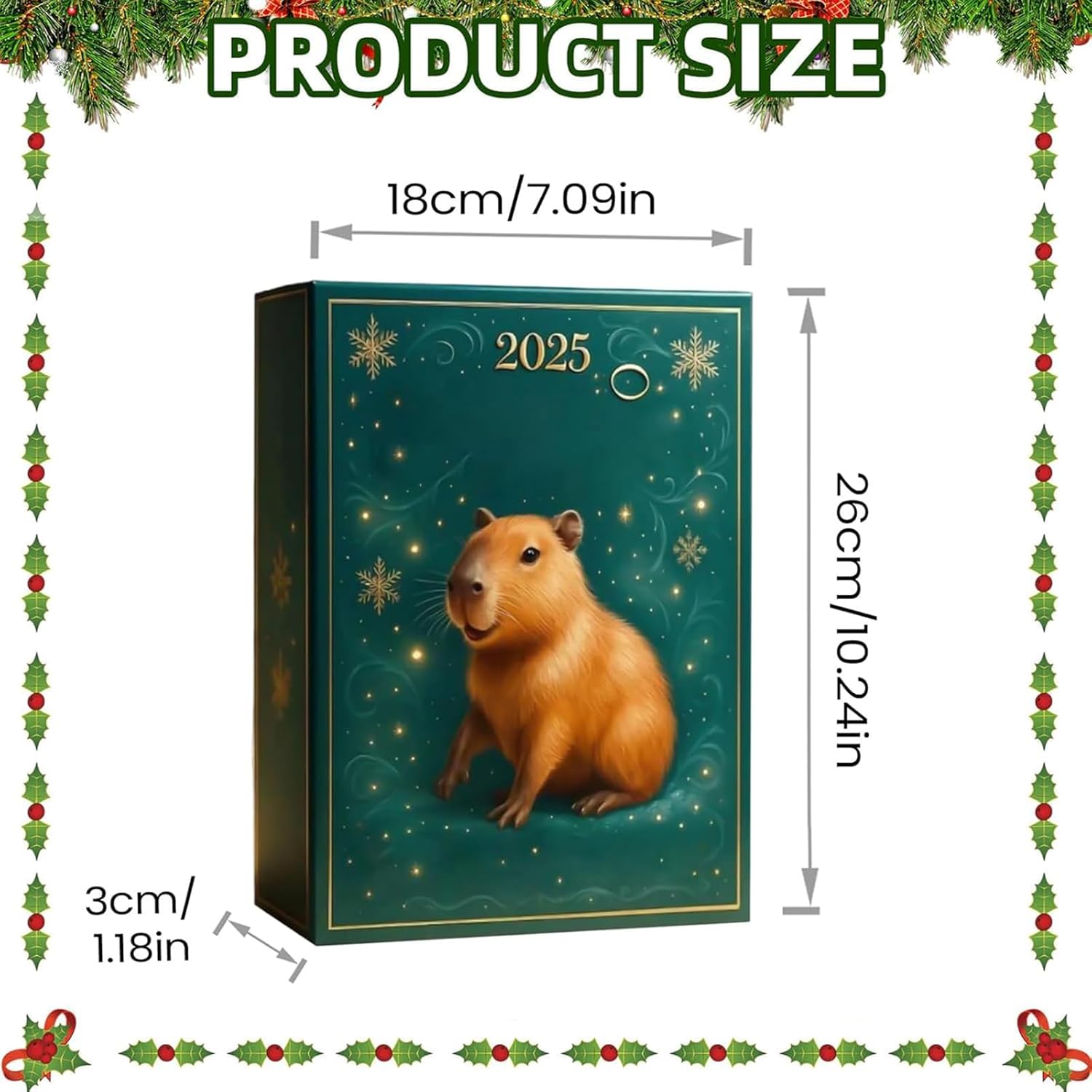 Simpatici ornamenti per capibara: il calendario dell'avvento capibara 2025 contiene adorabili figure in miniatura di capibara che ravvivano lo spirito natalizio e creano un'atmosfera allegra e festosa. 【DIVERTIMENTO FESTIVO CONTO ALLA ROVESCIA】 Con il suo tema adorabile, il calendario dell'avvento Capibara porta calore e gioia immediati a casa tua e garantisce un'atmosfera natalizia speciale per grandi e piccini. 【QUALITÀ ROBUSTA】 Questo calendario capibara è realizzato con materiali di alta qualità, mantiene la sua forma ed è durevole, così puoi goderti un fedele compagno festivo per tutta la stagione. 【GIOIA ED EMOZIONE】 Il calendario decora stanze e pareti con fascino e crea ricordi indimenticabili pieni di gioia ed eccitazione durante il periodo natalizio. 【REGALO PERFETTO】 Un regalo ideale e un calendario di Natale 2025 per ragazze che esprime amore e cura - perfetto per bambini, amici e amanti degli animali a Natale o alla fine dell'anno.
