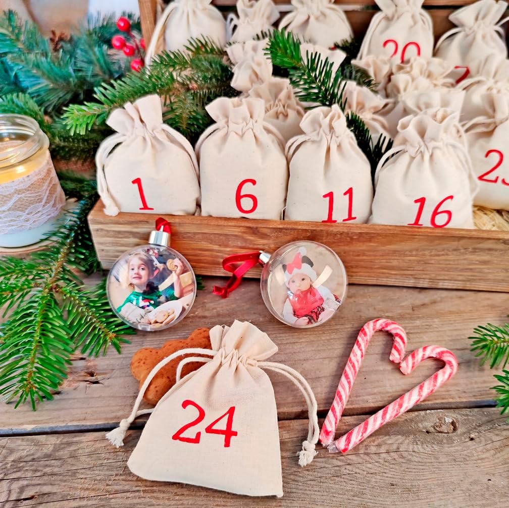 🧺 Applicazione - I sacchetti in cotone naturale sono molto adatti come sacchetti per il calendario dell'Avvento. Ogni borsa in cotone ha un cordoncino per garantire che il prezioso contenuto rimanga chiuso in modo sicuro. 🎄 Contenuto - 24 sacchetti natalizi con numeri stampati. Puoi riempire il set con i sacchetti regalo dell'Avvento come desideri. Devi solo pensare con cosa vuoi riempirlo! 💪 Robusto e naturale - Riempi tu stesso il calendario dell'Avvento è realizzato in cotone naturale al 100%, è molto robusto, nessun odore fastidioso e otterrai un sacchetto piacevole che non è così ruvido e graffiante come i tradizionali tessuti di iuta. ✨ Utilizzo - Il nostro set di calendari dell'Avvento fai da te per il fai da te può essere appeso al muro, all'albero di Natale, alla porta o alla mensola del camino. Bellissimo accessorio per la casa per il periodo prenatalizio. 🌿 Materiale: il nostro tessuto in cotone di alta qualità è estremamente robusto e quindi durevole. Ecologico, lavabile in lavatrice. È molto resistente agli strappi e può sopportare molto!