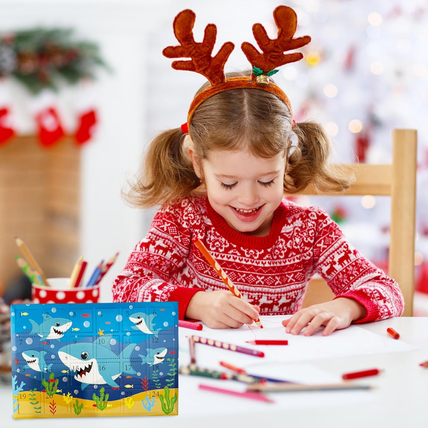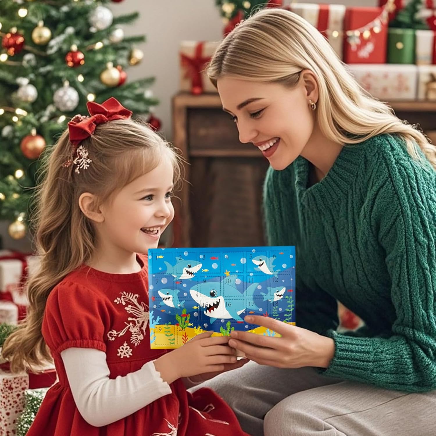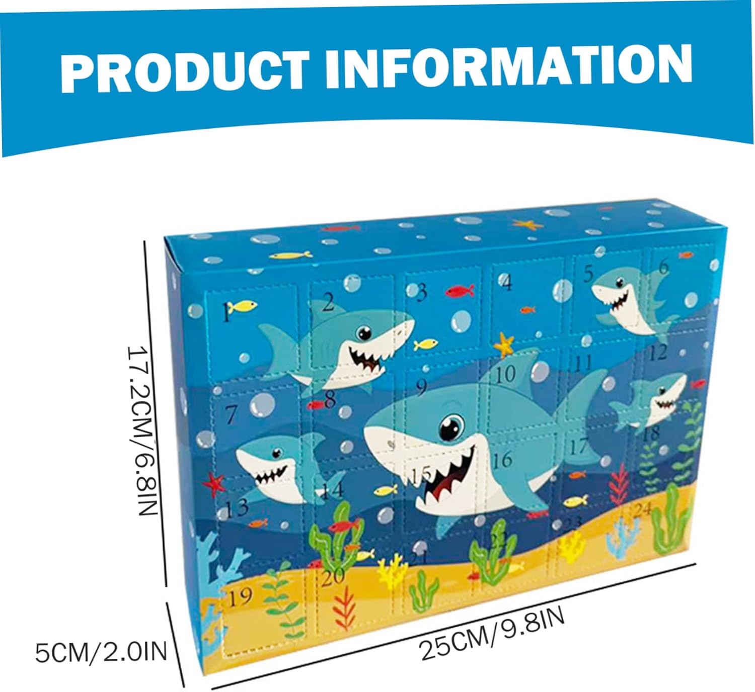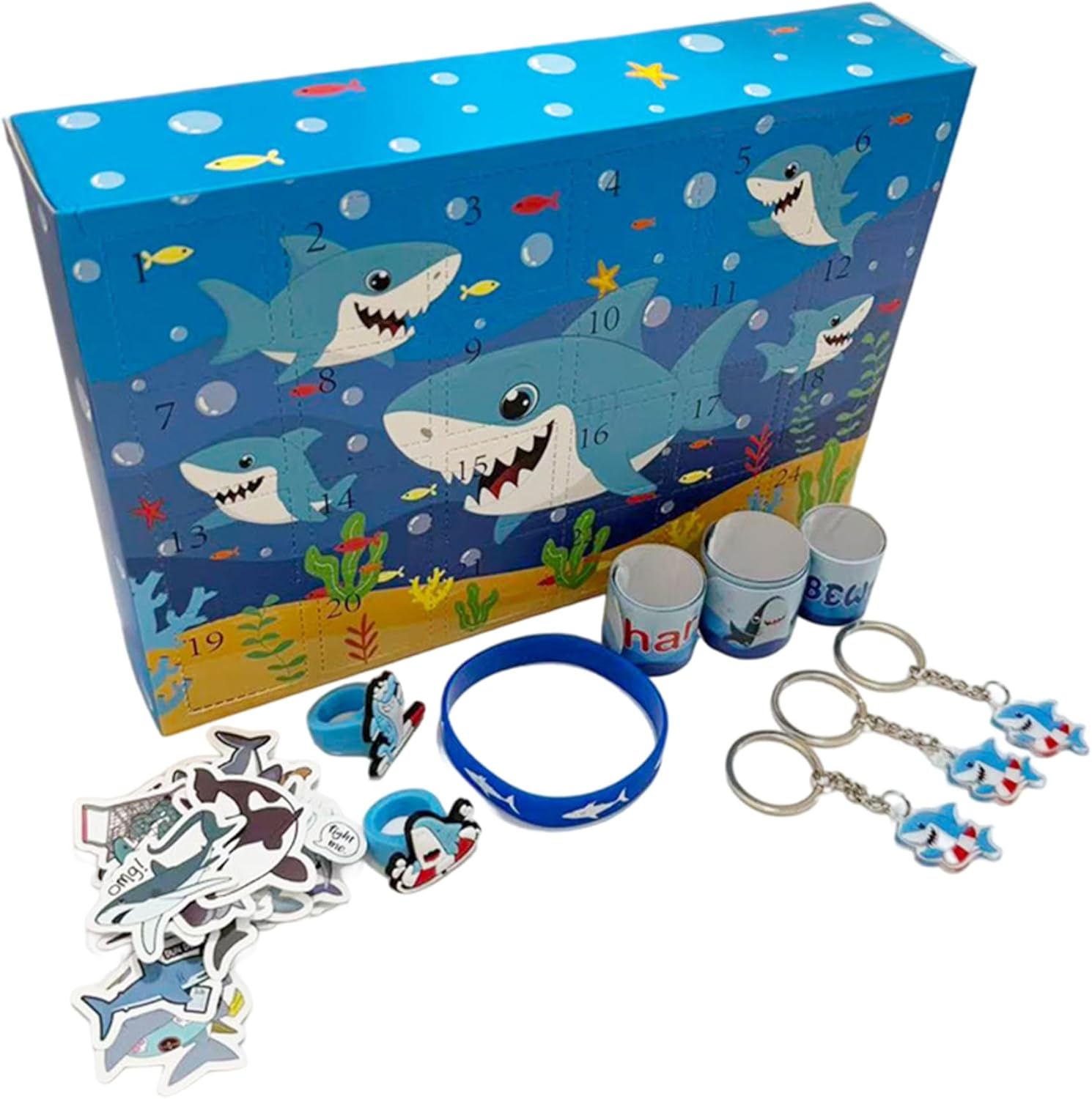 Sorprese giornaliere incluse: ogni giorno viene rivelato un ciondolo giocattolo a sorpresa, rendendo il conto alla rovescia di Natale coinvolgente ed emozionante, combinando perfettamente l'anticipazione con il gioco interattivo che invoglia gli utenti a tornare per saperne di più. Calendario dell'Avvento giocattolo 2025, Calendario dell'Avvento di Natale Emozioni a tema squalo: immergiti nelle festività natalizie con un calendario dell'avvento di 24 giorni unico con ciondolo a tema squalo progettato per affascinare adulti, adolescenti e ragazzi, combinando il divertimento delle vacanze con il fascino degli amanti degli squali. Calendario dell'Avvento di Natale, Calendario del conto alla rovescia di Natale Decorazione natalizia versatile: oltre ai giocattoli pendenti, il calendario funge anche da elemento decorativo per la casa, evidenziando l'atmosfera natalizia con le sue illustrazioni colorate ispirate al mare che piacciono a tutte le età. Calendario per il conto alla rovescia di Natale, calendario dell'Avvento giocattolo Qualità e sicurezza garantite: realizzato con materiali atossici, questo calendario dell'Avvento soddisfa rigorosi standard di sicurezza, è adatto sia ai neonati che ai bambini più grandi e offre ai genitori tranquillità durante le festività natalizie. Calendario dell'Avvento giocattolo Calendario dell'Avvento per bambini Idea regalo perfetta: combinando un design giocoso di squalo con allegria festosa, questo calendario è un'opzione ideale che si distingue dai calendari dell'Avvento di Natale e delizierà i bambini e gli adulti che amano gli oggetti da collezione a tema. Calendario dell'Avvento per bambini Calendario dell'Avvento 2025
