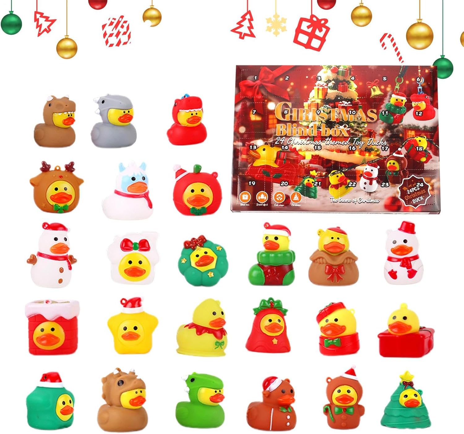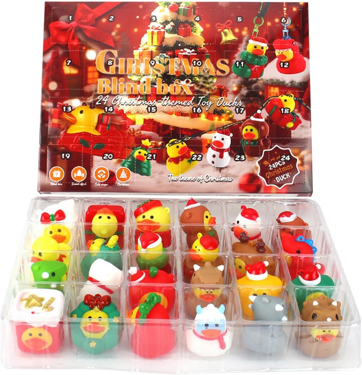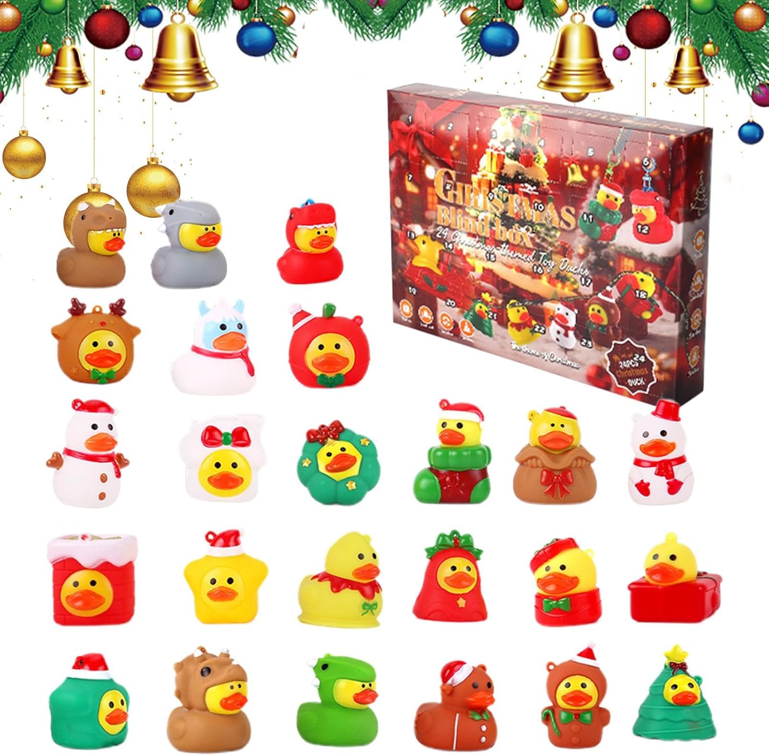 Uso festivo: con dettagli creativi ed esecuzione a tema, questo calendario dell'avvento con papere è la decorazione perfetta per le feste che porta gioia e arricchisce qualsiasi spirito natalizio speciale. Gioia festiva quotidiana: abbraccia ogni giorno la magia di scoprire una speciale paperella di gomma da 24 scomparti separati: questa sorpresa quotidiana aumenta lo spirito natalizio e crea facilmente momenti indimenticabili. Concetto alla moda: come calendario dell'Avvento integra paperelle di gomma in motivi natalizi. Crea un'atmosfera festosa e suscita curiosità ogni giorno aprendo in modo interattivo le porte con divertenti sorprese di papere. Uso giocoso: sperimenta 24 affascinanti sorprese di anatre nel conto alla rovescia quotidiano che uniscono educazione e divertimento per indimenticabili momenti dell'Avvento pieni di gioia della scoperta. & Non tossico: le superfici lisce garantiscono una presa senza spigoli vivi, con opzioni di design flessibili per l'uso quotidiano e decorazioni festive, posizionamento versatile