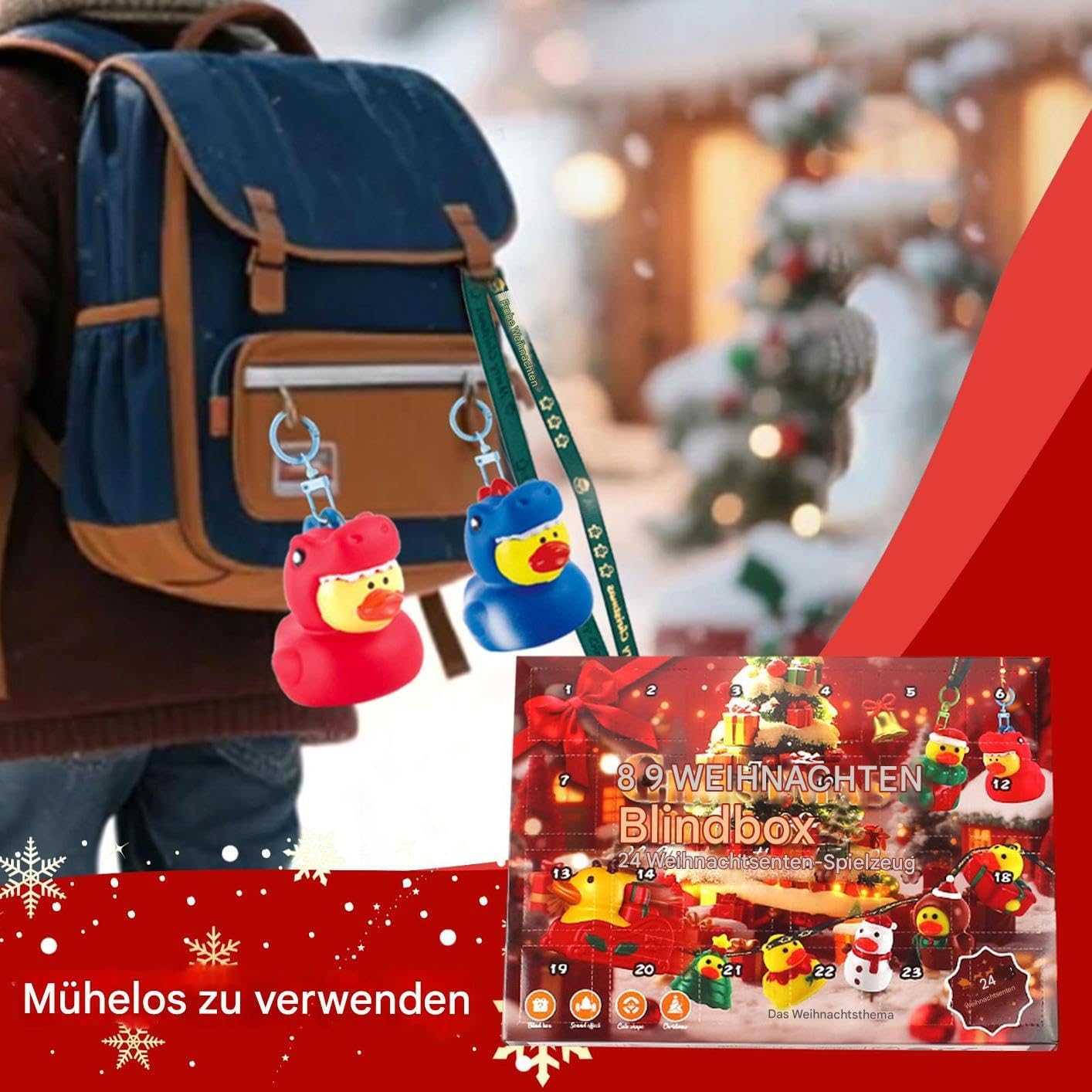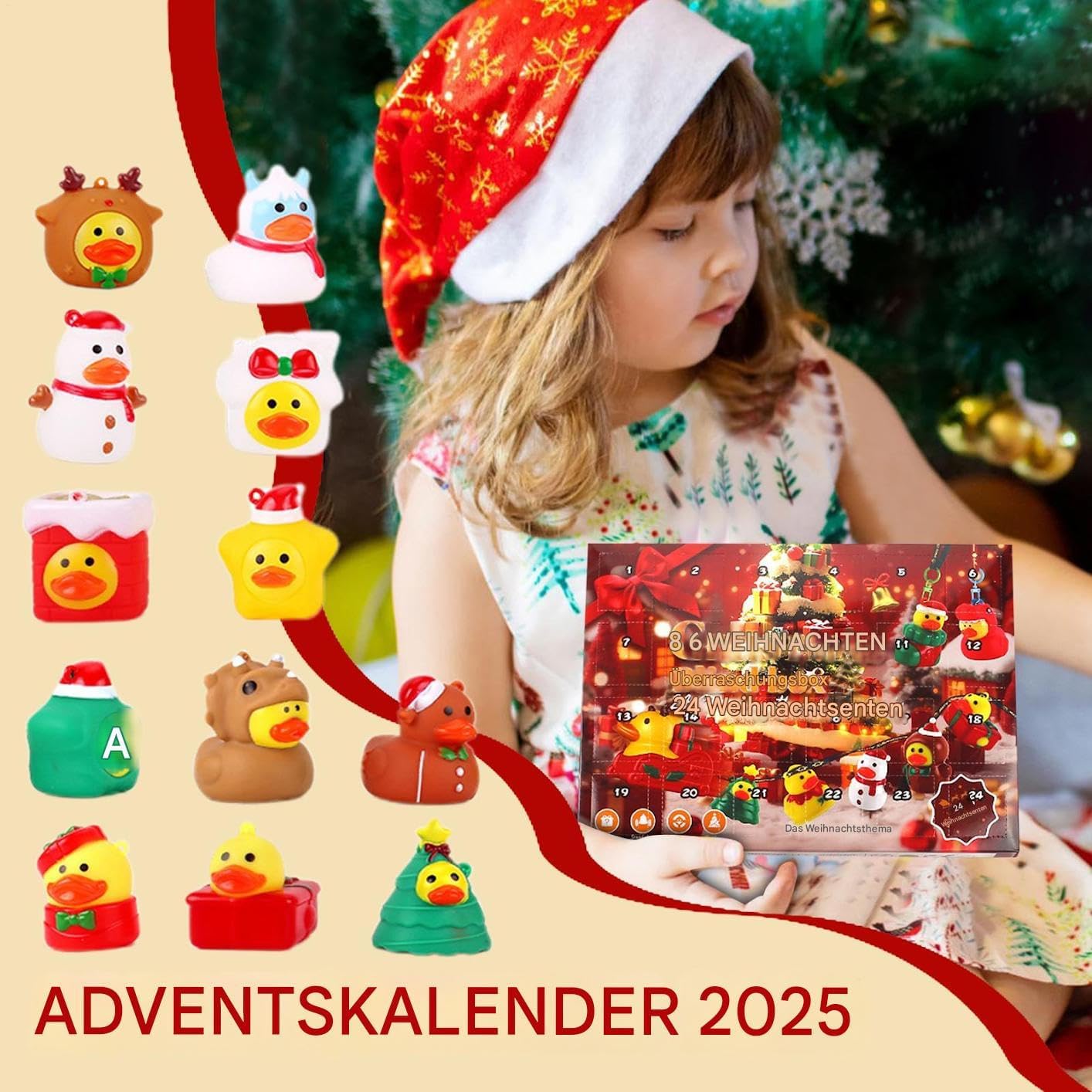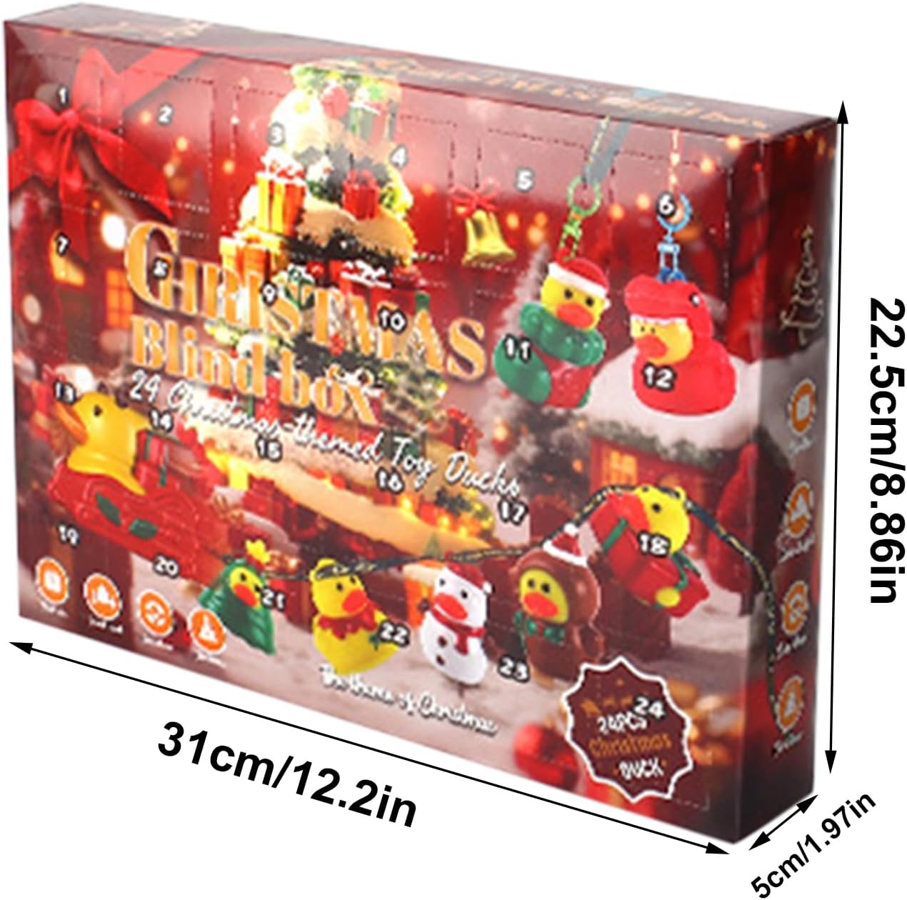 Uso festivo: con dettagli creativi ed esecuzione a tema, questo calendario dell'avvento con papere è la decorazione perfetta per le feste che porta gioia e arricchisce qualsiasi spirito natalizio speciale. Gioia festiva quotidiana: abbraccia ogni giorno la magia di scoprire una speciale paperella di gomma da 24 scomparti separati: questa sorpresa quotidiana aumenta lo spirito natalizio e crea facilmente momenti indimenticabili. Concetto alla moda: come calendario dell'Avvento integra paperelle di gomma in motivi natalizi. Crea un'atmosfera festosa e suscita curiosità ogni giorno aprendo in modo interattivo le porte con divertenti sorprese di papere. Uso giocoso: sperimenta 24 affascinanti sorprese di anatre nel conto alla rovescia quotidiano che uniscono educazione e divertimento per indimenticabili momenti dell'Avvento pieni di gioia della scoperta. & Non tossico: le superfici lisce garantiscono una presa senza spigoli vivi, con opzioni di design flessibili per l'uso quotidiano e decorazioni festive, posizionamento versatile