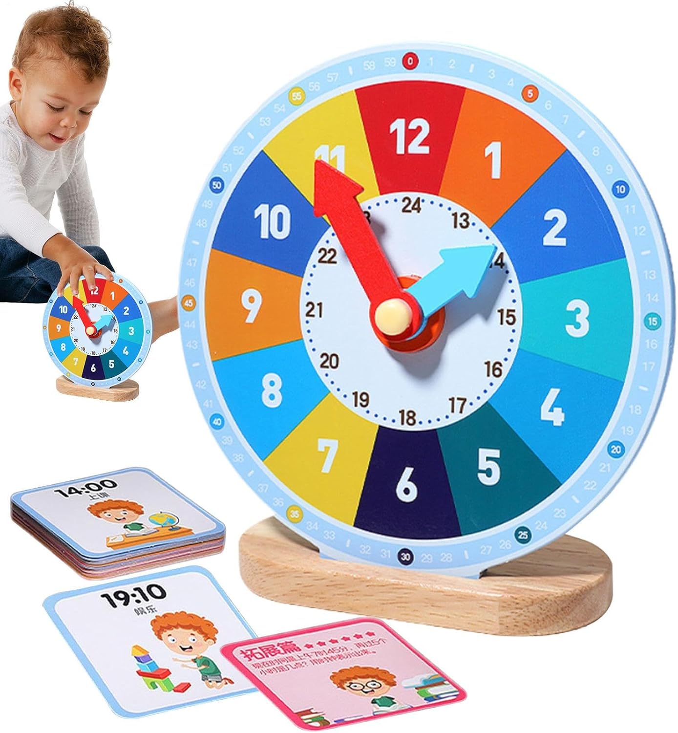 Dimensioni: porta l'apprendimento di tuo figlio a un livello superiore con questo orologio portatile in legno. Dà un senso preciso del tempo e rende il viaggio e il divertimento in macchina, in aereo o all'aperto. Strumento di apprendimento: migliora le capacità di riconoscimento del tempo e dei numeri di tuo figlio con il nostro orologio in legno. Basta cambiare il quadrante tra le mani per regolare l'ora e guardarla con questo strumento divertente ed educativo. Buon materiale: questo orologio didattico in legno è realizzato in materiale di legno liscio, garantendo prestazioni di lunga durata per un apprendimento continuo ed efficace. La padronanza del tempo diventa semplice: con il nostro orologio educativo in legno, i bambini possono imparare rapidamente a leggere l'ora e sviluppare una comprensione della relazione tra ore, minuti e secondi. Apprezzeranno il modo in cui periodi di tempo diversi corrispondono a attività diverse e miglioreranno le loro capacità di gestione del tempo man mano che procedono. EDUCAZIONE E DIVERTIMENTO: Introduci tuo figlio a fare bene in ore e minuti con il nostro orologio didattico in legno con 25 flashcard e 25 cartellini analogici e digitali.
