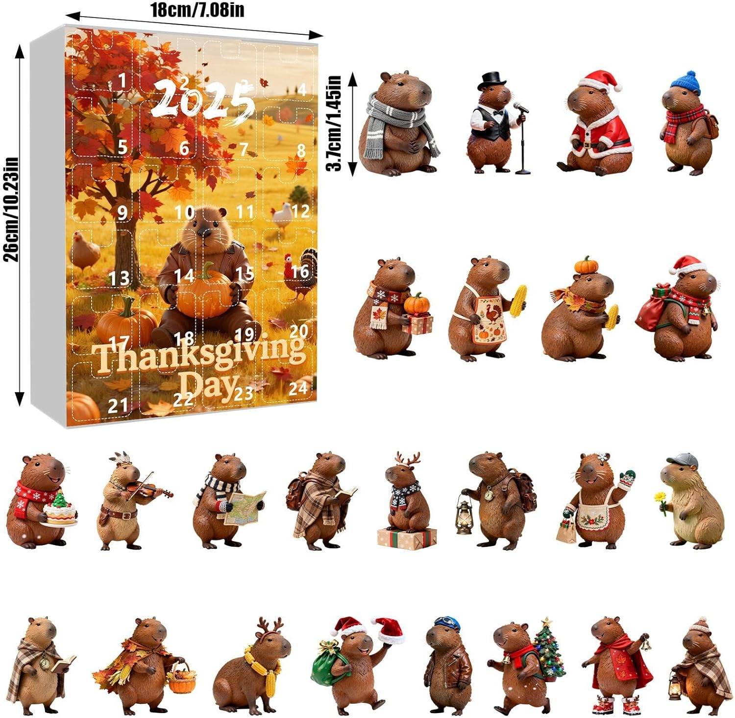 Calendario misterioso per il conto alla rovescia di 24 giorni con mini oggetti da collezione a sorpresa quotidiana per bambini e adulti - emozionante attività di rivelazione Lavorazione di alta qualità Materiali acrilici con amorevoli motivi di gratitudine per una gioia duratura Perfetto per bambini dai 6 anni in su Adatto sia agli adulti - attività ideale per il periodo prenatalizio Può essere utilizzato in molti modi all'interno e all'esterno - crea un'atmosfera accogliente a casa o in viaggio Regalo speciale per il Natale del Ringraziamento - Avvertenza: contiene piccole parti, non adatto a bambini di età inferiore a 3 anni