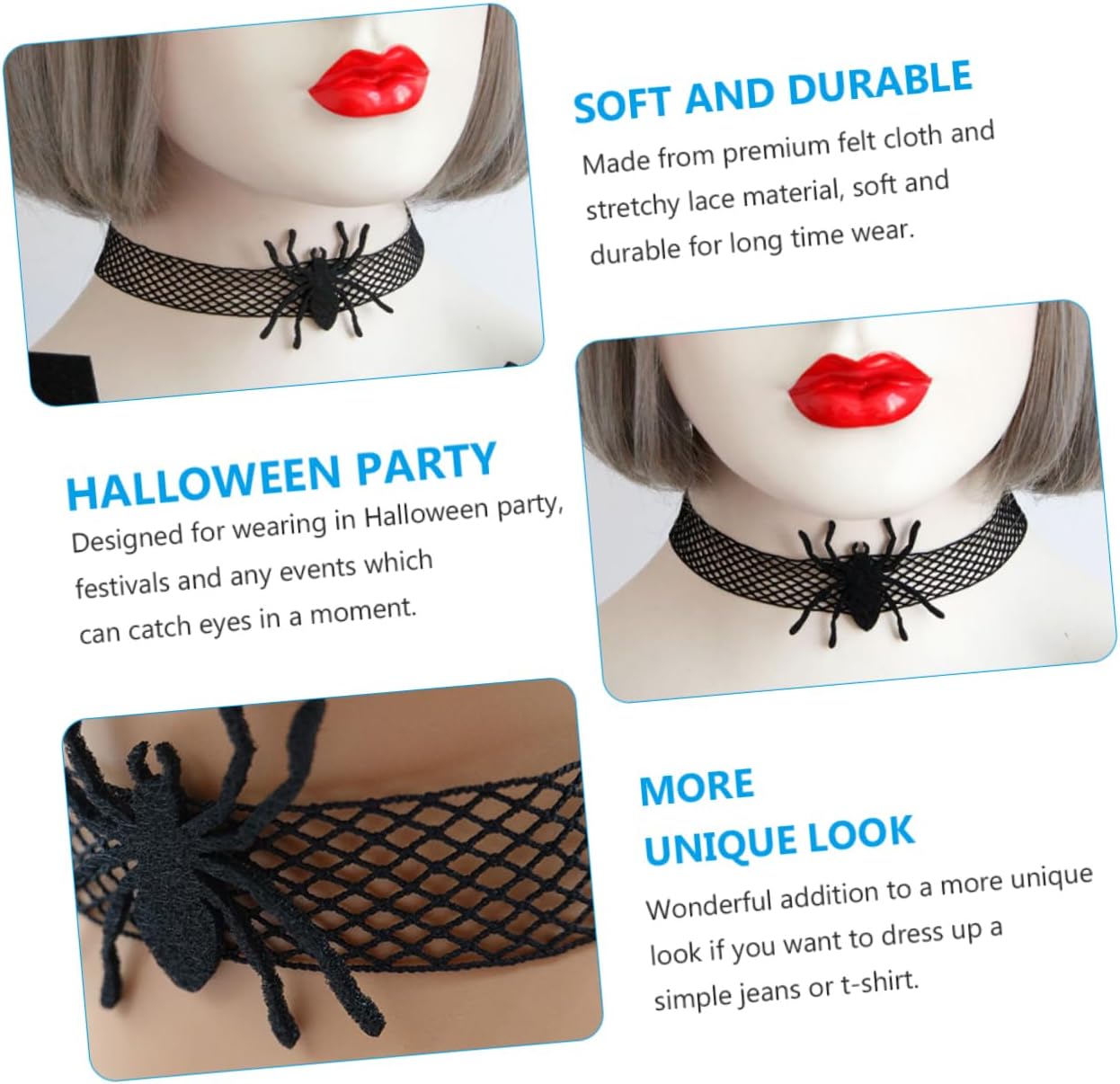 Contenuto della confezione: 2 collane con ragno. Caratteristiche: - Materiale: collana di Halloween in feltro e pizzo elastico. Dimensioni: 37,00 x 3,80 x 1,00 cm/14,54 x 1,49 x 0,39 pollici, collana in pizzo per Halloween. Colore: girocollo nero. Stile gotico, design a ragno, divertente e creativo per feste di Halloween, collare gotico ragno in pizzo. Realizzato in feltro e pizzo elastico, durevole e può essere indossato a lungo come collare a ragno per Halloween. Progettato per essere indossato a feste di Halloween, festival e altri eventi che attirano l'attenzione in un batter d'occhio. Collare in pizzo. – design molto unico e innovativo che ti fa diventare il centro del! Collana Halloween Meravigliosa aggiunta per un look più unico se si desidera ravvivare un semplice jeans o una maglietta di Halloween con un collare. Descrizione del prodotto: Collare in feltro e pizzo elastico per una lunga durata. Collana con ragno di Halloween con un design elegante e personale può renderti la più affascinante e .Collare in pizzo ragno gotico La collana ragno di Halloween può essere la scelta per feste di Halloween e altre decorazioni per occasioni speciali