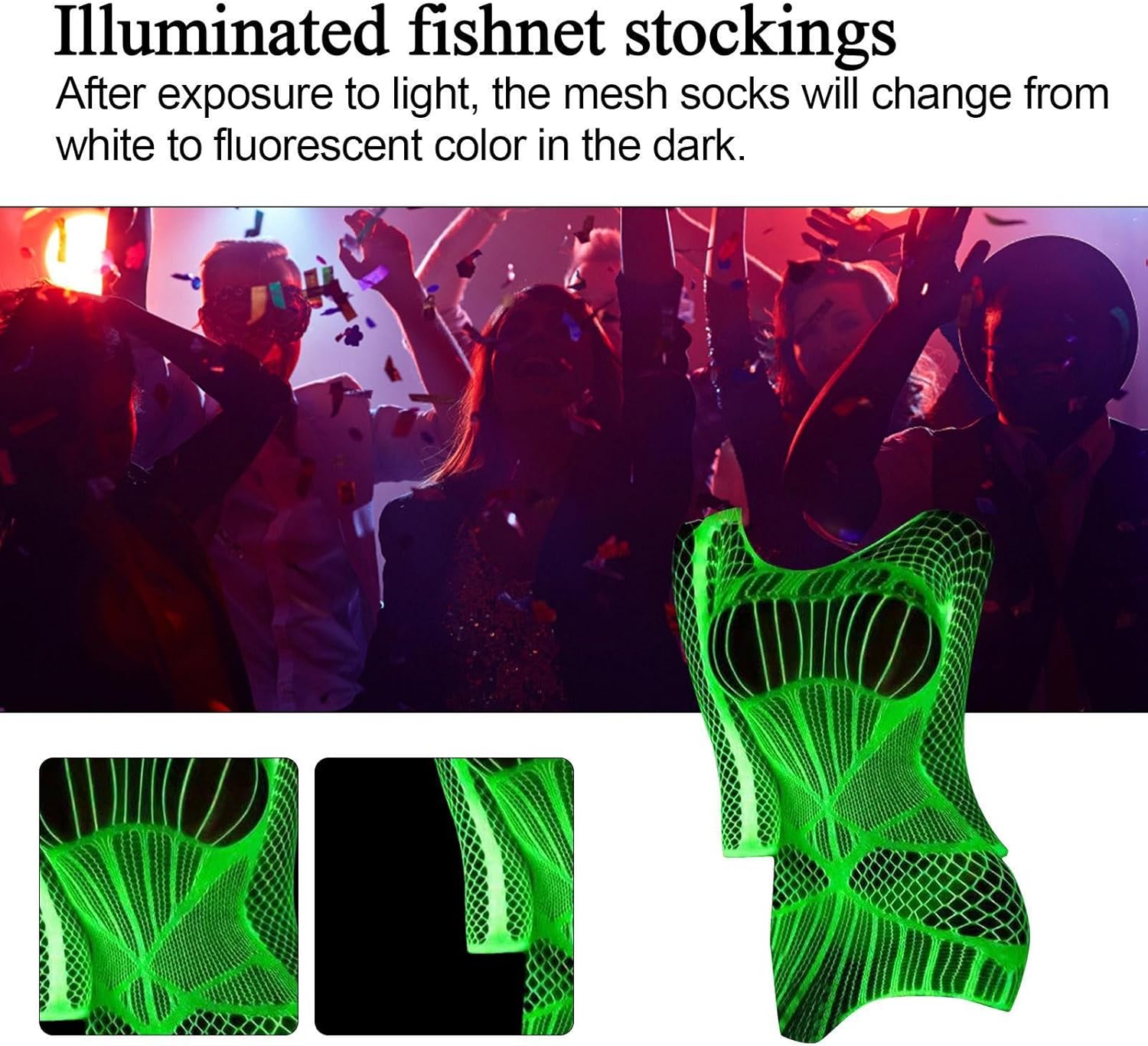 Calze a rete da donna Collant High Glow-In-The-Dark Socks | Leggings da donna a vita alta per feste cosplay Descrizione: La calza a rete da donna è realizzata in poliestere e può cambiare da bianco a fluorescente al buio quando esposta alla luce. Caratteristiche: 1. Rende le gambe più sottili e possono essere indossate in combinazione con gonne o pantaloncini. 2. Comode ed elastiche, le calze possono essere allungate per coprire le cosce. 3. Ideale per feste e club, come accessorio per abiti, tacchi alti e jeans con buco. Specifiche tecniche: Nome: calzini fosforescenti Materiale: poliestere. Taglia: taglia (elastico) Contenuto della confezione: 1 paio di calze fosforescenti. Nota: Maggiore è l'intensità e più lunga è l'esposizione, più visibile e duraturo è il colore.
