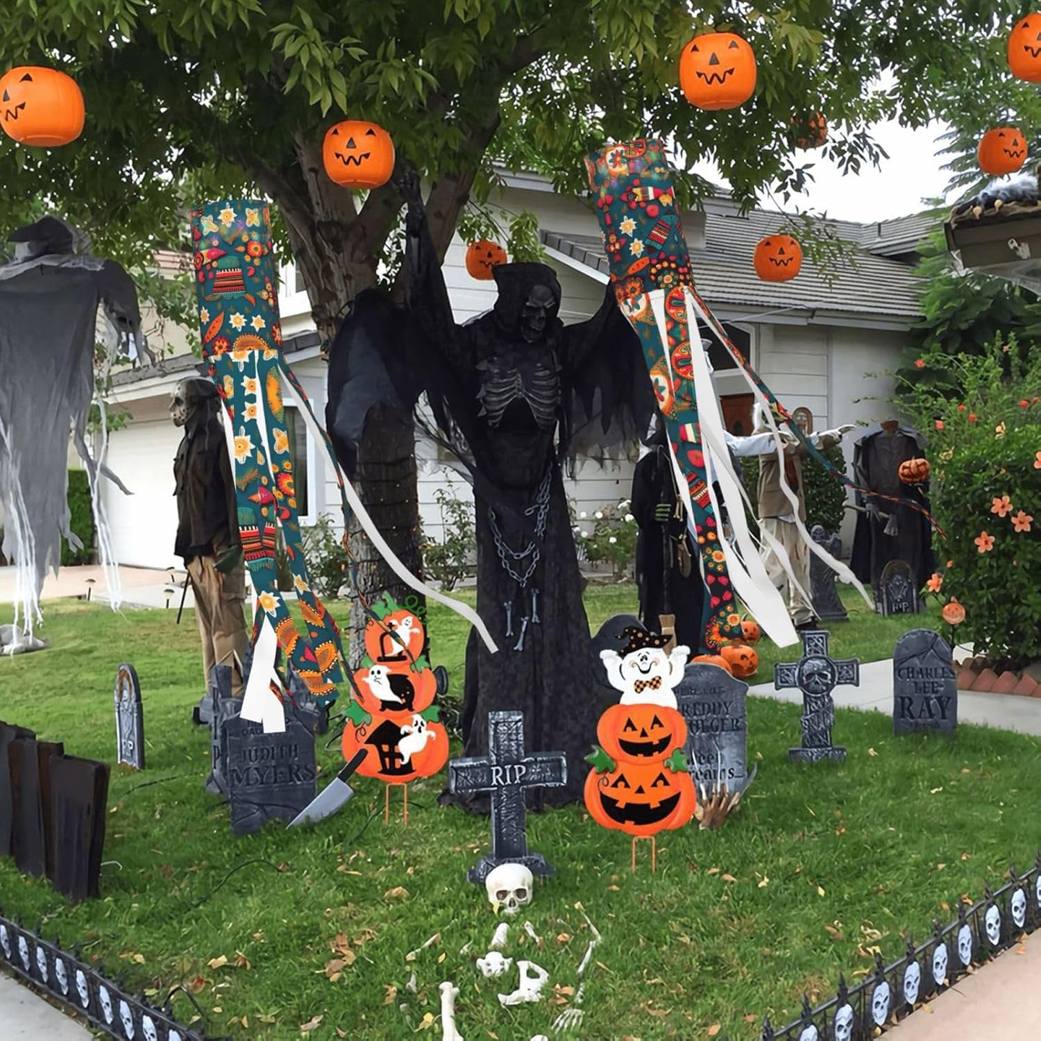 Realizzate con materiale leggero e arioso: le nostre calze a vento sono realizzate in poliestere leggero e svolazzante, progettate per un'asciugatura rapida e un volo ventilato, creando uno splendido display dinamico con le loro nove code. Ideali per tutte le feste: queste calze a vento sono perfette per Halloween, Natale e altre vacanze. Aggiungeranno un fascino accattivante a giardini, strade, parchi giochi, aperture di eventi e altro ancora. Struttura intelligente: misura 102 cm di altezza e 15,4 cm di larghezza, queste calze a vento hanno un'asta di supporto integrata e un connettore di tipo A sulla corda di nylon a tre lati lunga 40 cm per appenderlo in modo sicuro e facile. Illuminazione opzionale: scegli tra la nostra versione con una deliziosa stringa di luce a LED colorata per uno spettacolo notturno scintillante o la versione non illuminata per un elegante display diurno. Istruzioni per la cura: per mantenere il loro aspetto vivace, queste calze a vento devono essere lavate a mano e asciugate all'aria naturalmente. Si sconsiglia il lavaggio in lavatrice e la candeggina.
