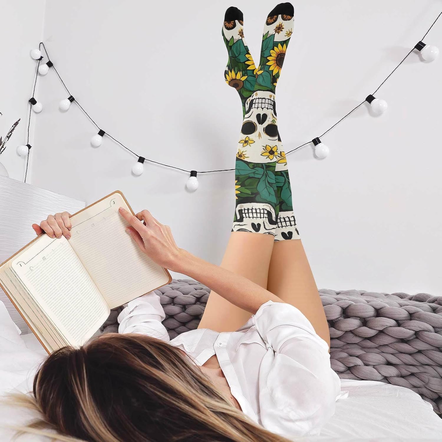 Dimensioni: i calzini alti al ginocchio da donna sono lunghi circa 59 centimetri dalla punta alla parte superiore ed elastici. È adatto per persone di 1,5 metri e oltre. Materiale: 93% nylon, 7% spandex. Questi calzini lunghi da donna hanno una consistenza altamente elastica e sono morbidi al tatto per un maggiore comfort. La superficie liscia e traspirante consente un'intera giornata di usura. Versatile: queste calze da donna in seta alte al ginocchio possono essere indossate in vari modi e possono essere indossate al ginocchio o piegate sotto il ginocchio, sia per tenerti al caldo, ma anche per mantenerti chic; i calzini alti in diversi colori e motivi sono molto utili per l'uso quotidiano e il cambiamento, abbastanza per molte occasioni. Caratteristiche: Questi paia di calzini alti da donna sono ben abbinati sia con scarpe che con stivali, rendendoli per la tua gonna o pantaloncini preferiti. Si adatta alla maggior parte delle stagioni. Design sopra il ginocchio: il design sopra il ginocchio dei calzini alti al ginocchio da donna non porta eleganza e sensualità, ma regola anche la forma delle gambe in una certa misura. Sia abbinato a una gonna corta o pantaloncini, può mostrare fascino incantevole.