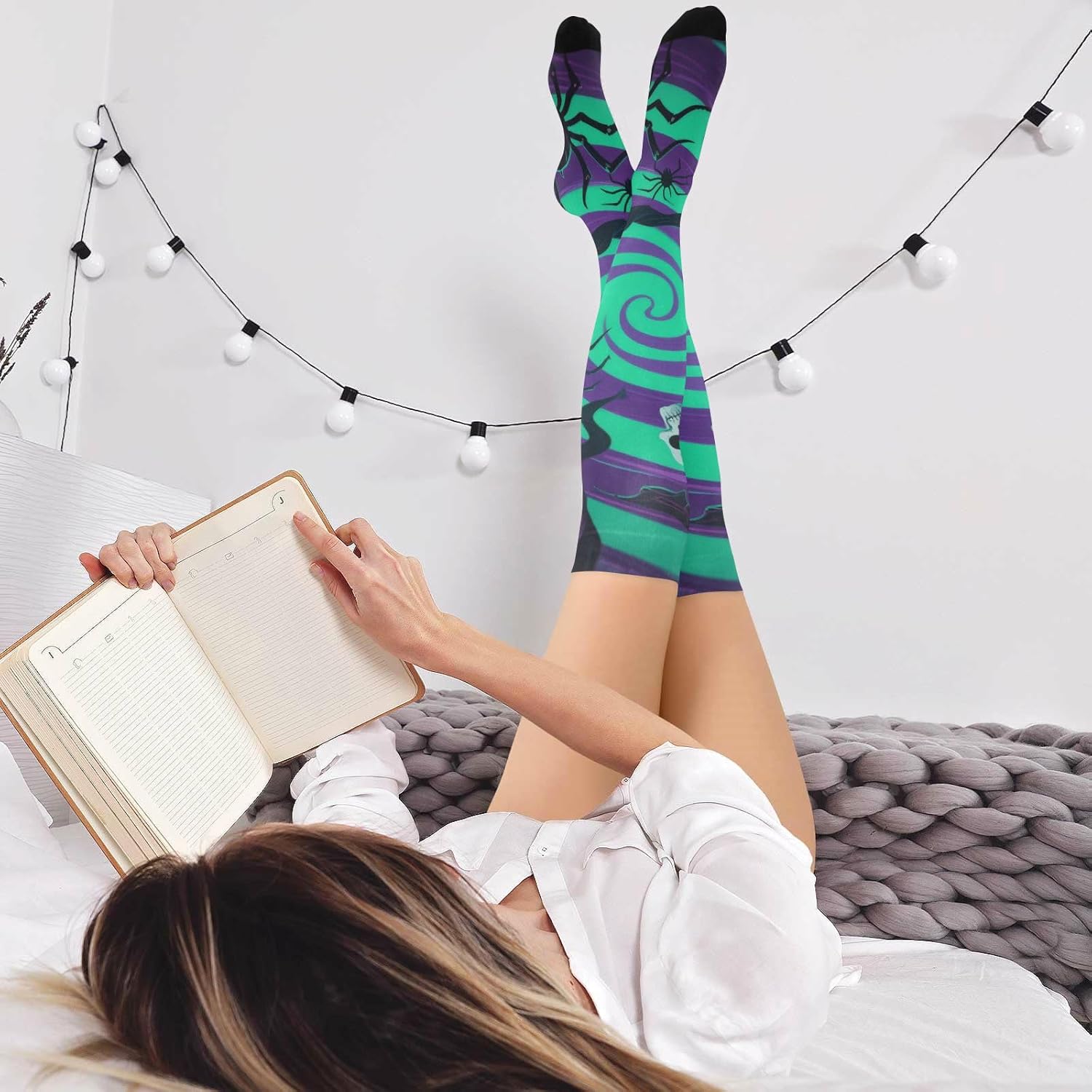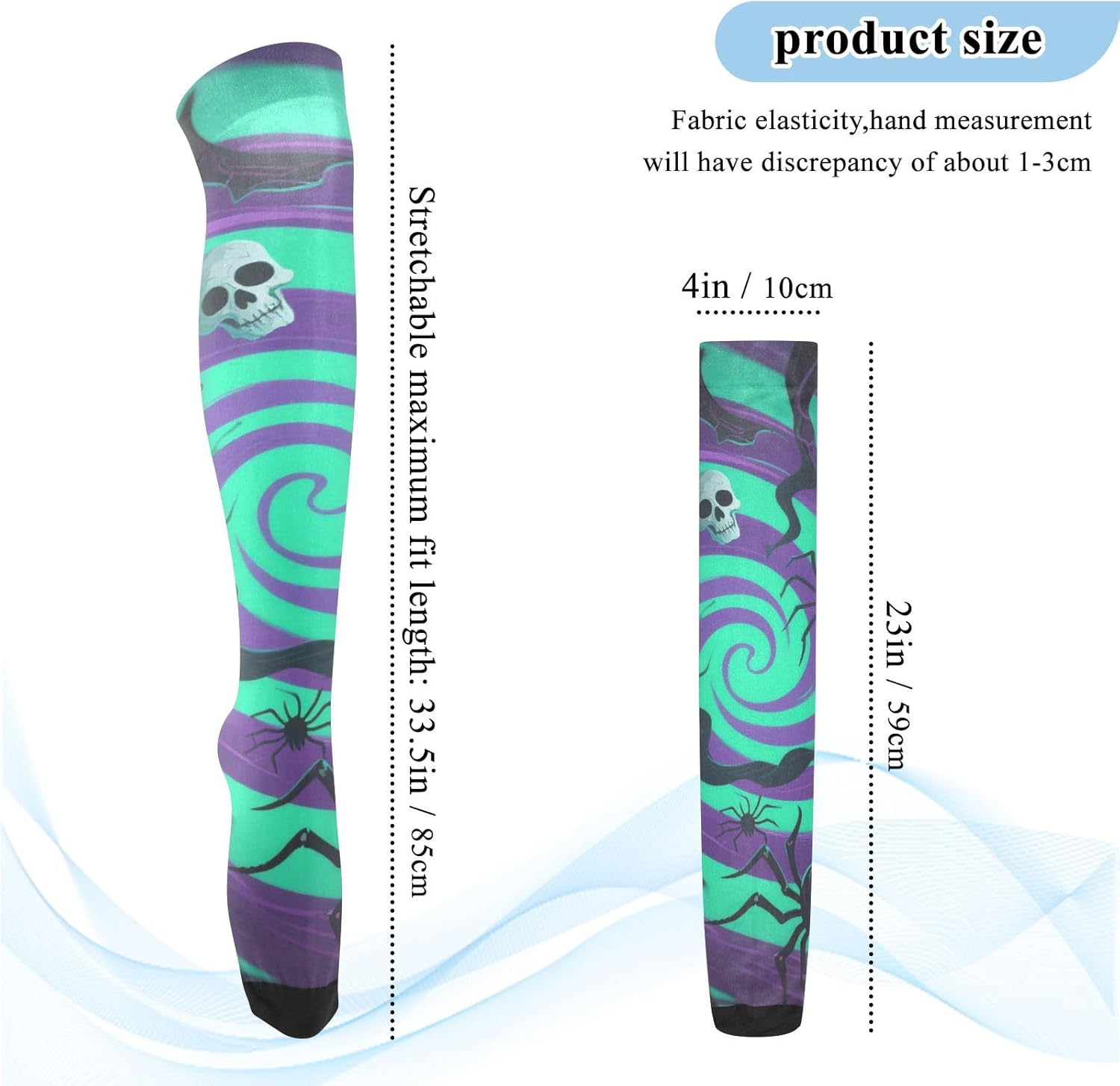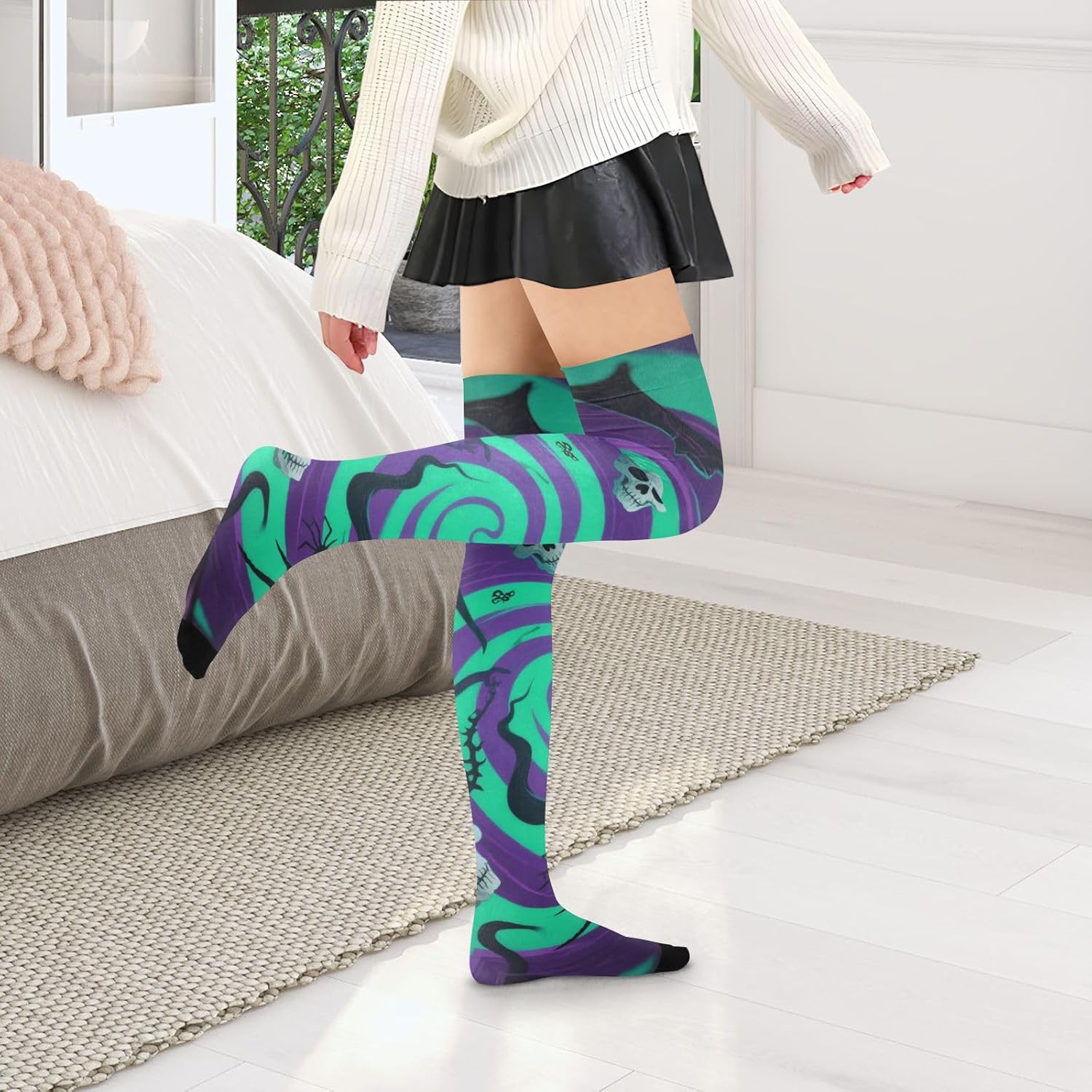 Buona elasticità: i nostri calzini alti da donna sono elastici e possono rimanere in posizione per un giorno. La dimensione piatta è di 10,2 x 58,4 cm, adatta per 1,5 metri (59 pollici) e oltre. Traspirante e assorbente, può coprire polpacci e caviglie durante l'esercizio fisico. Materiale: i calzini lunghi da donna sono realizzati con materiali di qualità, 93% nylon e 7% spandex, comodi e traspiranti, lisci e delicati sulla pelle, adatti per quattro stagioni. Che si tratti di inizio primavera, autunno fresco, inverno freddo o una casa climatizzata in estate, queste calze scalderanno sempre le gambe e aggiungeranno fascino al tuo fascino. Un must have nel guardaroba di ogni donna: questo è un accessorio elegante per la donna avventurosa e multi-tasking. Questi eleganti pezzi si estendono dal ginocchio al ginocchio e fino al centro della coscia. È per vestirsi casualmente, formalmente, per lavoro, matrimoni, feste, cene e altro ancora. È altrettanto elegante in gonne, abiti o pantaloncini. Eleganti, chic e confortevoli: i nostri calzini sopra il ginocchio da donna sono conformi alle gambe mantenendoti comodo e fresco per tutto il giorno. Abbinali a scarpe da ginnastica, décolleté, tacchi o stivali alti fino alla coscia per un look lusinghiero e sexy. Vestito per tutte le stagioni, civettuolo ma elegante. Design sopra il ginocchio: il design sopra il ginocchio dei calzini da donna non conferisce eleganza e sensualità, ma altera anche la forma delle gambe in una certa misura. Sia abbinato a una gonna corta o pantaloncini, può rivelare fascino affascinante.
