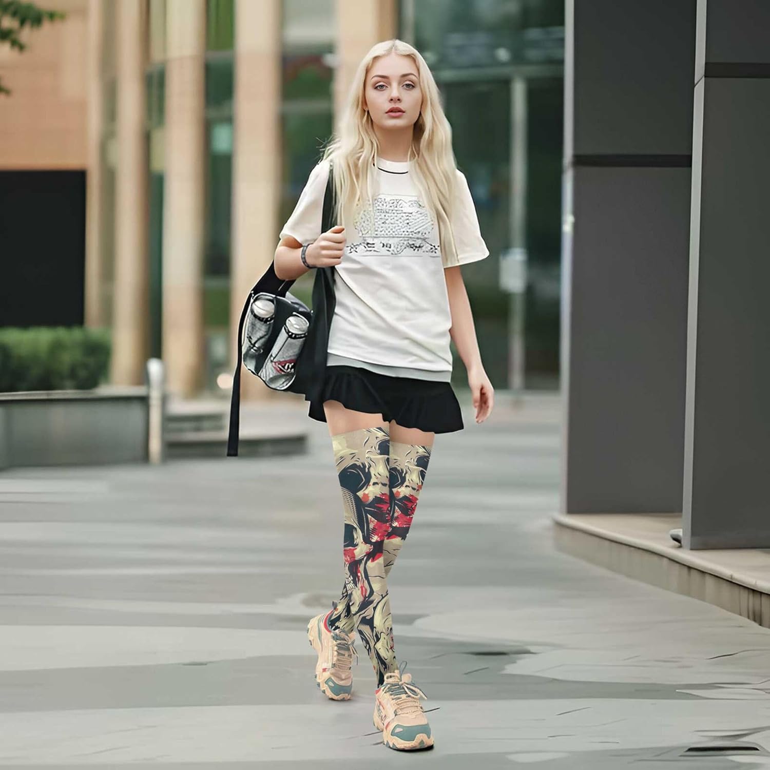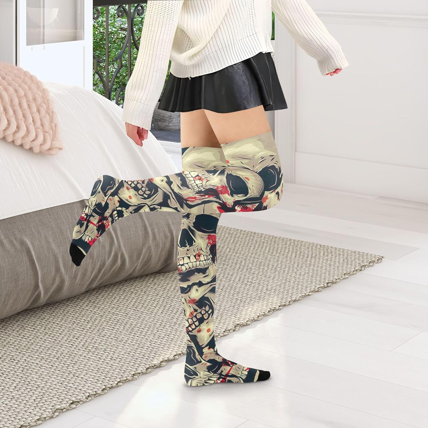 le calze con stampa portano energia vibrante e stile versatile al tuo guardaroba. Realizzati in una miscela liscia e ad alta elasticità di 93% nylon e 7% spandex, simpatici calzini alti alla coscia da donna si sentono leggeri sulla pelle offrendo comfort affidabile per tutto il giorno e ritenzione della forma. divertenti collant floreali femboy calzini sono progettati per persone con un'altezza di 1,5 metri (59 pollici) e oltre, offrendo una vestibilità flessibile taglia unica che si adatta alle gambe con facilità. Grazie alla loro eccellente elasticità, le calze da donna abbracciano le gambe in modo sicuro, rimanendo in posizione senza rotolare giù o arricciarsi. Ciò che distingue le calze divertenti da donna è la loro capacità di aggiornare istantaneamente qualsiasi outfit. Caratterizzati da stampe multicolore a gamba intera, i calzini alti da donna mescolano divertimento e moda, rendendoli adatti a tutto, dalle corse casual al caffè alle serate eleganti. Abbina graziose calze alte da donna con gonne, stivali, maglioni oversize o tuniche per infinite possibilità di stile. Progettati per primavera, autunno e inverno, graziosi calzini alti sopra il ginocchio mantengono le gambe comode aggiungendo un tocco visivo. Che tu sia appassionato di stampe animalier, grafica moderna o temi stagionali, le calze sopra il ginocchio rendono il tuo outfit pop offrendo comfort che dura dalla mattina alla sera.