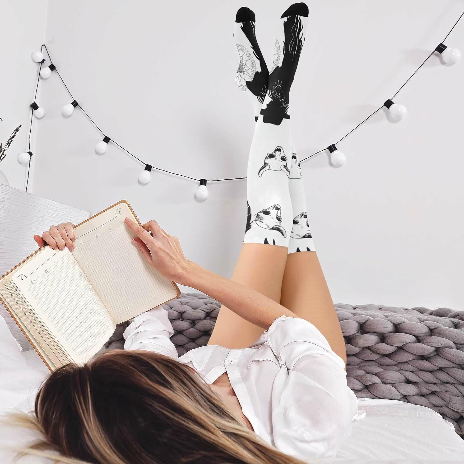 Dimensioni più adatte: dimensioni piastrellate: 10,2 x 58,4 cm (elevata elasticità, ci sarà un errore di 1-3 cm). Poiché i calzini morbidi da donna rimangono elastici, sono di taglia unica e si adattano alla maggior parte delle figure! Materiale: le calze sopra il ginocchio da donna sono realizzate con materiali di qualità, 93% nylon e 7% spandex, comode e traspiranti, lisce e delicate sulla pelle, adatte per quattro stagioni. Che si tratti di inizio primavera, autunno fresco, inverno freddo o una casa climatizzata in estate, queste calze scalderanno sempre le gambe e aggiungeranno fascino al tuo fascino. Indossare in diversi modi: i calzini alti da donna possono essere utilizzati come calzini alla coscia, possono anche essere piegati in calze sopra il ginocchio e possono essere utilizzati come calzini al ginocchio. Diversi modi di vestirsi, stili diversi! Caratteristiche: I nostri calzini alti da donna sono leggeri e di lunga durata, flessibili e traspiranti, morbidi e confortevoli, secondo diversi stili di design, possono essere applicati per uscire, feste, casa, sport e altre occasioni, possono essere abbinati a una varietà di stili di usura. Design sopra il ginocchio: il design sopra il ginocchio delle calze al ginocchio da donna non porta eleganza e sensualità, ma regola anche la forma delle gambe in una certa misura. Sia abbinato a una gonna corta o pantaloncini, può mostrare fascino incantevole.