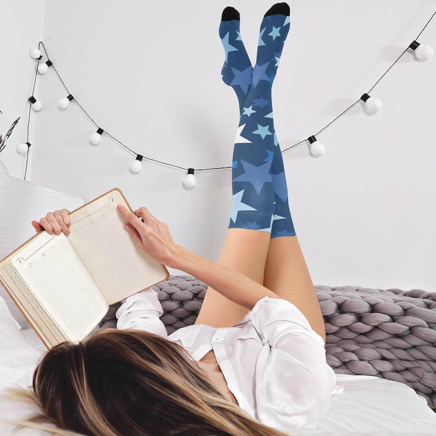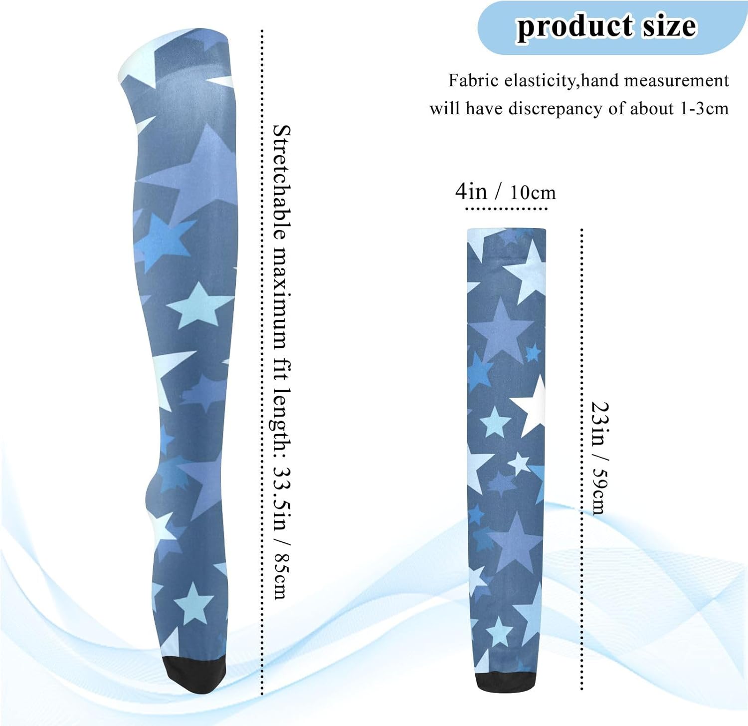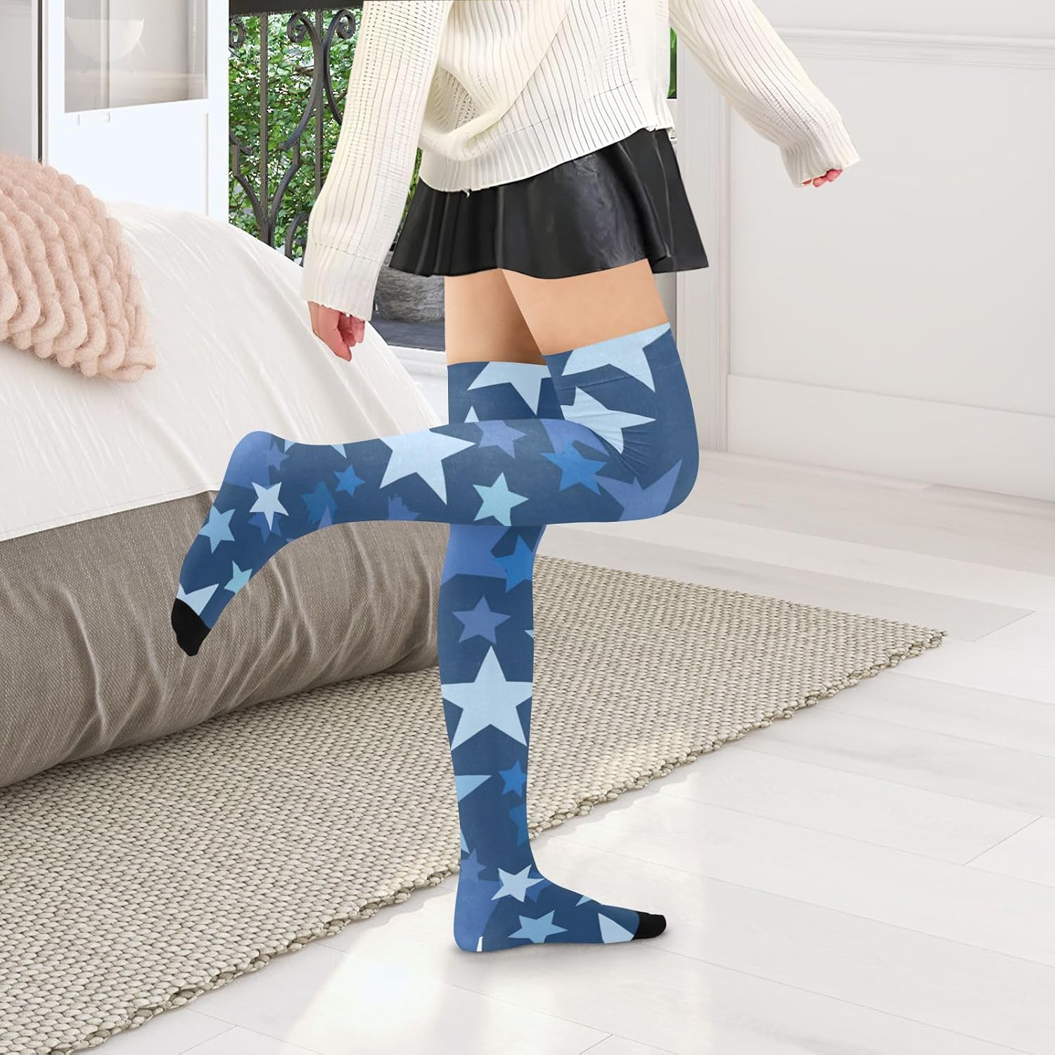 Dimensioni: i calzini tubolari da donna sono lunghi circa 59 centimetri dalla punta alla parte superiore ed elastici. È adatto per persone di 1,5 metri e oltre. Materiale: 93% nylon, 7% spandex. Queste calze da donna alte al ginocchio hanno una consistenza altamente elastica e sono morbide al tatto per un maggiore comfort. La superficie liscia e traspirante consente un'intera giornata di usura. Indossare in diversi modi: i calzini alti alla coscia per donne alte possono essere utilizzati come calzini alla coscia, possono anche essere piegati in calze sopra il ginocchio e possono essere utilizzati come calzini al ginocchio. Diversi modi di vestirsi, stili diversi! Eleganti, chic e confortevoli: i nostri calzini alti al ginocchio da donna sono conformi alle gambe mantenendoti comodo e fresco per tutto il giorno. Abbinali a scarpe da ginnastica, décolleté, tacchi o stivali alti fino alla coscia per un look lusinghiero e sexy. Vestito per tutte le stagioni, civettuolo ma elegante. Design sopra il ginocchio: il design sopra il ginocchio dei calzini da donna non porta eleganza e sensualità, ma regola anche la forma delle gambe in una certa misura. Sia abbinato a una gonna corta o pantaloncini, può mostrare fascino incantevole.