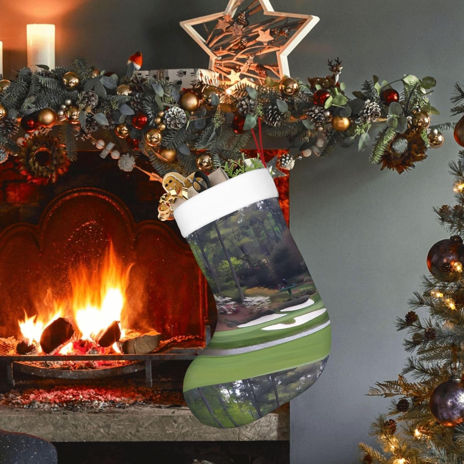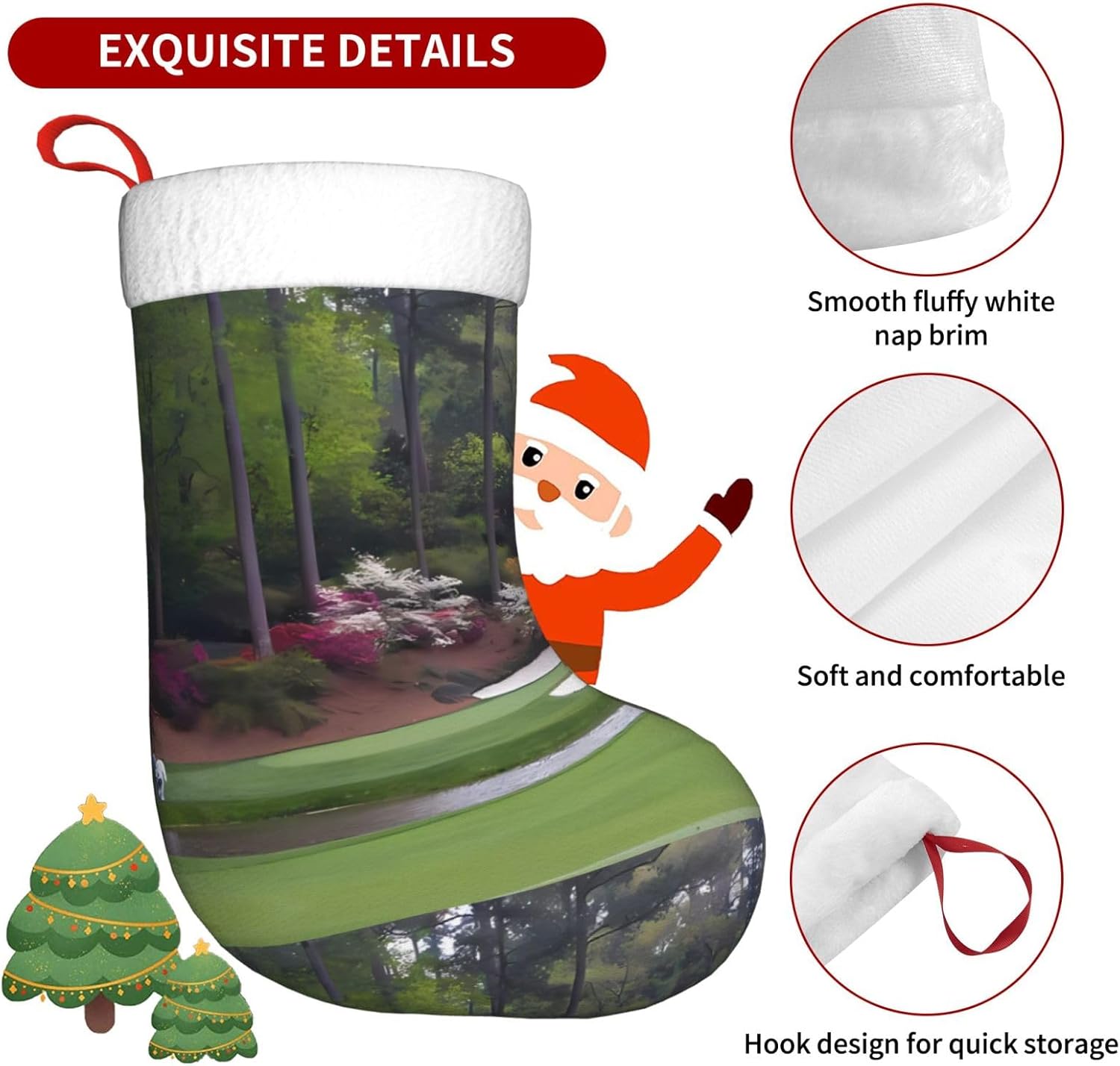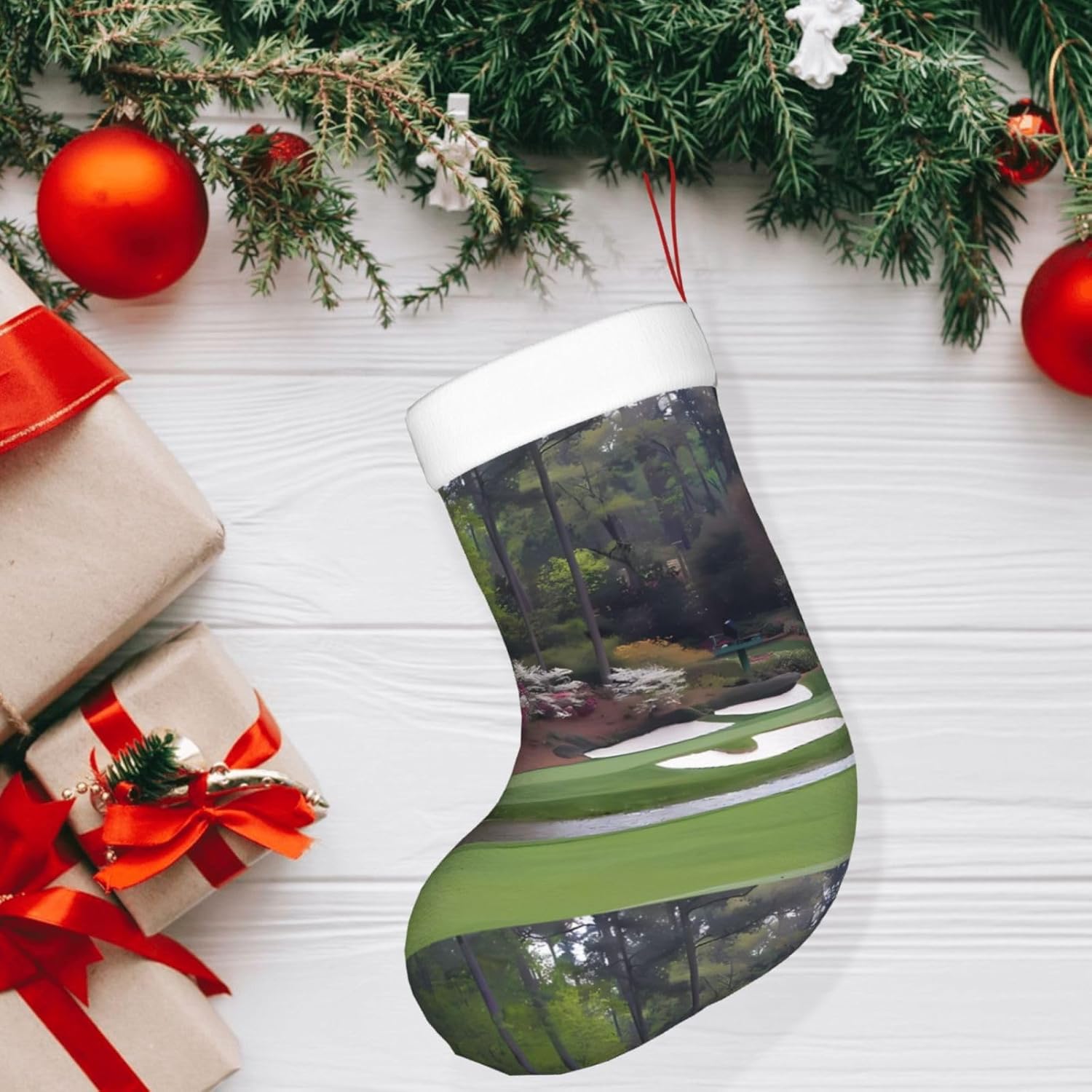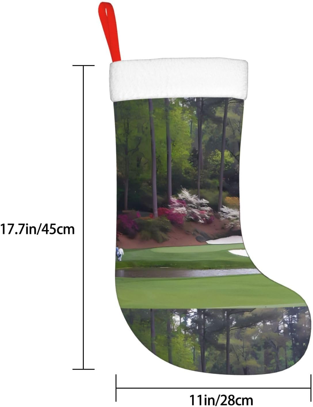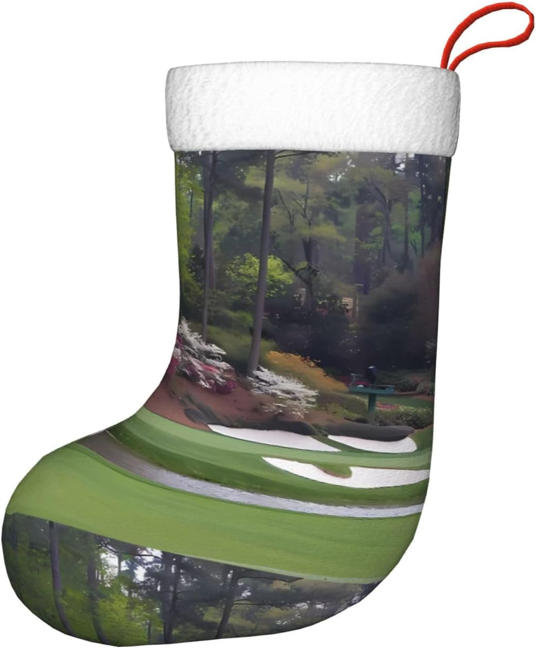 AEKGOHP Bellissimo motivo campo da golf con stampa natalizia: stampa su tutta la superficie. Materiale: 100% poliestere. \r Caratteristiche del prodotto: realizzato in tessuto felpato, garantisce un uso duraturo e mantiene colori vivaci. I polsini sono realizzati in morbida flanella soffice per una sensazione confortevole al tatto. Con squisita fattura, promettono anni di divertimento. Aggiungono un tocco festivo e migliorano la vita quotidiana. Durante Halloween, Natale e Capodanno, porta un po 'di allegria festiva con questo divertente accessorio. Riempilo con piccoli regali e dolcetti come carte regalo, caramelle, barrette di cioccolato e piccoli giocattoli. Utile per: adatto per Natale, Halloween, saldi, promozioni, cerimonie annuali, eventi comuni, spettacoli teatrali, riunioni di festa e altro ancora. Possono essere utilizzati anche per decorare uffici, alberi di Natale, caminetti e persino scrivanie. Quantità di contatto: 1 pezzo. I polsini hanno una cinghia per appenderlo. Istruzioni di lavaggio: lavabile a mano o in lavatrice. Non candeggiare.