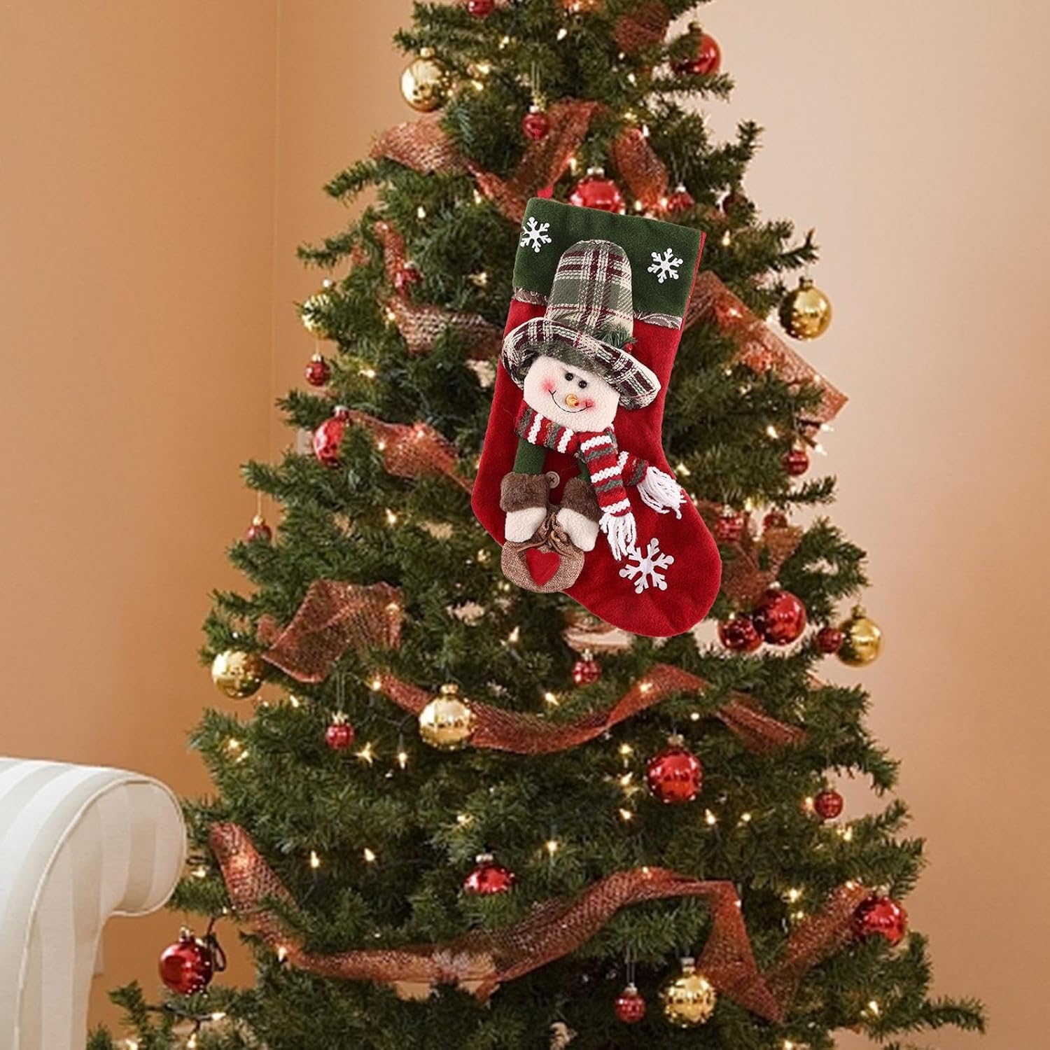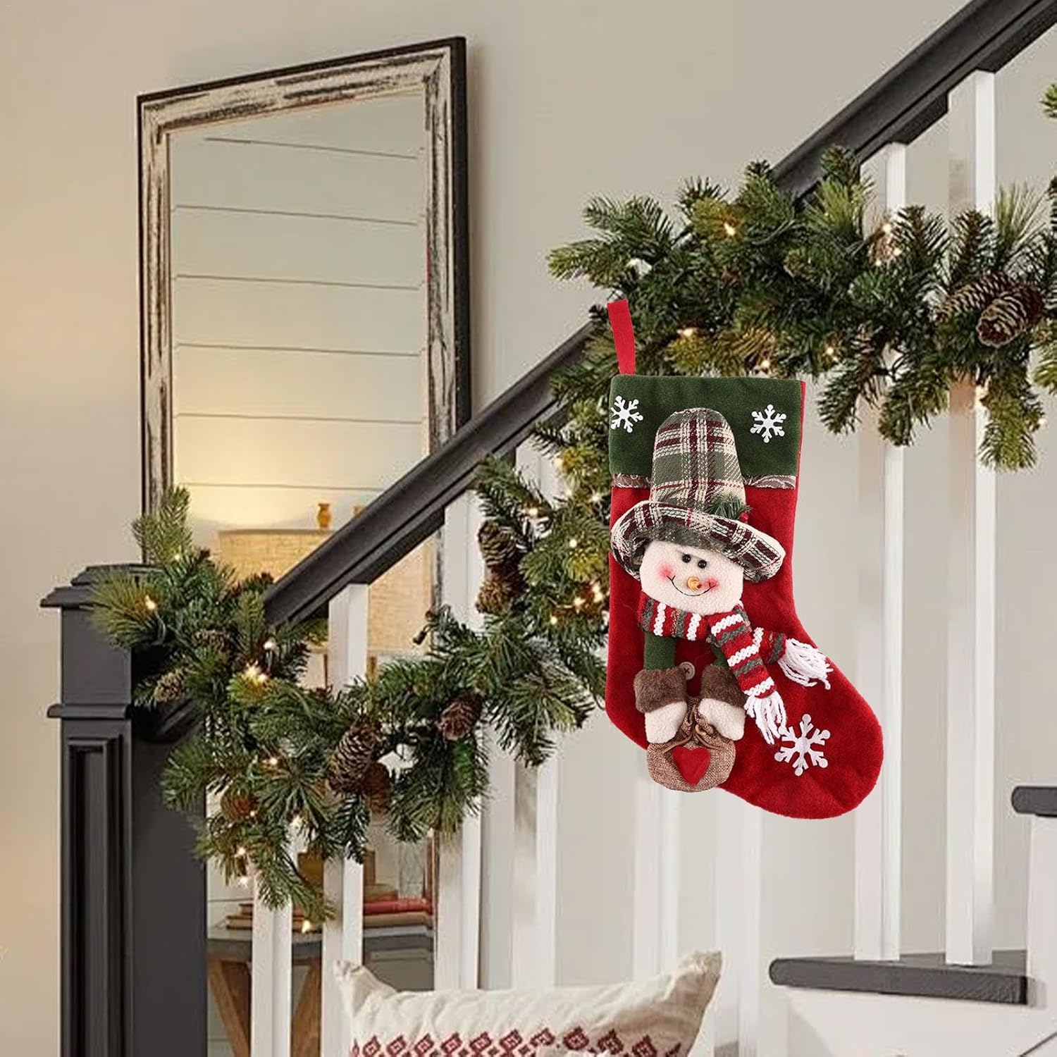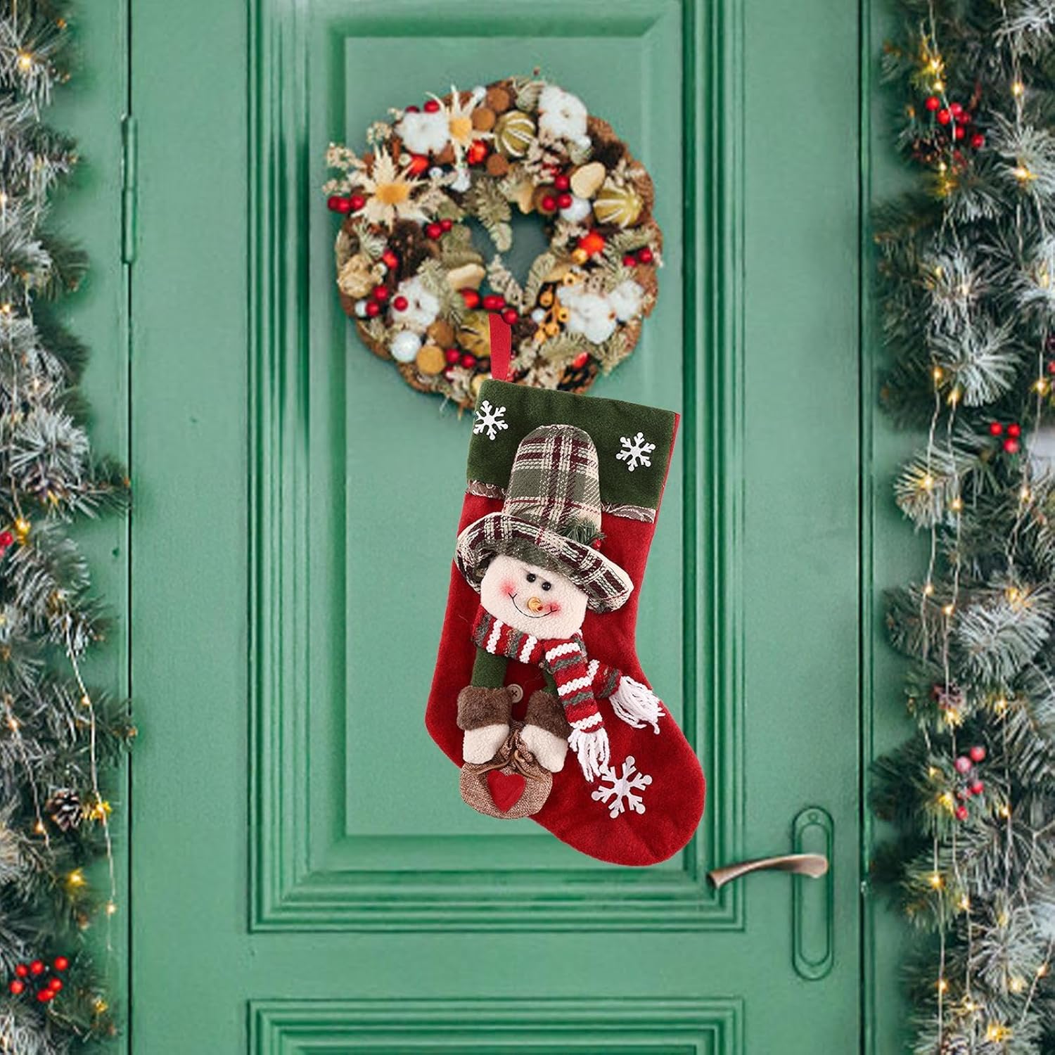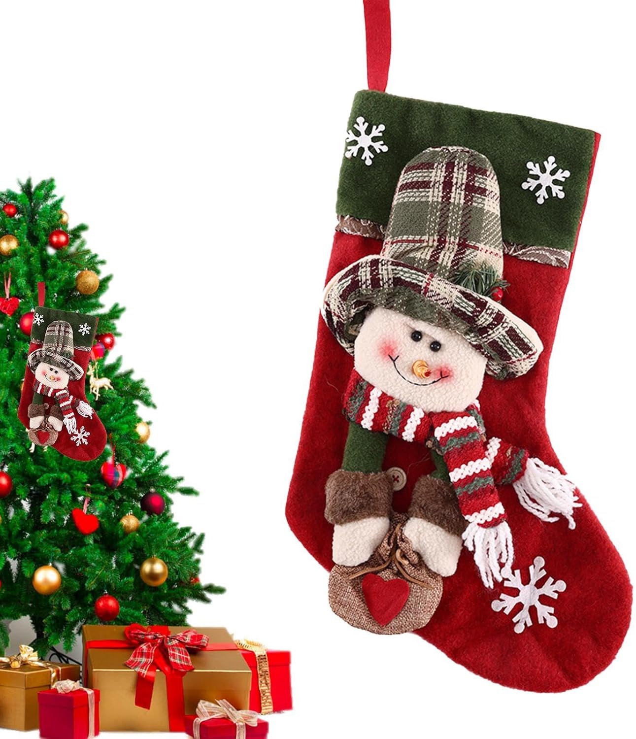 Spazio eccessivo: queste calze natalizie possono ospitare una varietà di regali, garantendo che ci sia abbastanza spazio per tutti i tuoi regali natalizi, rendendo le tue celebrazioni ancora più allegre. Look festivo: questa calza natalizia presenta un design adorabile che trasuda spirito natalizio e migliora le tue decorazioni con una dose di fantasia e calore. Un must per ogni celebrazione festiva Migliora la relazione: rafforza il legame d'amore tra i membri della famiglia; È un modo meraviglioso per celebrare la gioia della famiglia e creare ricordi preziosi. Facile da usare: crea un'atmosfera accogliente e festosa con le nostre calze di Natale. Dotate di un robusto anello per appenderle, puoi appenderle ovunque per aggiungere facilmente un tocco di allegria natalizia. Regalo ideale: aggiungi ulteriore brillantezza alle festività natalizie con queste calze natalizie, un regalo perfetto per la famiglia e gli amici. Il design elaborato e la lavorazione di alta qualità lo rendono una sorpresa ideale per i tuoi cari. Porta lo spirito festivo con queste splendide calze