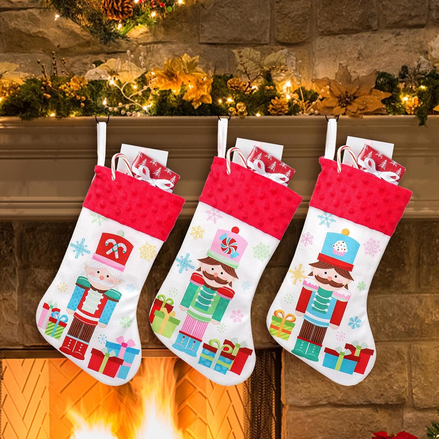 Decorative e funzionali: le calze natalizie hanno un duplice scopo combinando un'affascinante estetica natalizia con un pratico contenitore per le prelibatezze. Completano opzioni espositive versatili come caminetti e alberi, offrendo vantaggi sia decorativi che funzionali. Perfetto per riporre piccoli regali e decorare festosamente la tua casa con un mix di stile e utilità. Longevità e durata: queste calze natalizie per la famiglia sono realizzate in robusto tessuto di velluto che fornisce un'eccezionale resistenza del tessuto per un uso ripetuto durante le festività natalizie e molti anni di celebrazioni festive. Il materiale resiste all'usura e mantiene la sua qualità, quindi le calze possono essere utilizzate in modo affidabile nelle tue tradizioni natalizie senza perdere la durata e portare gioia alle vacanze. Conservazione funzionale per le feste: con versatilità nel design, queste calze natalizie fungono sia da elementi decorativi che da pratici contenitori per caramelle e giocattoli. Aggiungeranno facilmente l'atmosfera di qualsiasi ambientazione natalizia e sono ideali per conservare piccoli regali e dolcetti. Grazie alla loro forma funzionale offrono un elegante spazio per riporre caramelle e giocattoli e danno ad ogni celebrazione un tocco festoso speciale. Simpatico design dello schiaccianoci: questi calzini natalizi con l'adorabile motivo dello schiaccianoci aggiungeranno immediatamente allegria festosa alla tua casa e miglioreranno lo spirito natalizio con il loro allegro fascino visivo. Come deliziosa decorazione stagionale, arricchiscono l'atmosfera natalizia in ogni stanza e rendono questi calzini natalizi un must per le vacanze. Il design a schiaccianoci delle calze natalizie crea un ambiente accogliente e invitante, ideale per la tradizionale condivisione perfetta delle vacanze: con un set da 3 progettato per calze natalizie grandi, famiglie e amici possono facilmente condividere e sfruttare l'idoneità per regali di gruppo. Ciò arricchisce l'esperienza festiva con ricordi duraturi attraverso attività condivise come riempire e scambiare le calze. Le calze di Natale sono ideali per le riunioni di Natale e aiutano a mantenere le usanze tradizionali diffondendo gioia e connessione ovunque