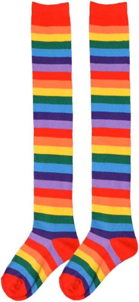 Calze lunghe multicolore a righe arcobaleno da donna per carnevale sopra il ginocchio calze per cosplay costume da festa Caratteristiche: Con cotone acrilico, delicato sulla pelle, morbido e confortevole al tatto, traspirante, taglia unica adatta per donne e ragazze. Lunghezza sopra il ginocchio, stampa a strisce colorate arcobaleno, design alla moda e classico ti faranno sembrare alla moda. Si adattano meravigliosamente senza stringere in modo poco lusinghiero e hanno elastico nella parte superiore per evitare che cadano. Adatto per cosplay, feste di Halloween, attività atletiche, sport, scuola, uso quotidiano, da abbinare a vestiti, pantaloncini, gonne e così via. Lascia che la tua personalità risplenda mentre indossi con sicurezza questi calzini luminosi e alla moda. Sii pronto a fare una grande impressione con le tue scelte di moda. Specifiche tecniche: Componente: cotone acrilico. Taglia unica: lunghezza: 53 cm. Colore opzionale: Red Rainbow 1, viola, rosa, blu scuro, arcobaleno rosso 2, colorato, giallo, nero Quantità: 1 paio (2 pezzi). La confezione include: 1 paio (2 pezzi) di calzini lunghi. Nota: Si prega di considerare un margine di errore di 1-3 cm dovuto alla misurazione Si prega di assicurarsi che non sia un problema prima di effettuare l'ordine. A causa delle differenze tra i diversi monitor, l'immagine potrebbe non riflettere esattamente il colore dell'articolo.