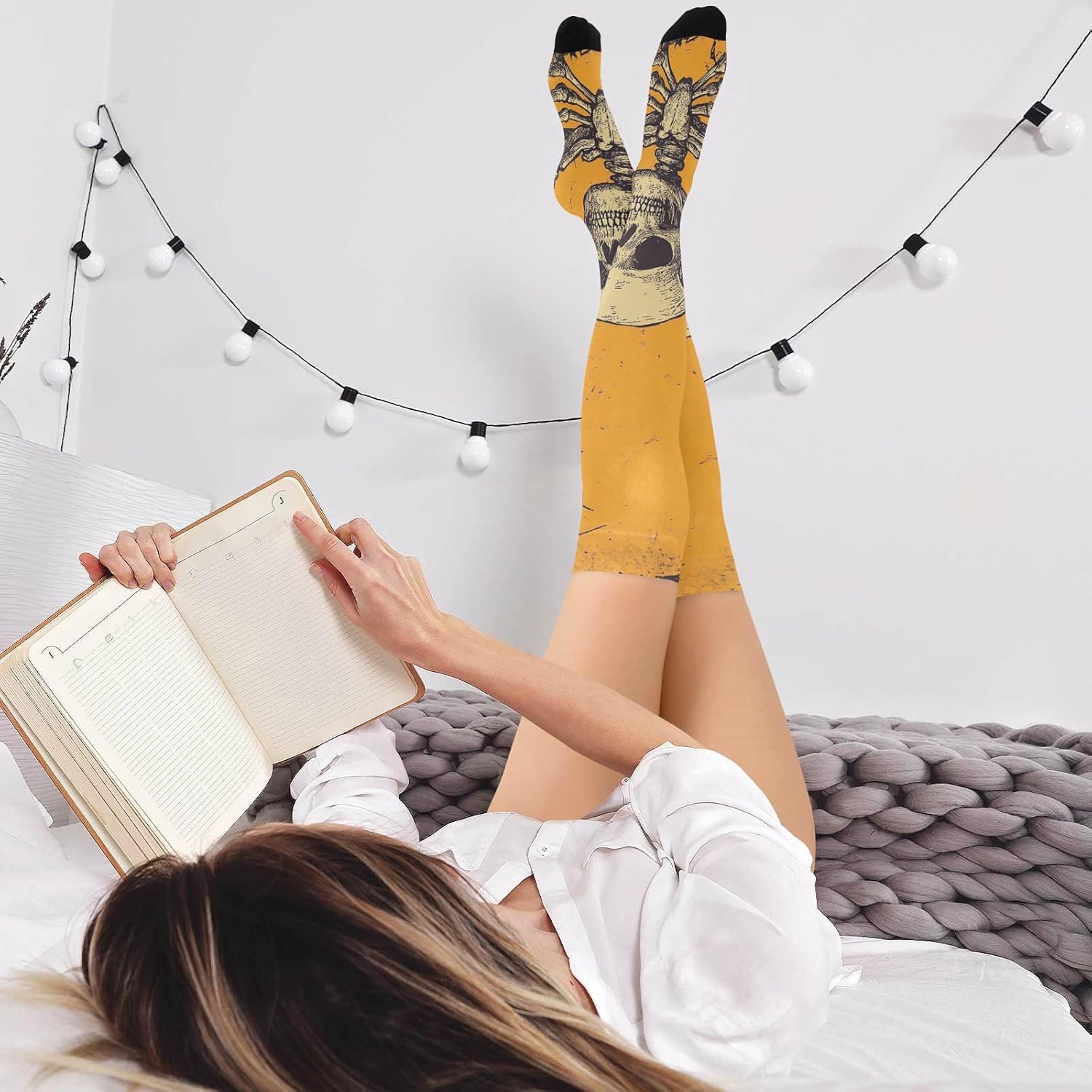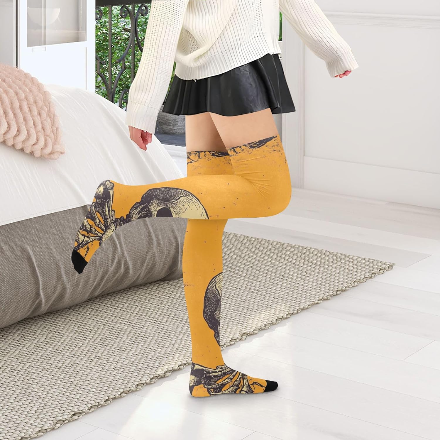 Dimensioni più adatte: dimensioni piastrellate: 10,2 x 58,4 cm (elevata elasticità, ci sarà un errore di 1-3 cm). Poiché le calze alte da donna rimangono elastiche, sono di 1 taglia e si adattano alla maggior parte delle figure! Morbidi e traspiranti: le calze da donna sopra il ginocchio sono realizzate in 93% nylon e 7% spandex, comode, morbide, leggere e traspiranti Versatile: i nostri calzini da donna sono adatti per la maggior parte delle attività sportive e per l'uso quotidiano. Possono essere utilizzate come calze per cosce, polpacci e calzini per equipaggio. Il buon accessorio da abbinare alle tue scarpe preferite con la maggior parte del tuo abbigliamento quotidiano. Caratteristiche: I nostri calzini da donna sono leggeri e di lunga durata, flessibili e traspiranti, morbidi e confortevoli, secondo diversi stili di design, possono essere applicati per uscire, feste, casa, sport e altre occasioni, possono essere abbinati a una varietà di stili di usura. Design sopra il ginocchio: il design sopra il ginocchio dei calzini sopra il ginocchio da donna non porta eleganza e sensualità, ma regola anche la forma delle gambe in una certa misura. Sia abbinato a una gonna corta o pantaloncini, può mostrare fascino incantevole.