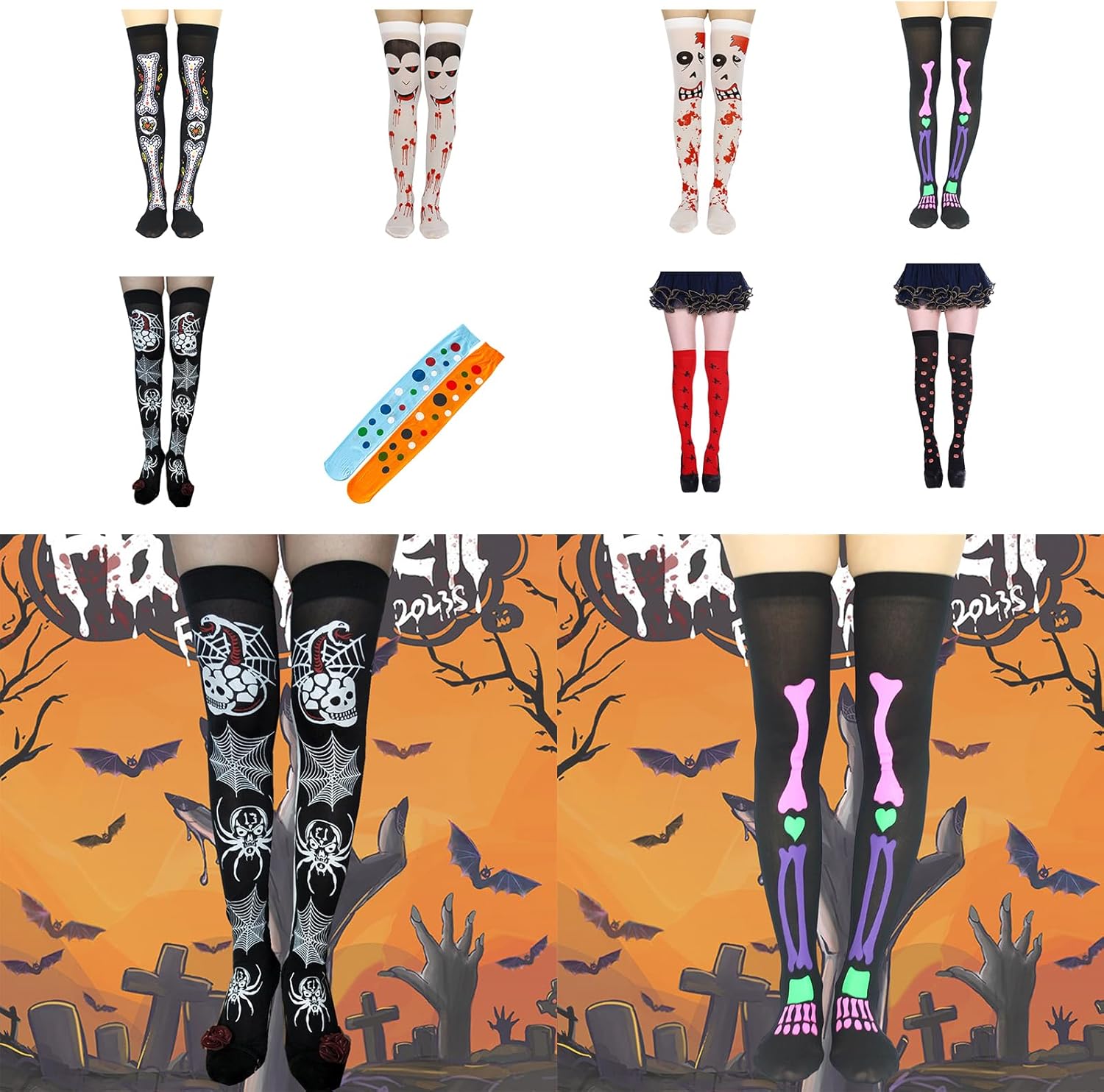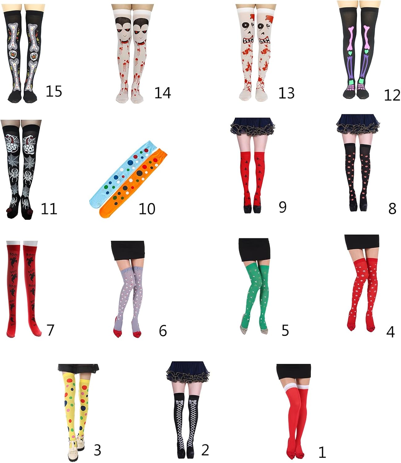 Calze lunghe da donna al ginocchio con motivo a fantasia, per Halloween, calze alte al ginocchio per gonna Caratteristiche: Realizzate in poliestere, queste calze sono comode da indossare e facili da indossare e da togliere. Design: calzini alti alla coscia, progettati con diversi motivi a tema Halloween, ti consentono di abbinarli ai tuoi abiti, o puoi anche condividere con la tua famiglia e Si distingue alle feste di Halloween con questi divertenti calzini alti al ginocchio con una stampa scheletrata. per donne e ragazze che vogliono aggiungere un tocco di spirito di Halloween ai loro outfit. Che si tratti di una festa di Halloween, una riunione a tema, un evento cosplay o spettacoli teatrali, questi calzini alti al ginocchio aggiungeranno un tocco di divertimento ed eccitazione ai tuoi outfit. Queste calze per Halloween sono disponibili solo in dimensioni standard, con una buona elasticità, adatte per la maggior parte delle circonferenze delle gambe, facili da abbinare a diverse gonne, abbigliamento da vacanza o altri stili, è un buon per l'abbigliamento casual quotidiano. Specifiche tecniche: poliestere. Modelli 1, 2, 3, 4, 5, 6, 7, 8, 9, 10, 11, 12, 13, 14, 15. Taglia Taglia cinese, seguire la tabella delle taglie per selezionare si prega di Taglia per lunghezza del piede: 22,5-25 cm. Adatto per scarpe di taglia 35-40 La confezione include: 1 paio di calzini da donna. Nota: Considerare un margine di errore di 1 mm dovuto alla misurazione manuale. A causa della differenza tra i diversi monitor, l'immagine potrebbe non riflettere esattamente il colore dell'articolo.