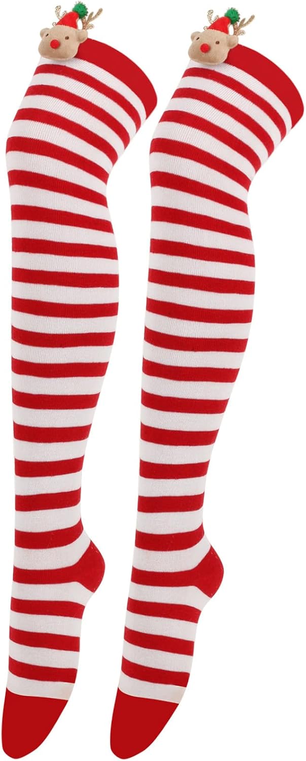 Facile da indossare e aggiunge più colori per il tuo abbigliamento quotidiano o costume speciale. Adatto per Natale, feste di Halloween, feste cosplay, balli studenteschi, qualsiasi festival o vita quotidiana Vestibilità: elastico ed elastico, taglia adatta per la maggior parte delle donne e delle ragazze. Design a righe, renna 3D per la decorazione della bambola, piena di festa poliestere, morbido, traspirante e non facile da scivolare, comodo da indossare.