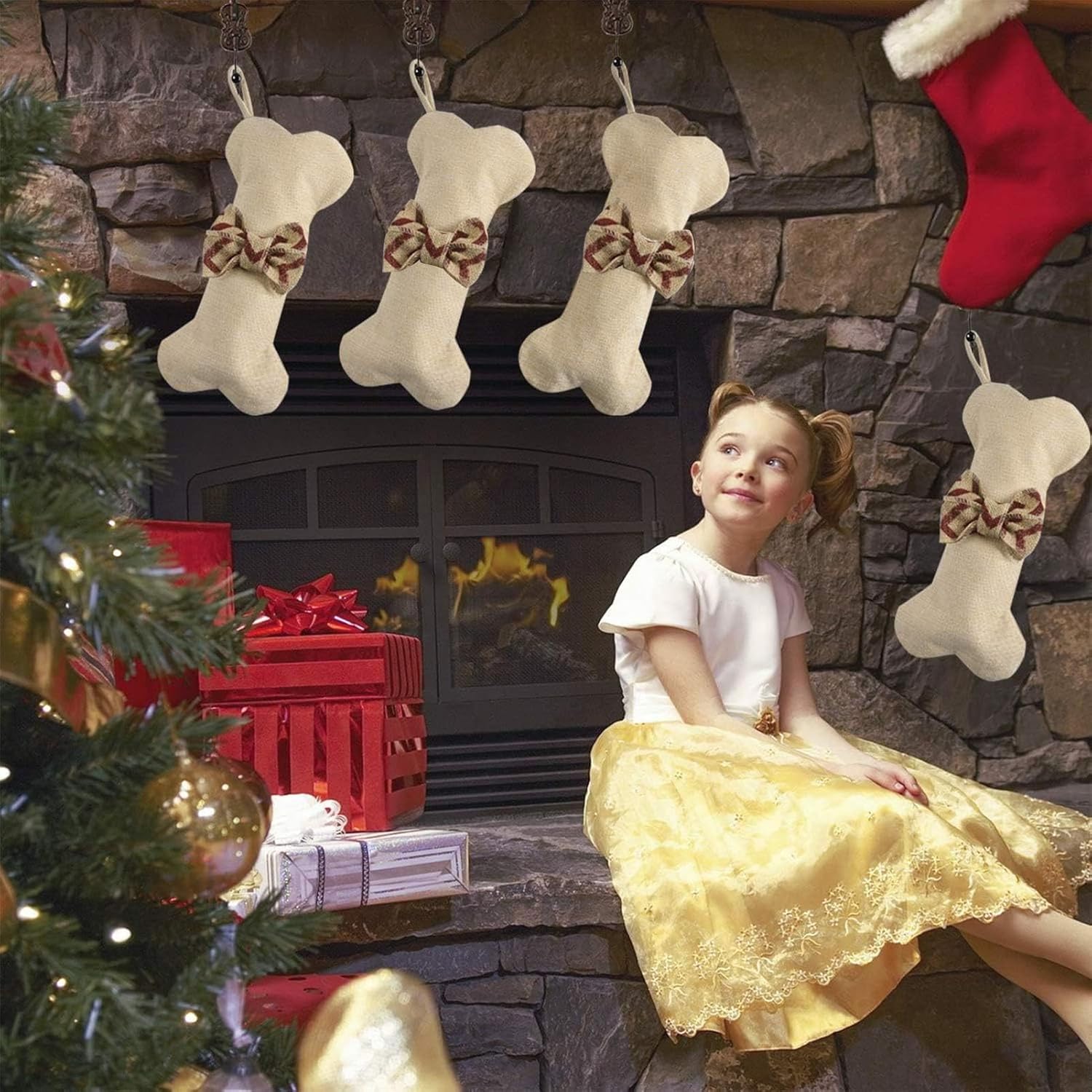 Regalo perfetto: perfetto per decorazioni natalizie o contenitori regalo. Questa confezione contiene 1 calza natalizia in osso di cane. Ottima idea regalo per animali domestici Accessori Natalizi: aggiungi alla tua casa una forte atmosfera natalizia e festosa e un aspetto carino aggiungendo queste calze per cani a forma di osso, fiocco, passante resistente e fodera in cotone bianco. Perfetto per i membri della famiglia pelosi Costruzione robusta: abbellisci le calze con il nome del tuo amico peloso e un design unico, sapientemente stampate o disegnate su materiale di tela riutilizzabile di alta qualità. Fatto a mano per durare nel tempo, liberate la vostra creatività con queste calze uniche Dimensioni generose: delizia il tuo amico peloso con questa calza natalizia per cani con buone vacanze. Con una dimensione spaziosa di 16 x 8 pollici, è la scelta ideale per mostrare i tuoi animali domestici e ospitare tutti i loro regali, giocattoli e dolcetti Compatibilità versatile: aggiungi un tocco di atmosfera natalizia a qualsiasi stanza con le nostre calze natalizie per cani. Perfetto da posizionare davanti al camino o per decorare scuole, aule, club, aziende e altro ancora. Ideale per una varietà di occasioni e per creare un'atmosfera calda e accogliente